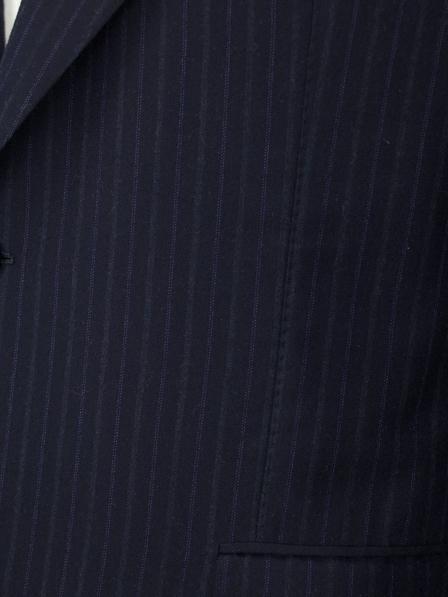 Pre-owned, not loved - yet. The buttons have to be set and the buttonholes have to be created by your local tailor. The (horn) buttons are enclosed within the left inner pocket.