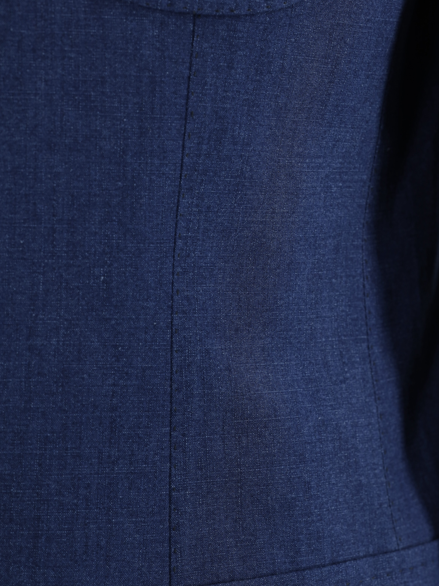Neapolitan master tailors add two darts - think of them as pinched seams - to ensure the jacket’s body achieves a slim silhouette. The process, called mezzo punto riprese, is done entirely by hand.