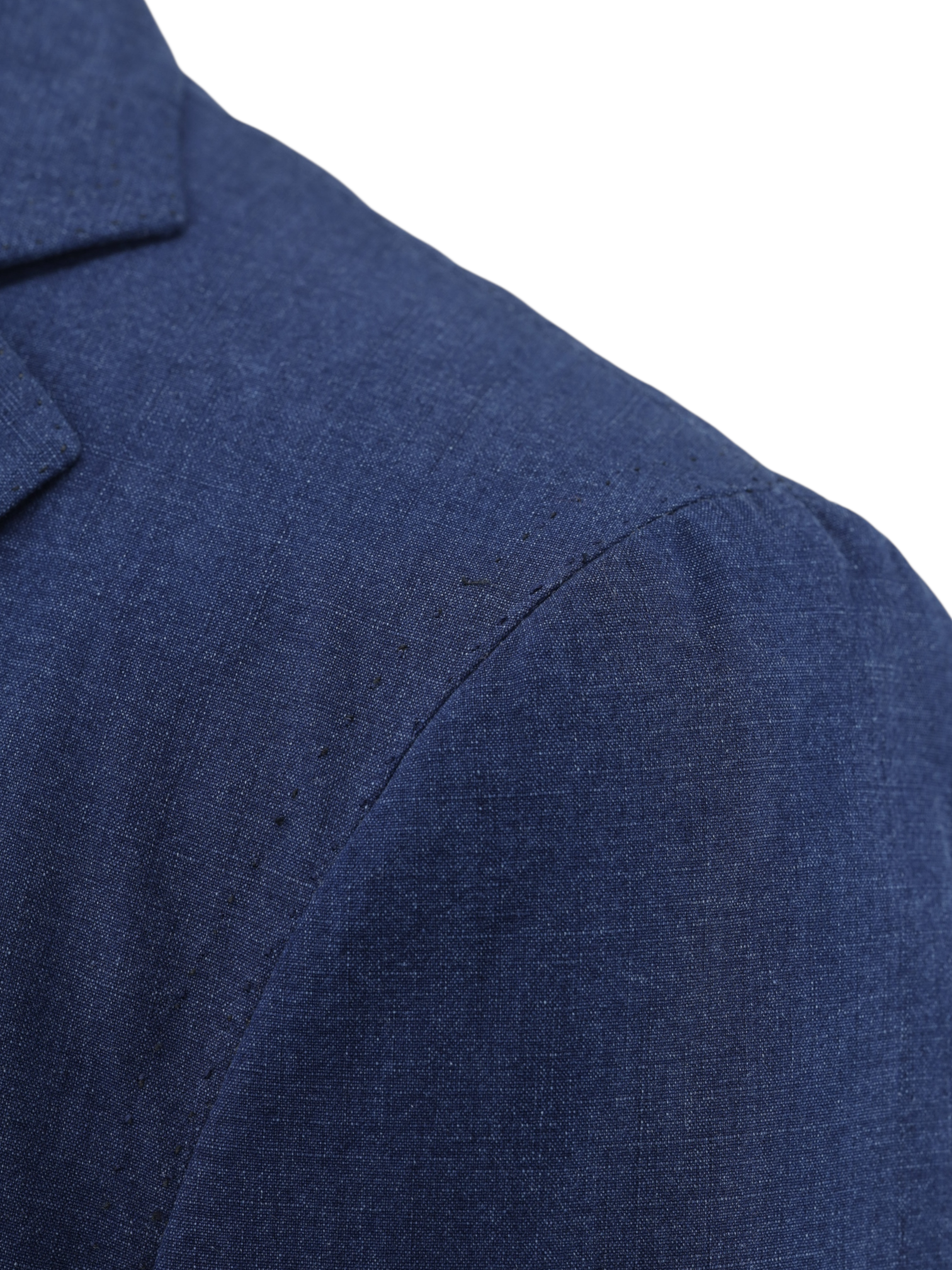 Spalla Camicia roughly translates to 'shirt sleeve' in Italian and is a shoulder style created and popularized by Neapolitan tailors. The name 'shirt sleeve' was so coined due to the characteristic shirring found at the sleeve's head where the fullness of the larger sleeve collapses. Rather than having the head of the sleeve turned back and stitched inside, the head is lapped under and stitched along the top.