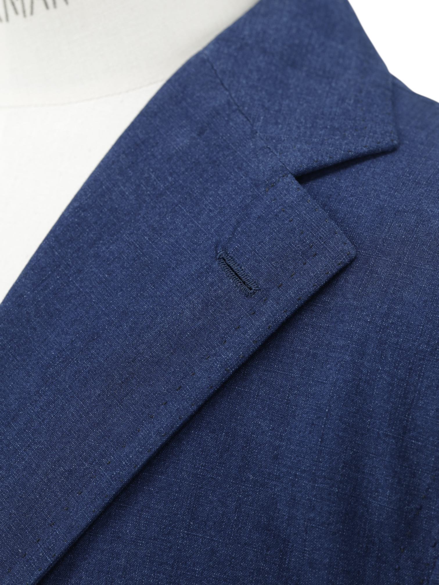 The ‘tre bottoni stirato a due’, also known as the three rolling on two lapel style, is perhaps the most infamous characteristic of the Neapolitan style jacket. The top button and buttonhole are ornamental, so are left unbuttoned. As the lapel rolls down it elegantly folds over the top button and stops just 4 cm above the second button creating the distinct roll of the lapel the style is known for. As it is intended to remain unbuttoned, the top buttonhole is actually made inside out so the beautiful side will still be visible.