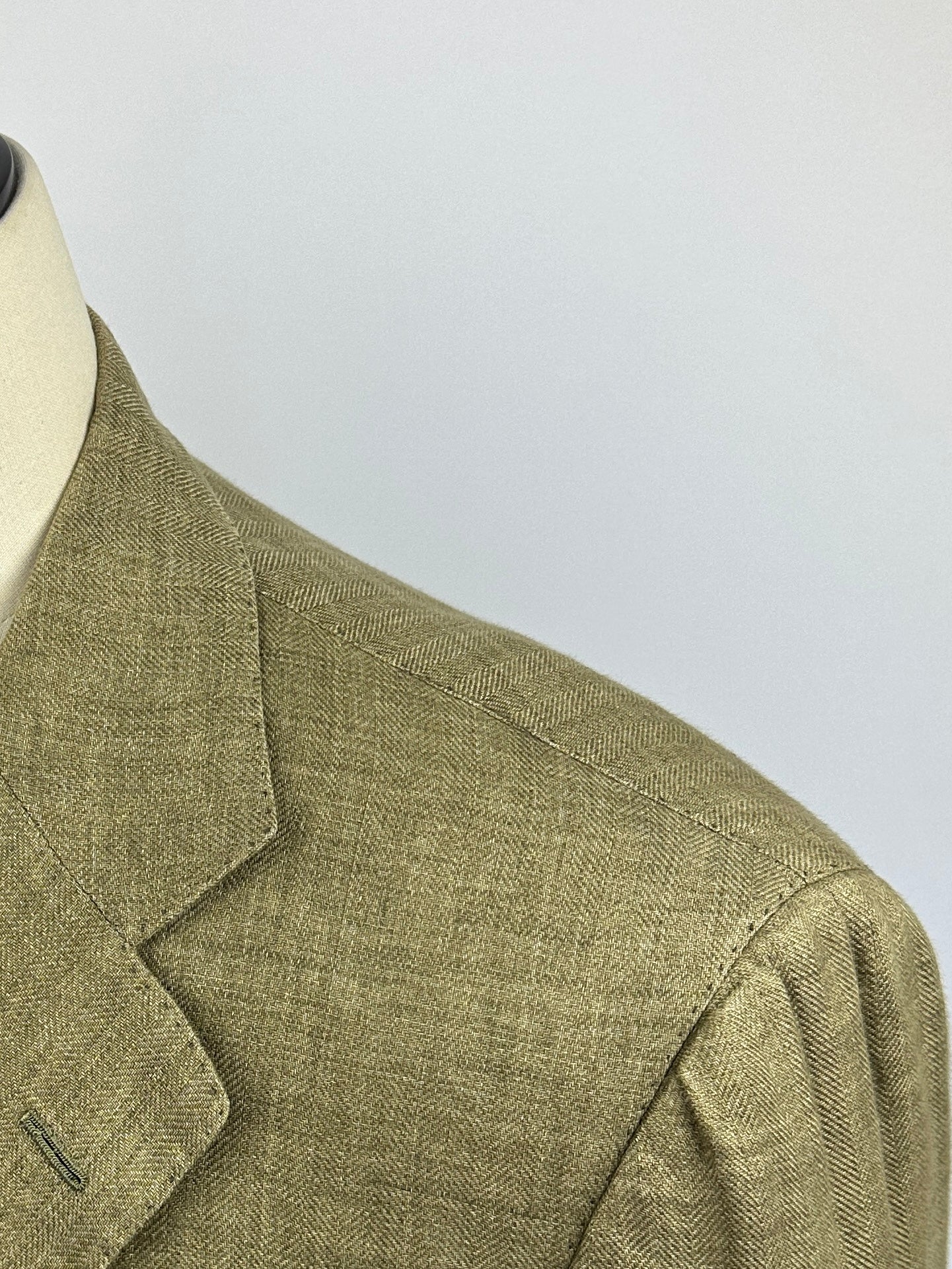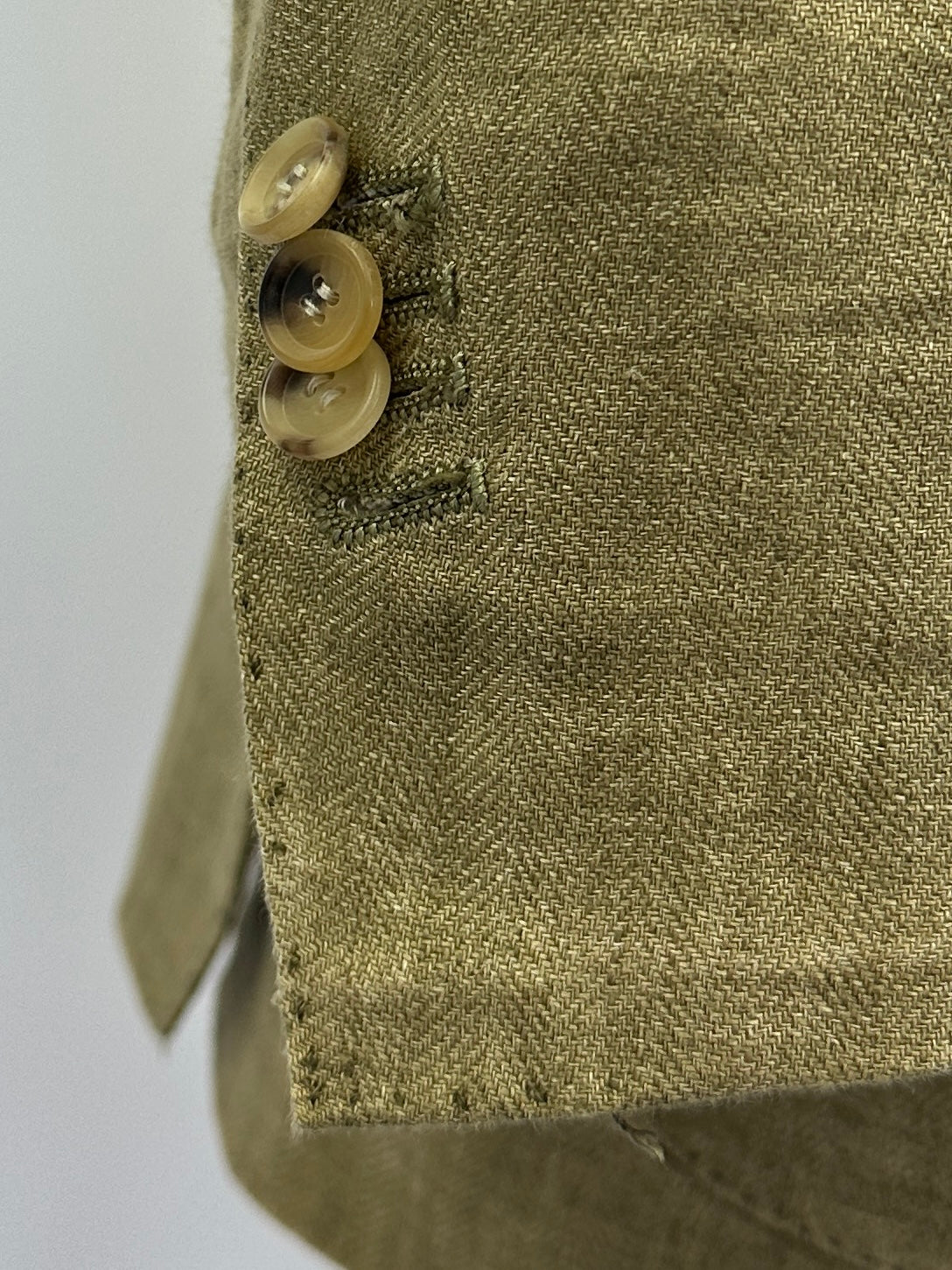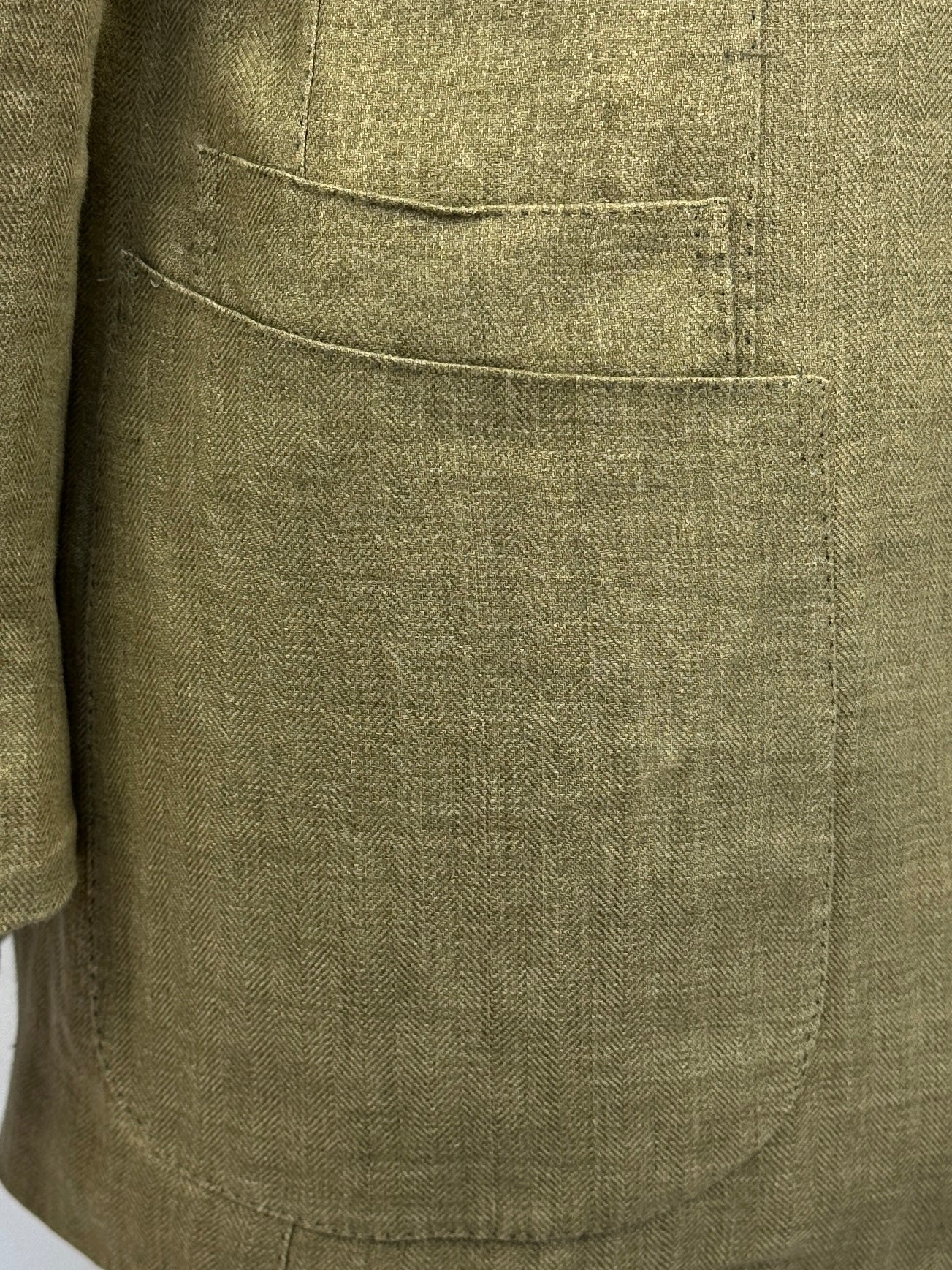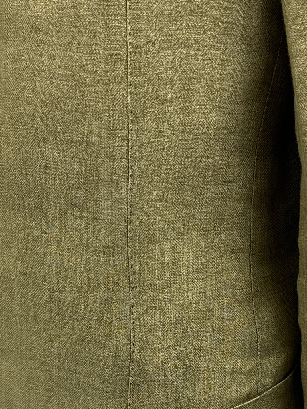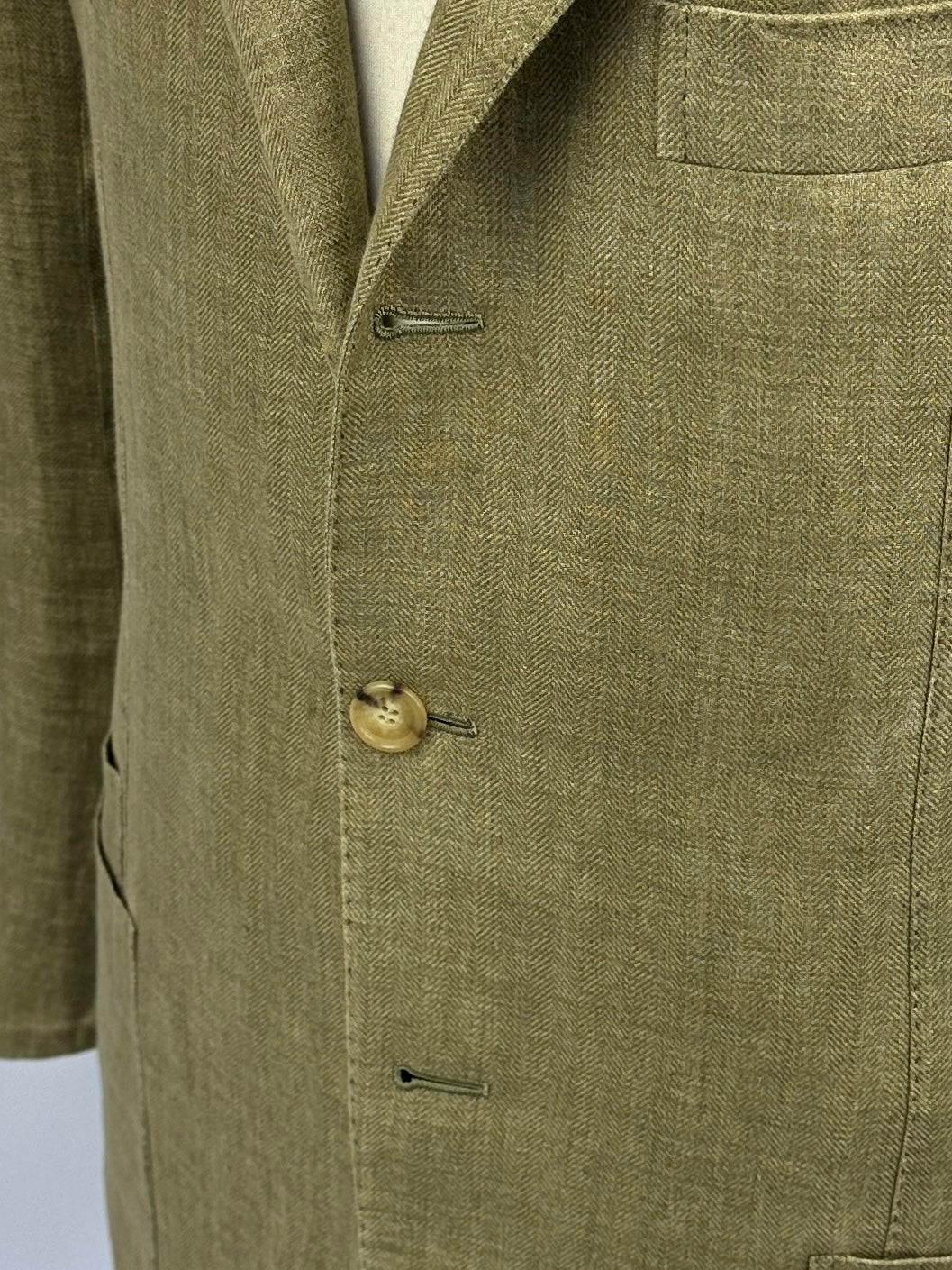Unconstructed, handmade Neapolitan jacket crafted from lightweight linen, with notch lapels, patch pockets and 2.5 button closure. Discover the elaborated sartorial details below.