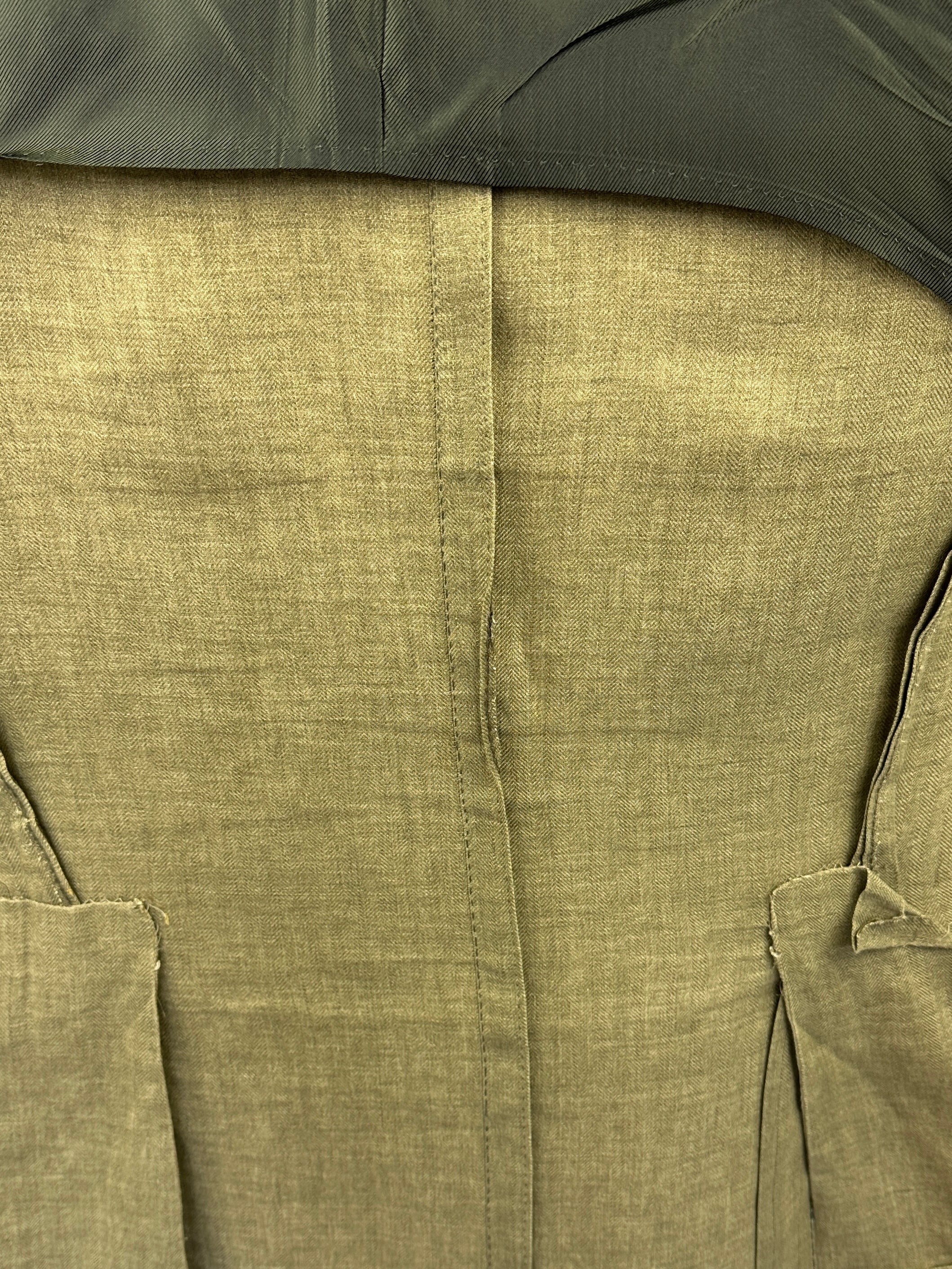 Neapolitan master tailors add two darts - think of them as pinched seams - to ensure the jacket’s body achieves a slim silhouette. The process, called mezzo punto riprese, is done entirely by hand.