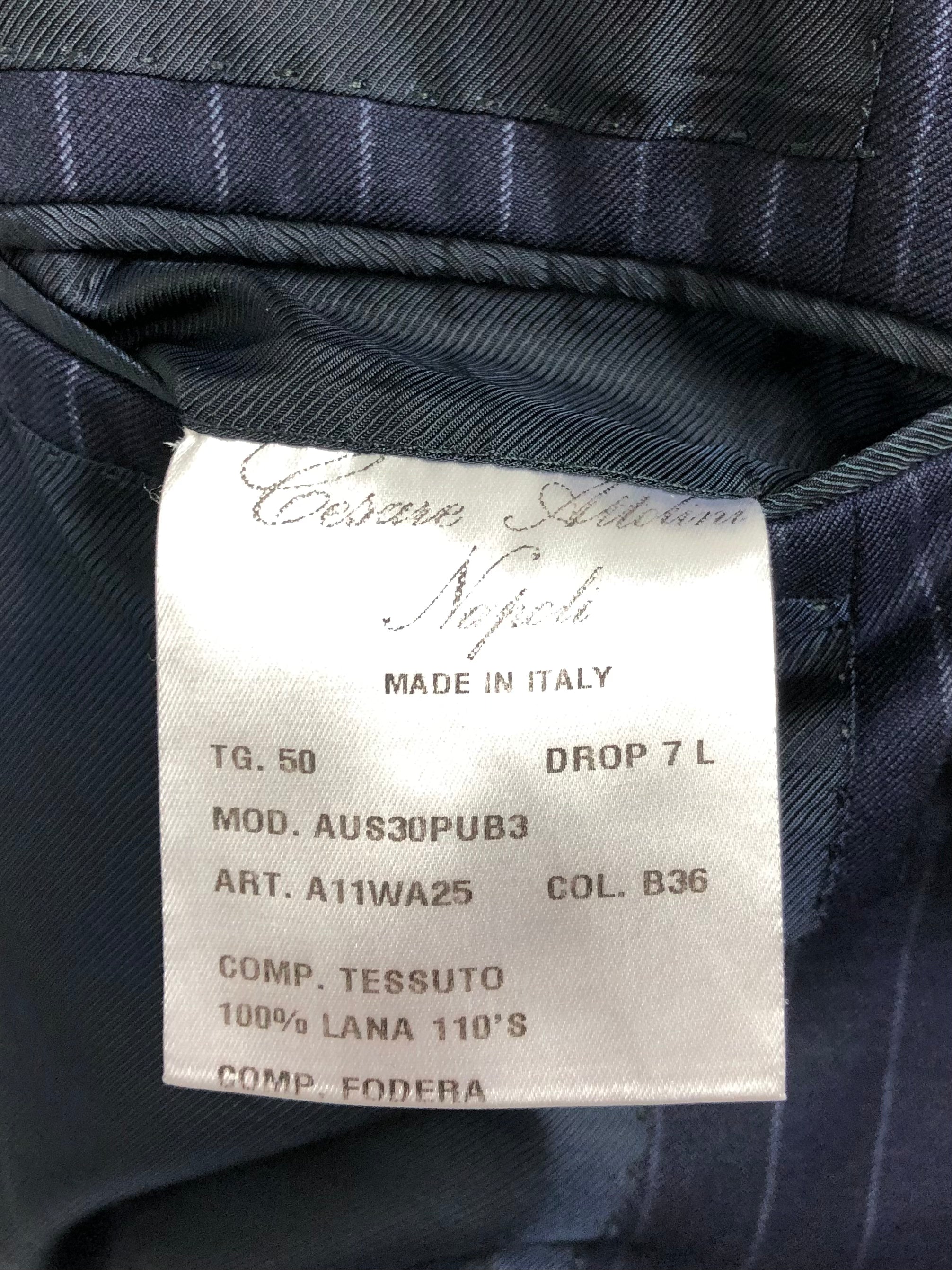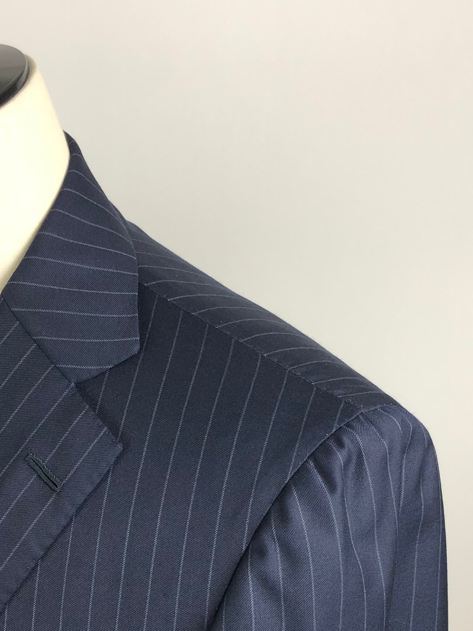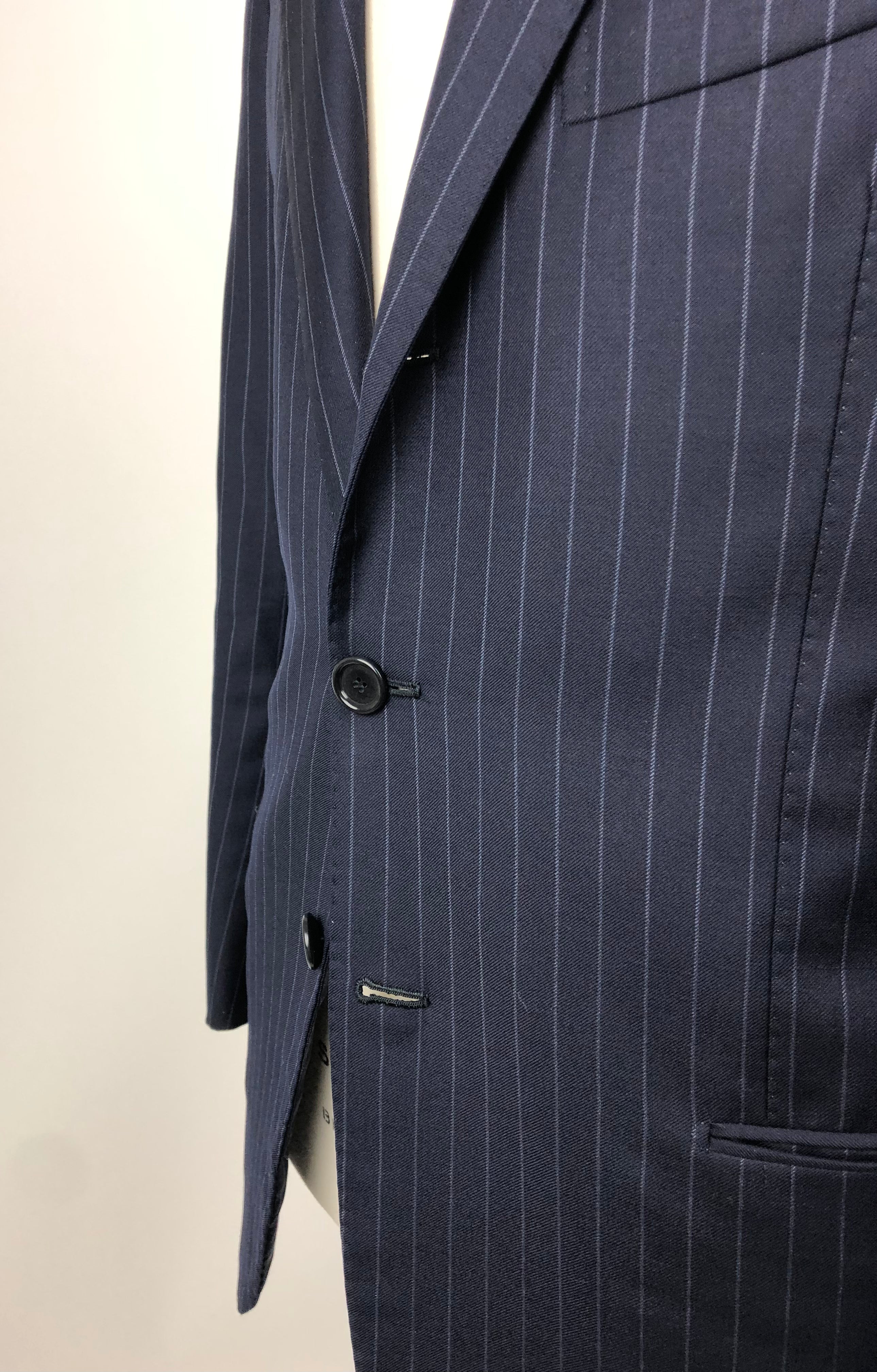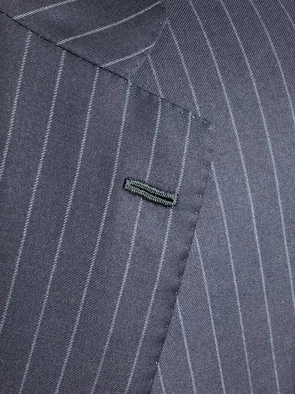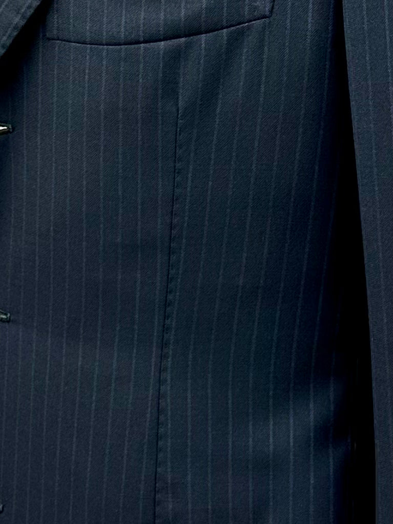 Blue pin-stripe suit, cut from Super 110’s virgin wool. The unique value of each Cesare Attolini garment lies in a series of meaningful details. Discover the elaborated sartorial details below.