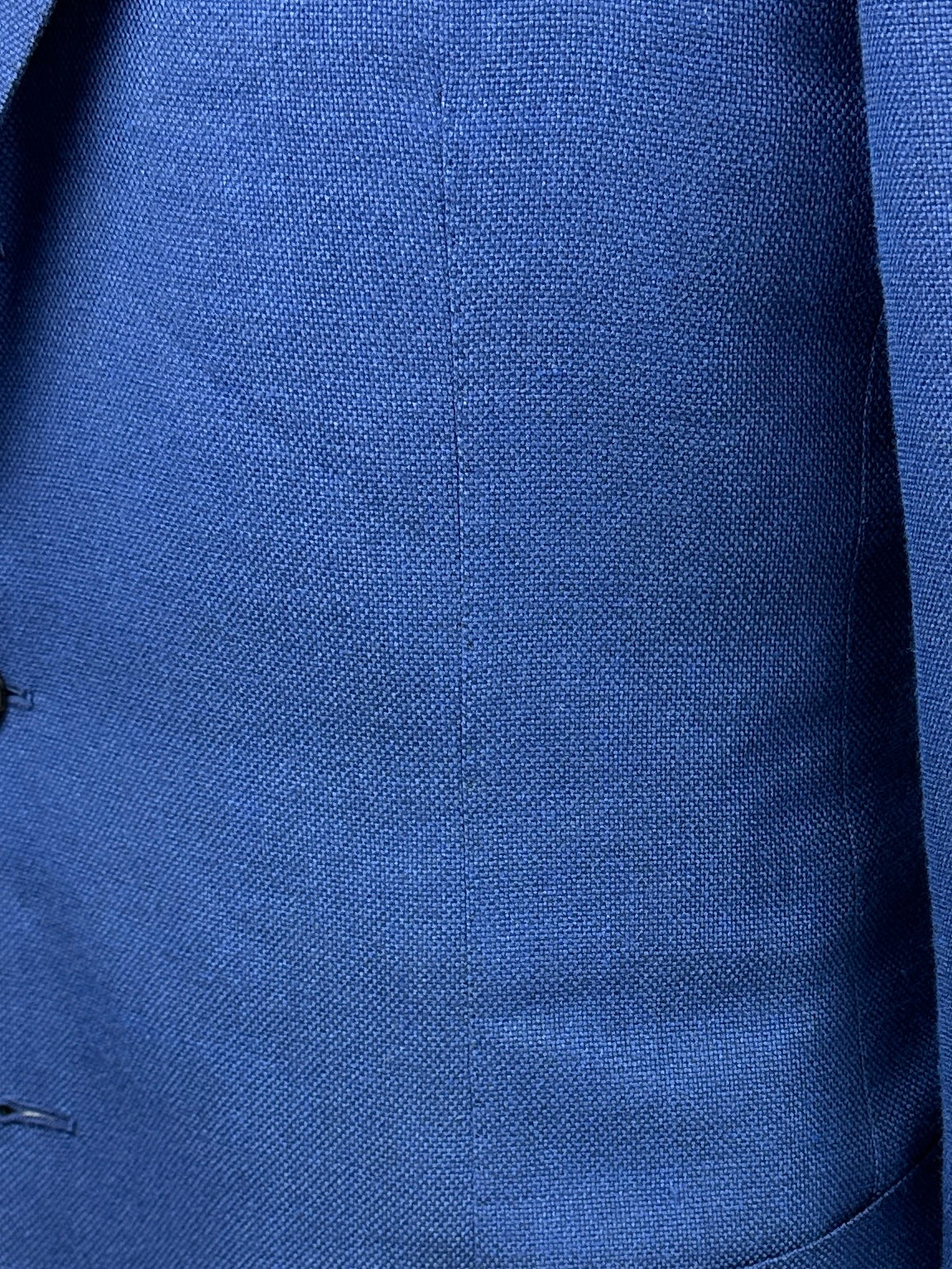 Neapolitan master tailors add two darts - think of them as pinched seams - to ensure the jacket’s body achieves a slim silhouette. The process, called mezzo punto riprese, is done entirely by hand.