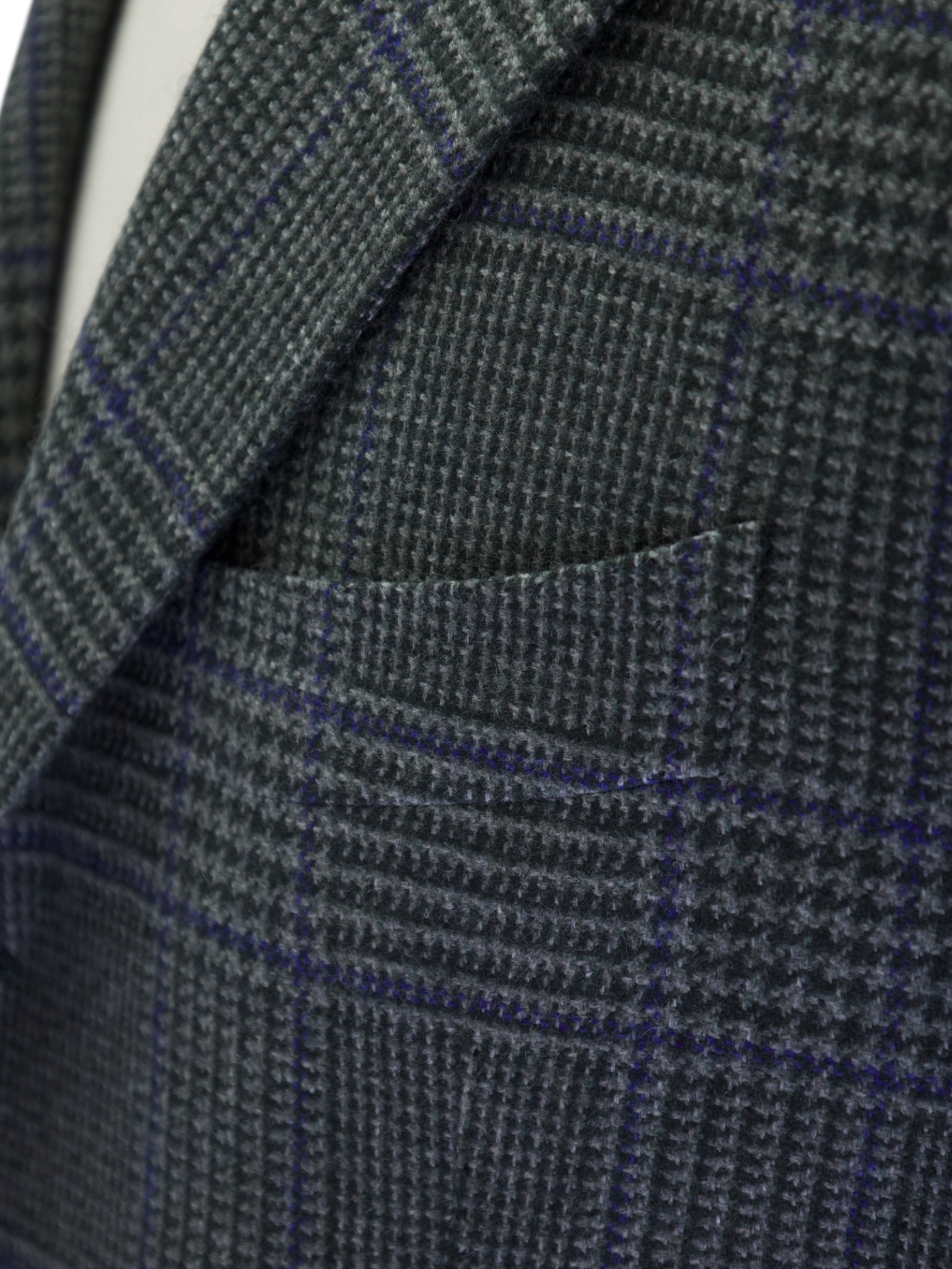 The barchetta pocket is often thought to be a tailoring detail exclusively from Italy. The word “barchetta” is Italian for “little boat.” It describes how the pocket floats on the chest, gently angled upwards, like the bow of a sailboat.