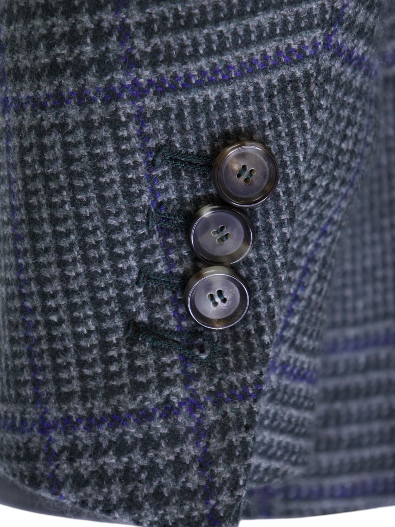 Also known as stacked buttons or waterfall buttons, kissing buttons are associated with Italian tailoring as Italian tailors make their jacket sleeve buttons in the kissing style. In this style, buttons touch each other and overlap one another. Handmade buttonholes; Even this step, apparently the simplest, is treated with an abundance of detail. Attaching the buttons is a job that requires patience and must be completed to perfection.