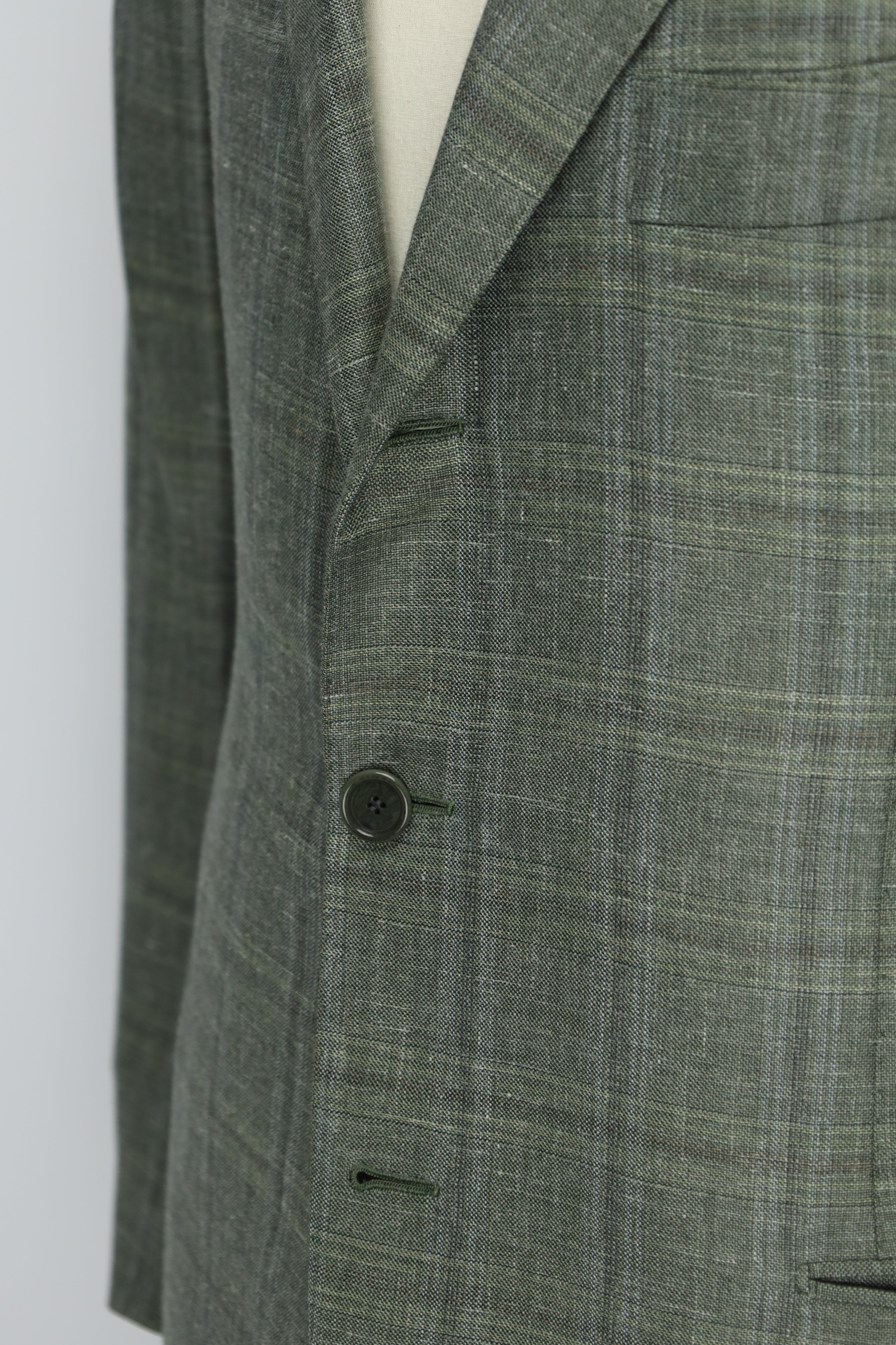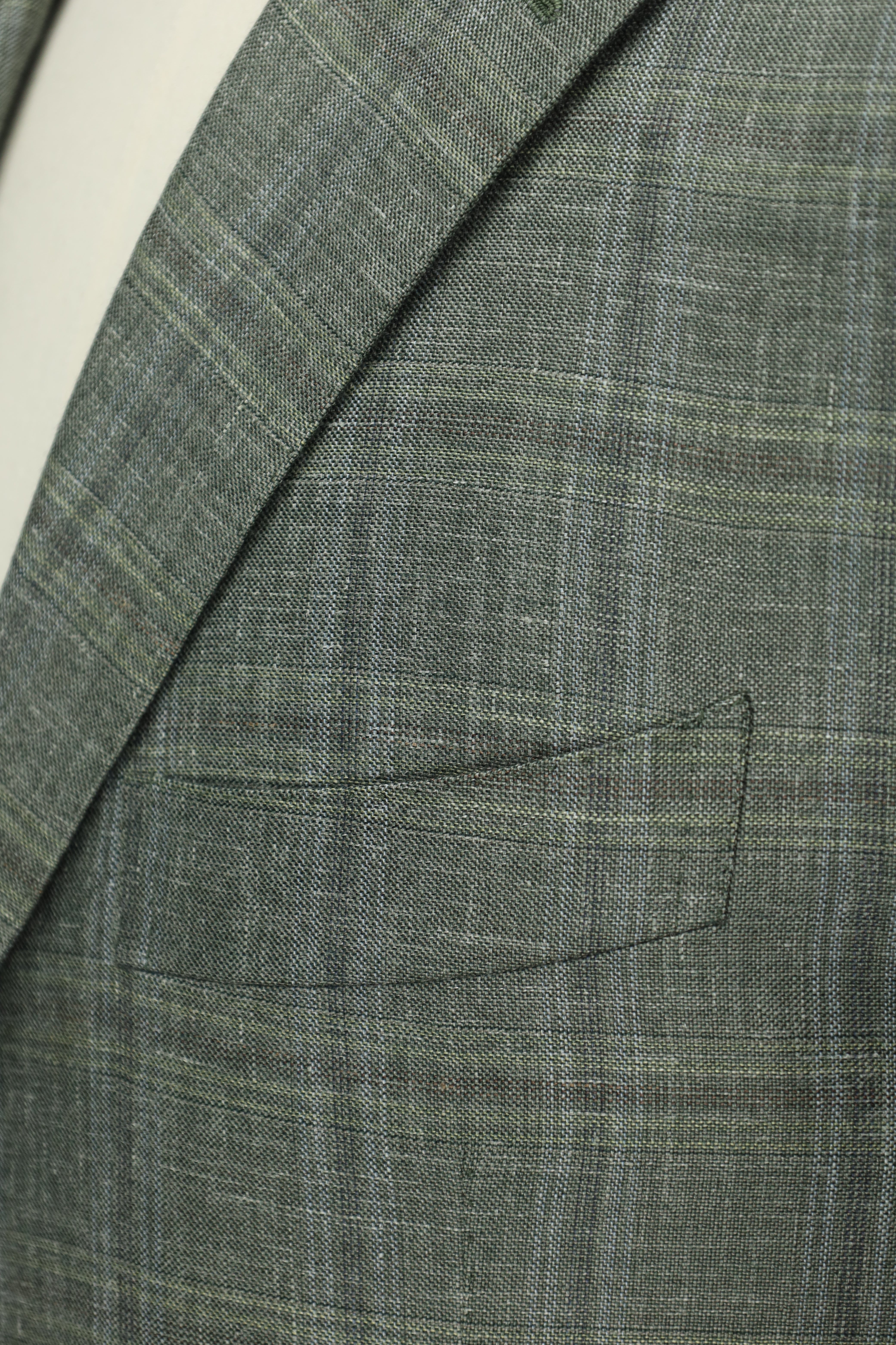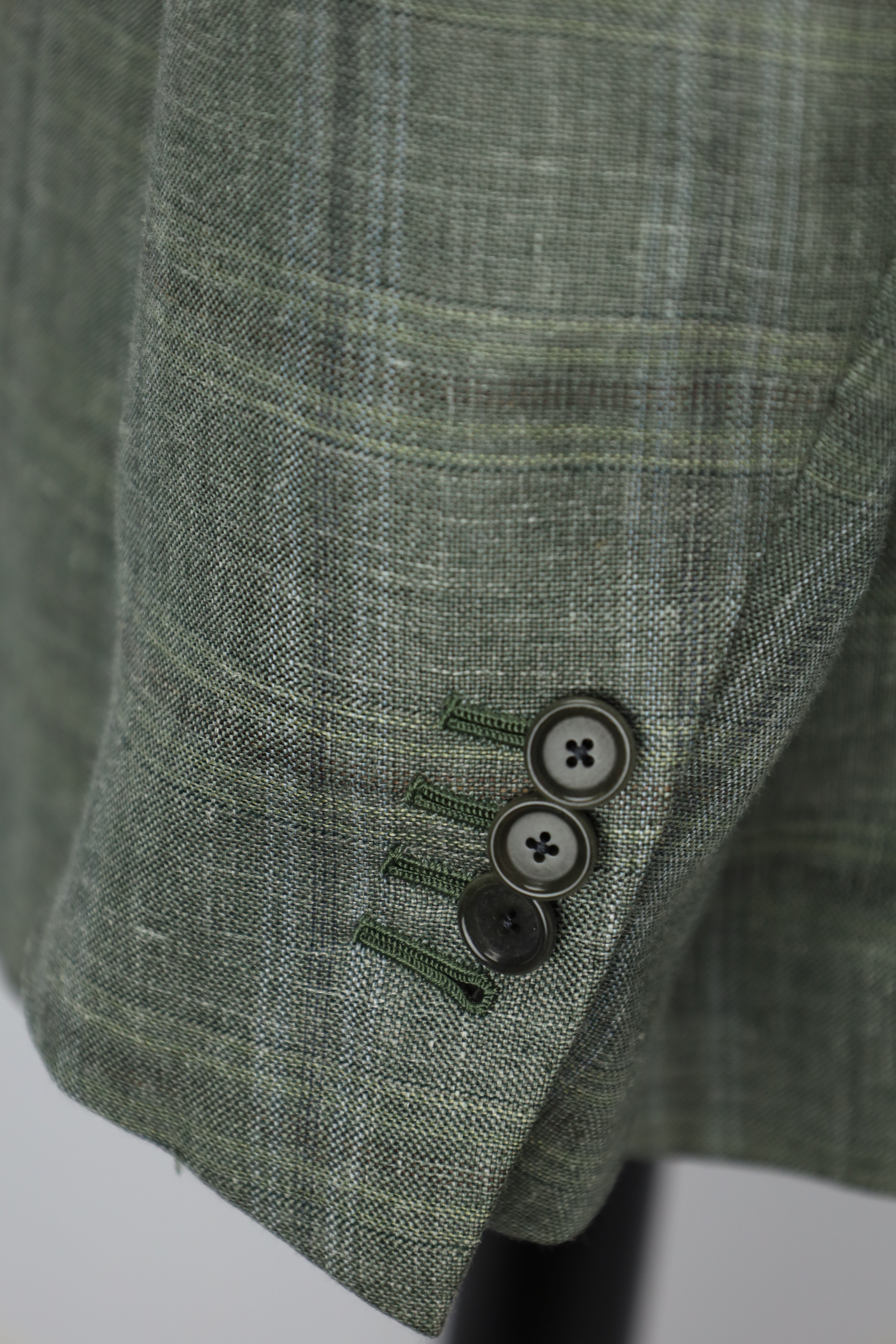 Cesare Attolini Sage Green Cashmere, Silk & Linen Windowpane Jacket
