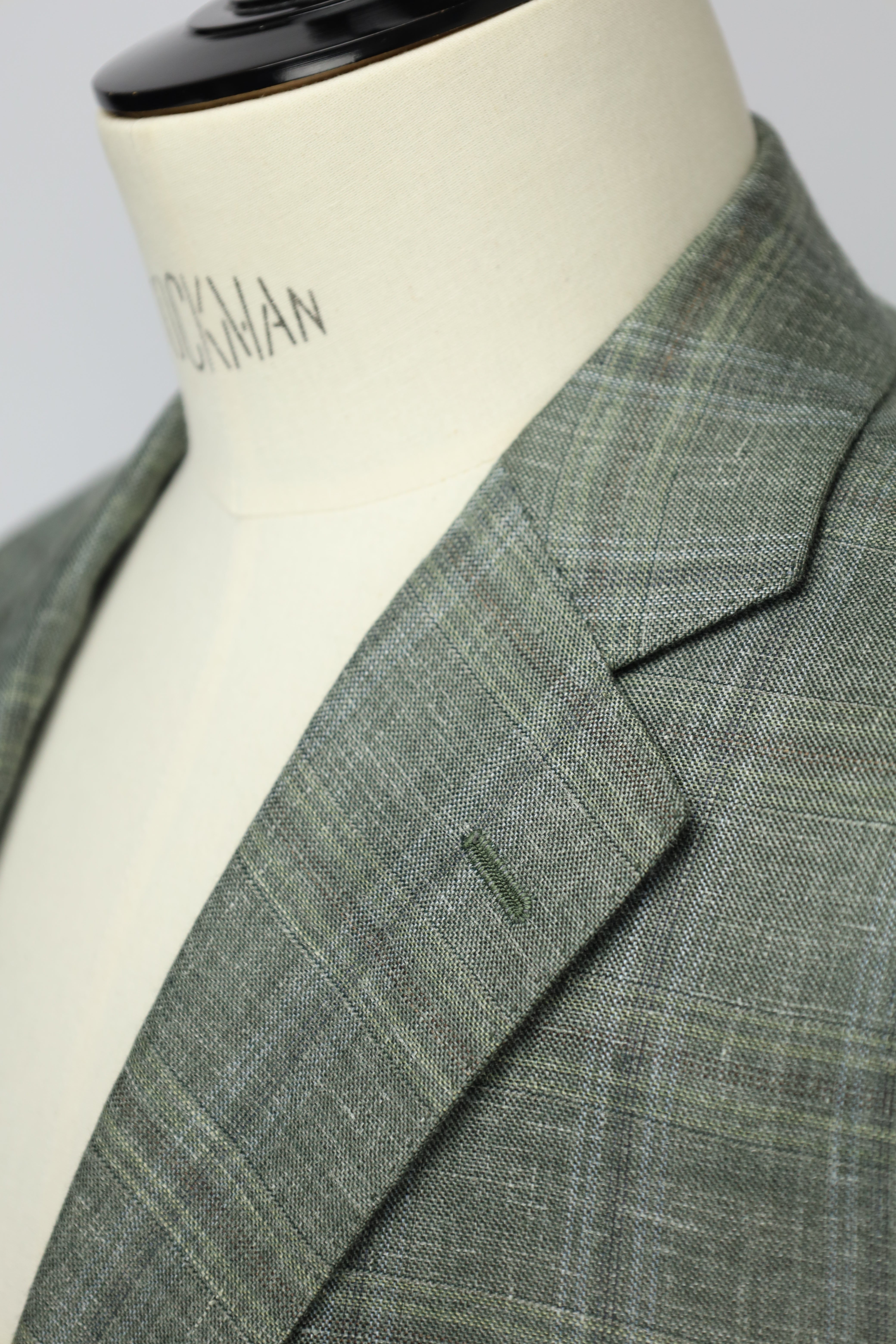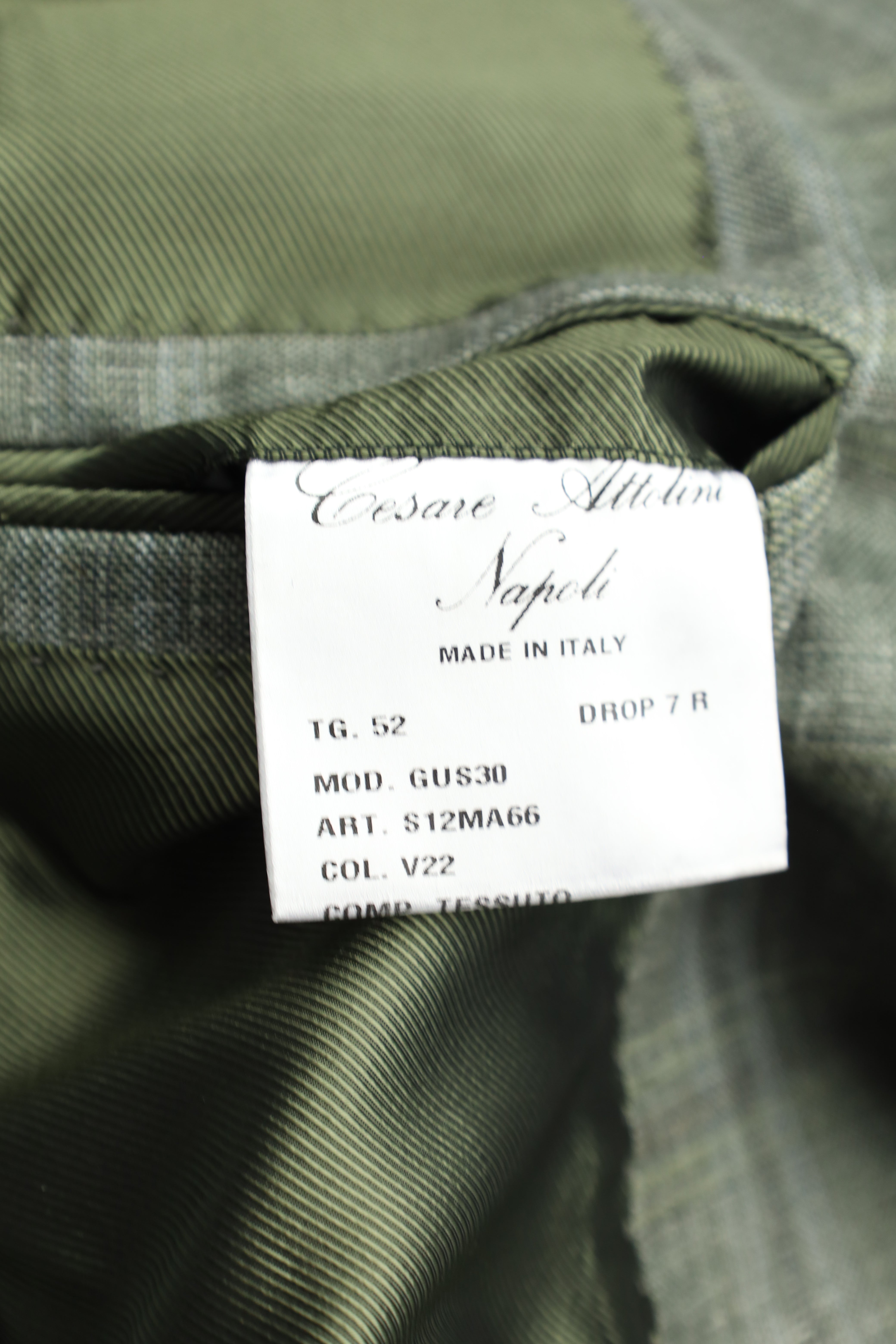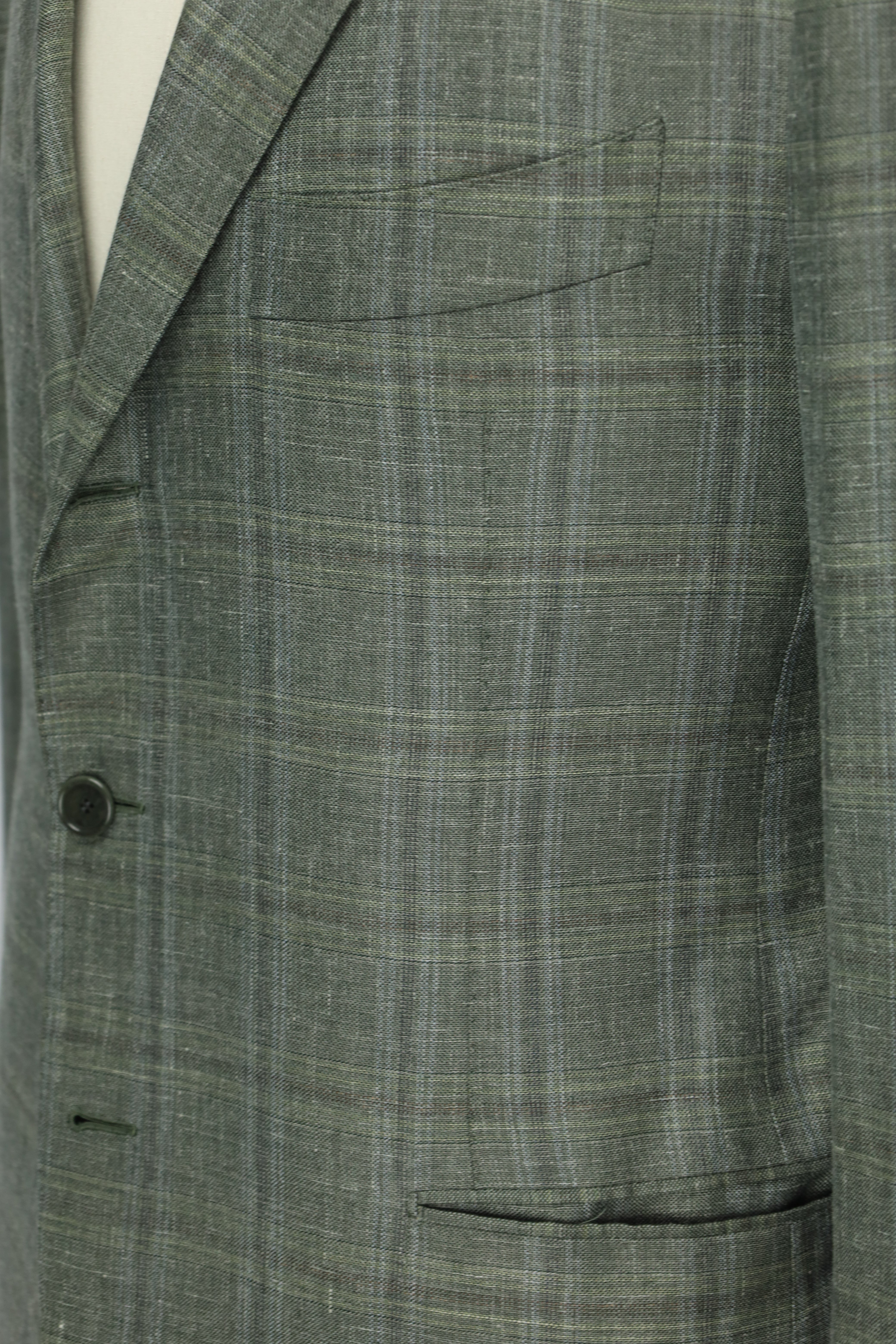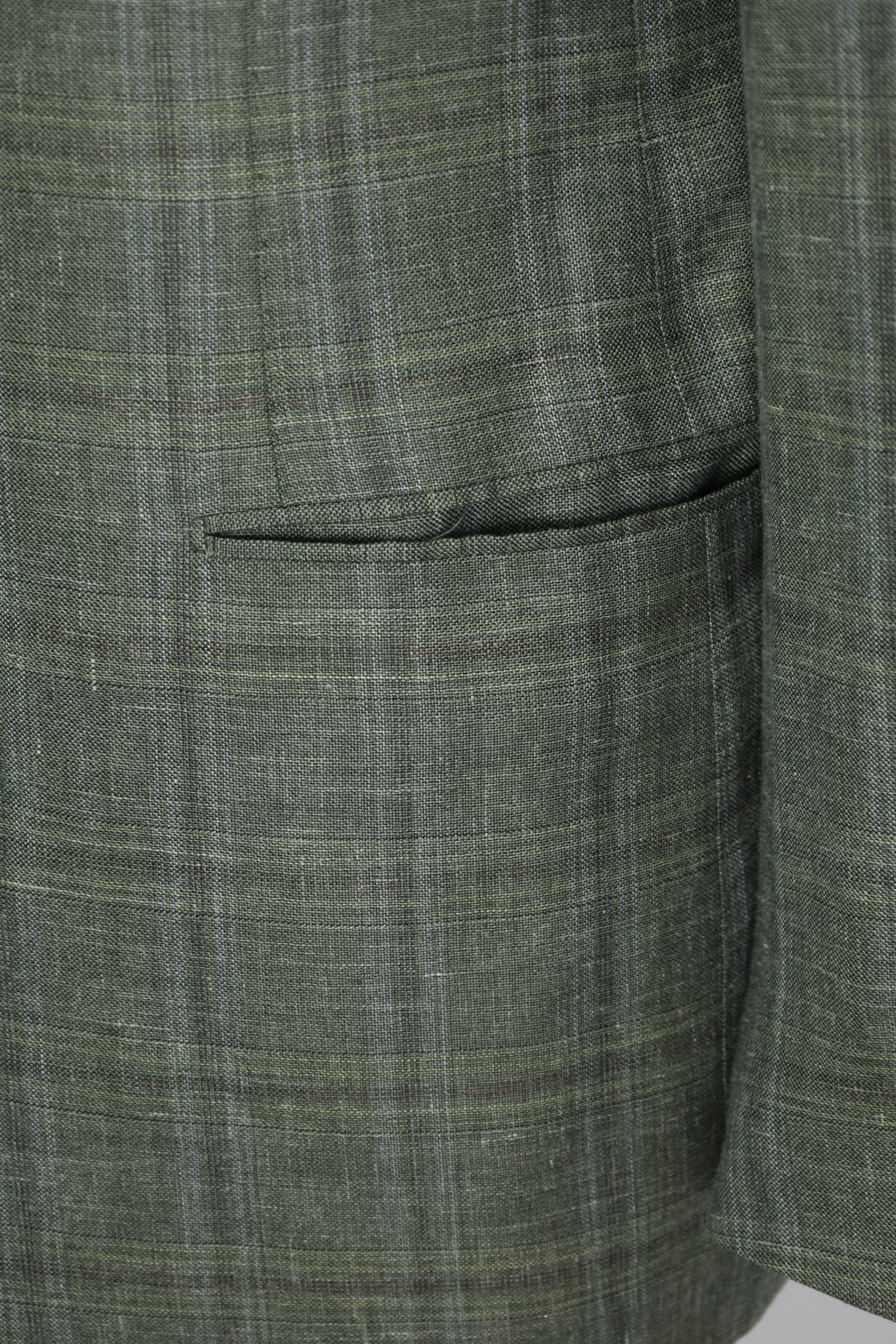 Cesare Attolini Sage Green Cashmere, Silk & Linen Windowpane Jacket