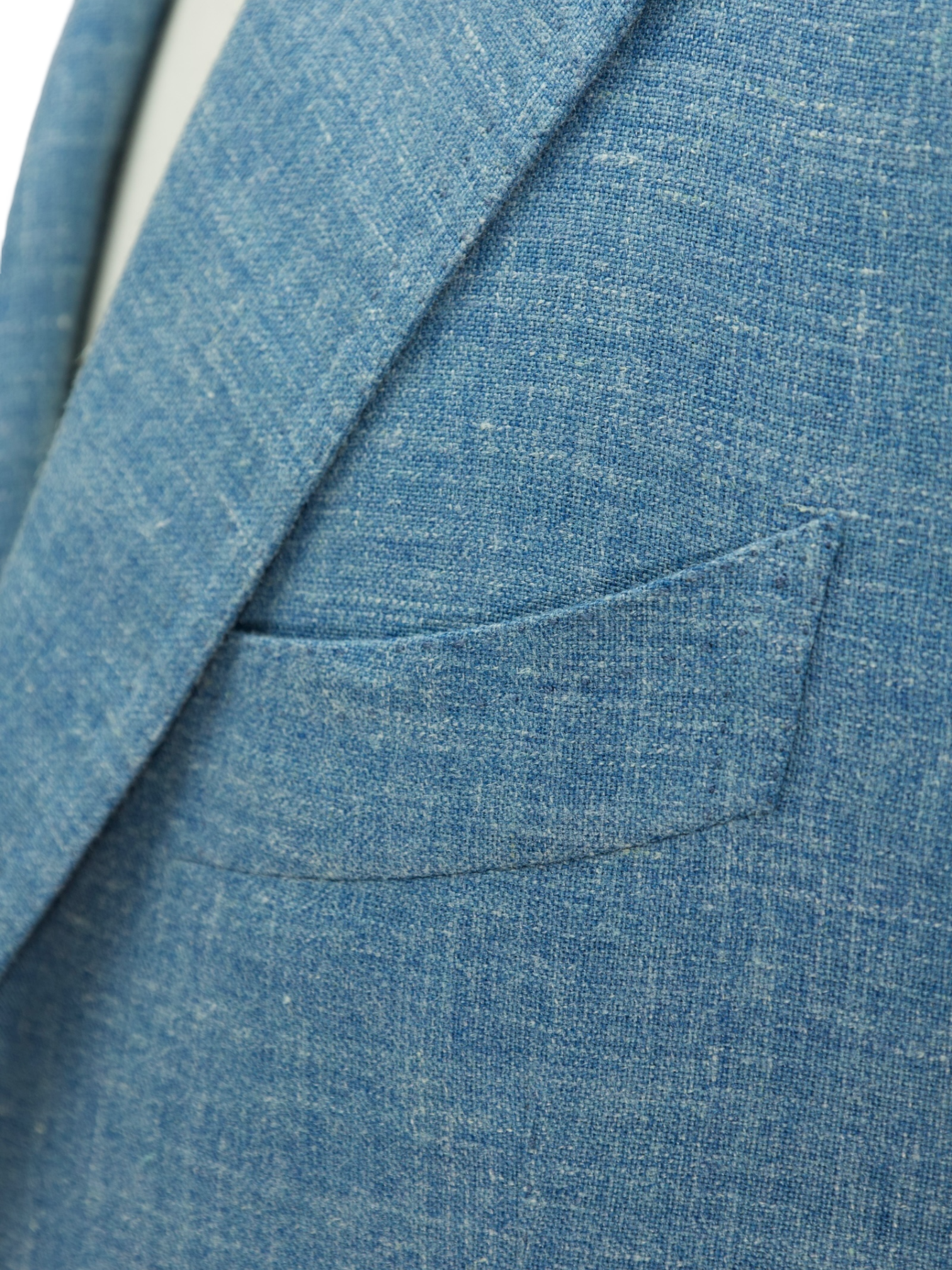 The barchetta pocket is often thought to be a tailoring detail exclusively from Italy. The word “barchetta” is Italian for “little boat.” It describes how the pocket floats on the chest, gently angled upwards, like the bow of a sailboat.