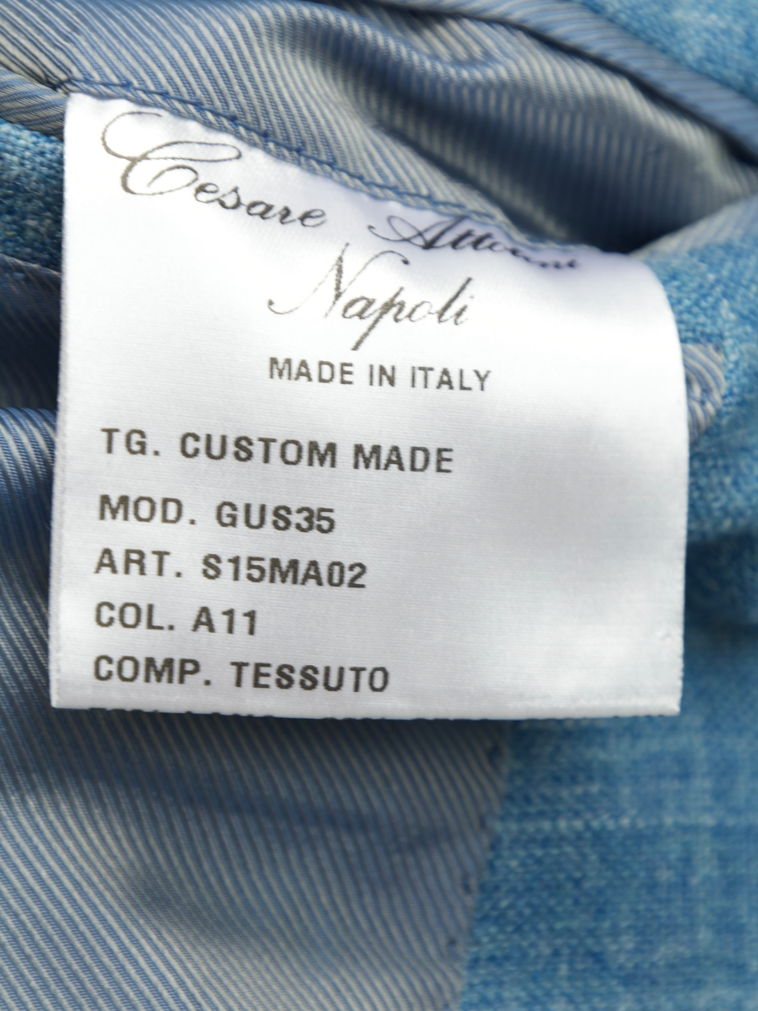 Handmade in Cesare Attolini’s renowned Casalnuovo workshop near Naples, this jacket reflects the brand’s dedication to superior tailoring and meticulous attention to detail. The sky blue hue, paired with the luxurious "Summertime" fabric, creates a jacket that is both stylish and practical, ideal for formal and smart-casual occasions.