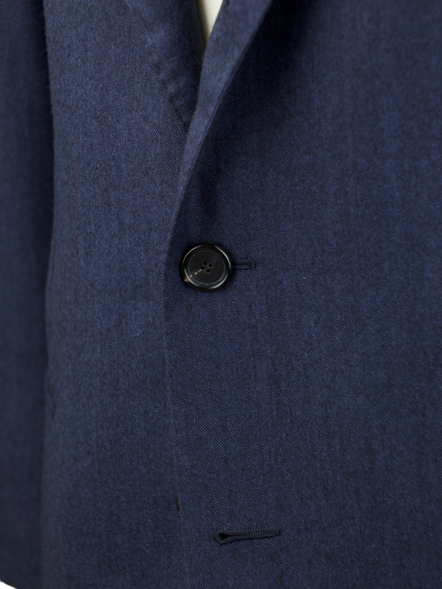 The ‘tre bottoni stirato a due’, also known as the three rolling on two lapel style, is perhaps the most infamous characteristic of the Neapolitan style jacket. The top button and buttonhole are ornamental, so are left unbuttoned. As the lapel rolls down it elegantly folds over the top button and stops just 4 cm above the second button creating the distinct roll of the lapel the style is known for. As it is intended to remain unbuttoned, the top buttonhole is actually made inside out so the beautiful side will still be visible.