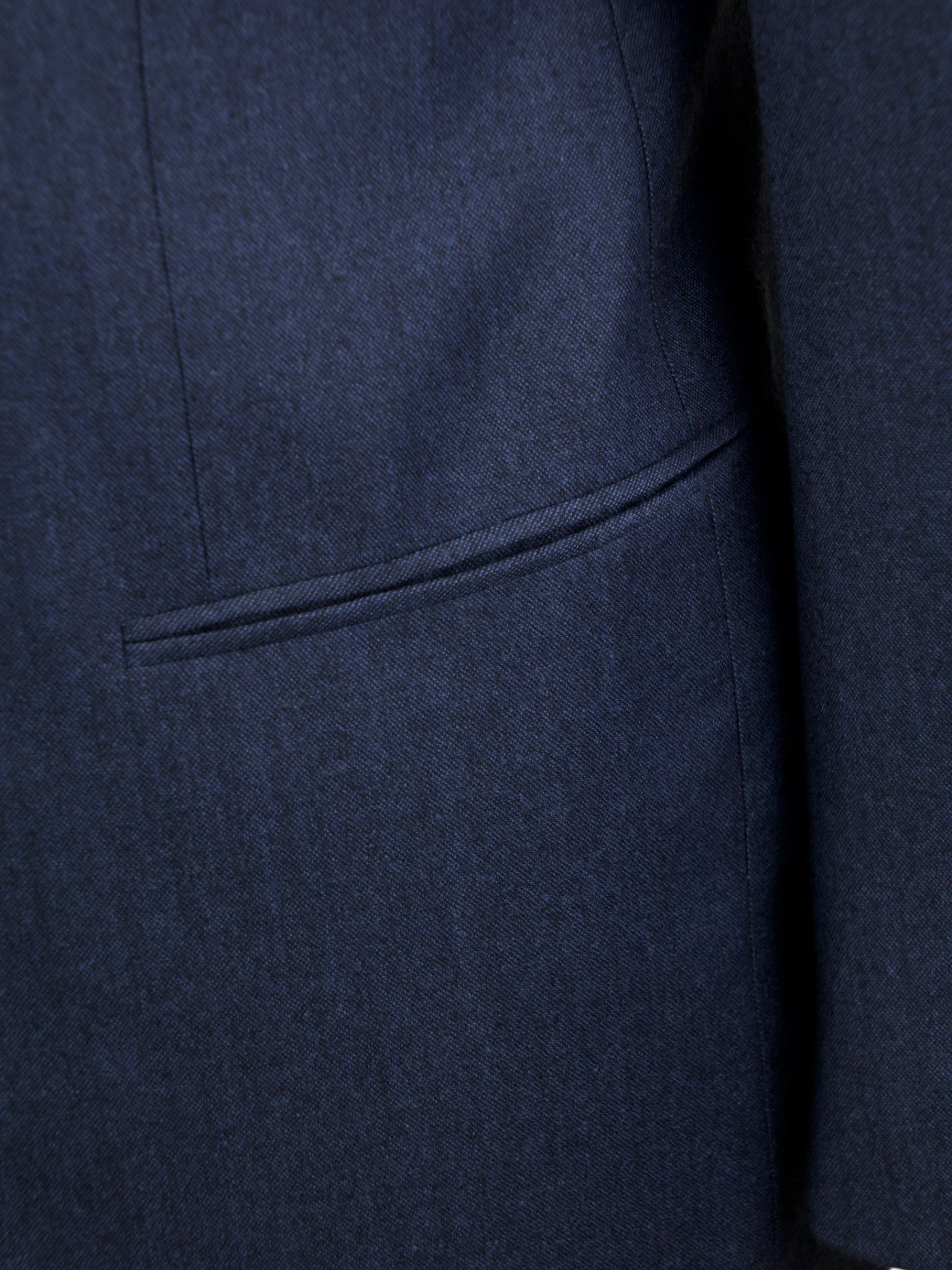 The barchetta pocket is often thought to be a tailoring detail exclusively from Italy. The word “barchetta” is Italian for “little boat.” It describes how the pocket floats on the chest, gently angled upwards, like the bow of a sailboat.