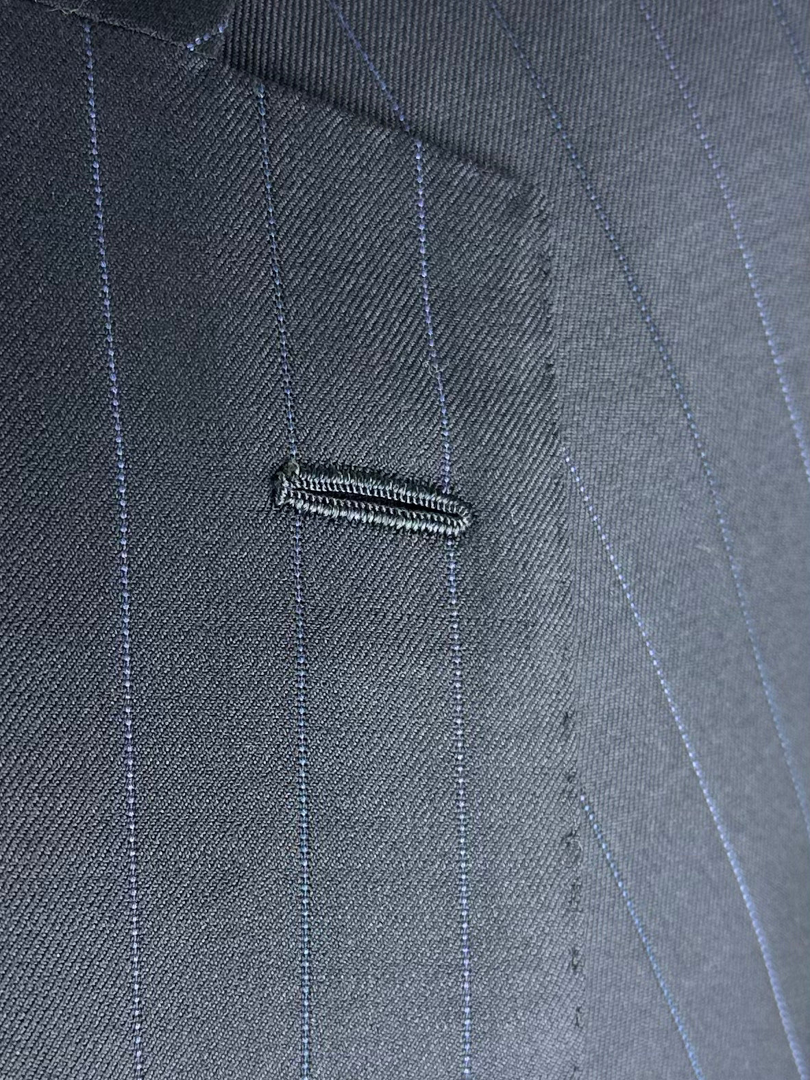 Also known as stacked buttons or waterfall buttons, kissing buttons are associated with Italian tailoring as Italian tailors make their jacket sleeve buttons in the kissing style. In this style, buttons touch each other and overlap one another. Handmade buttonholes; Even this step, apparently the simplest, is treated with an abundance of detail. Attaching the buttons is a job that requires patience and must be completed to perfection.