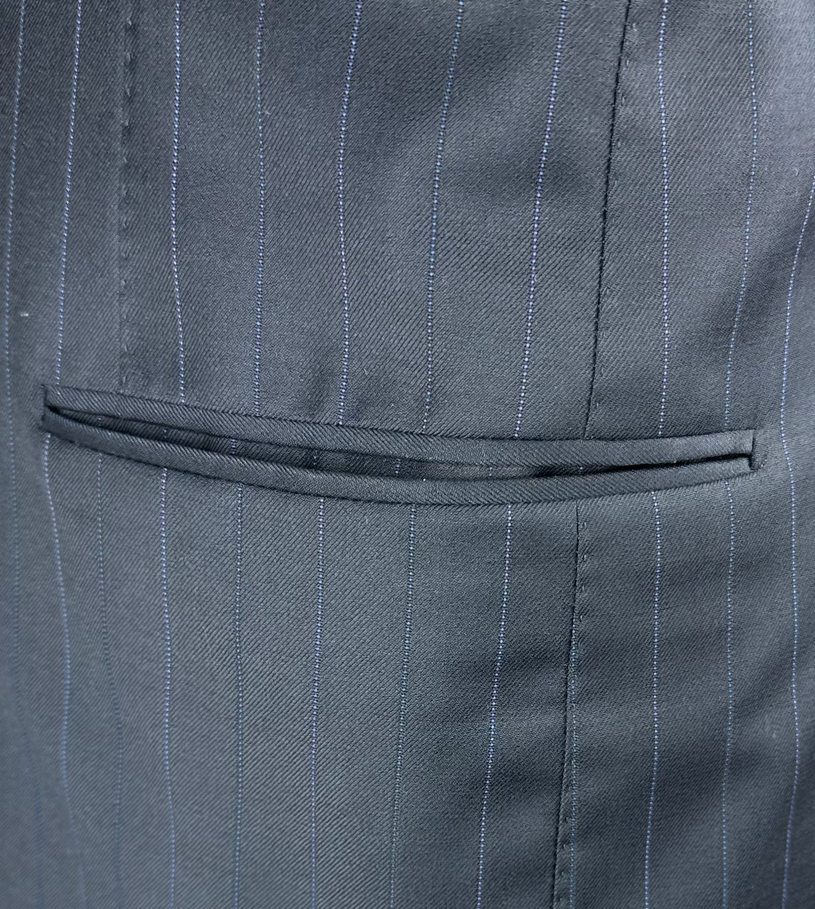 The first jacket pockets were sewn inside the lining or seams of garments, and are called “jetted” pockets. In their simplest form, they consist of little more than a slit. Suits that are the most formal, especially tuxedos, have no flap pockets altogether to give the piece a more streamlined look.