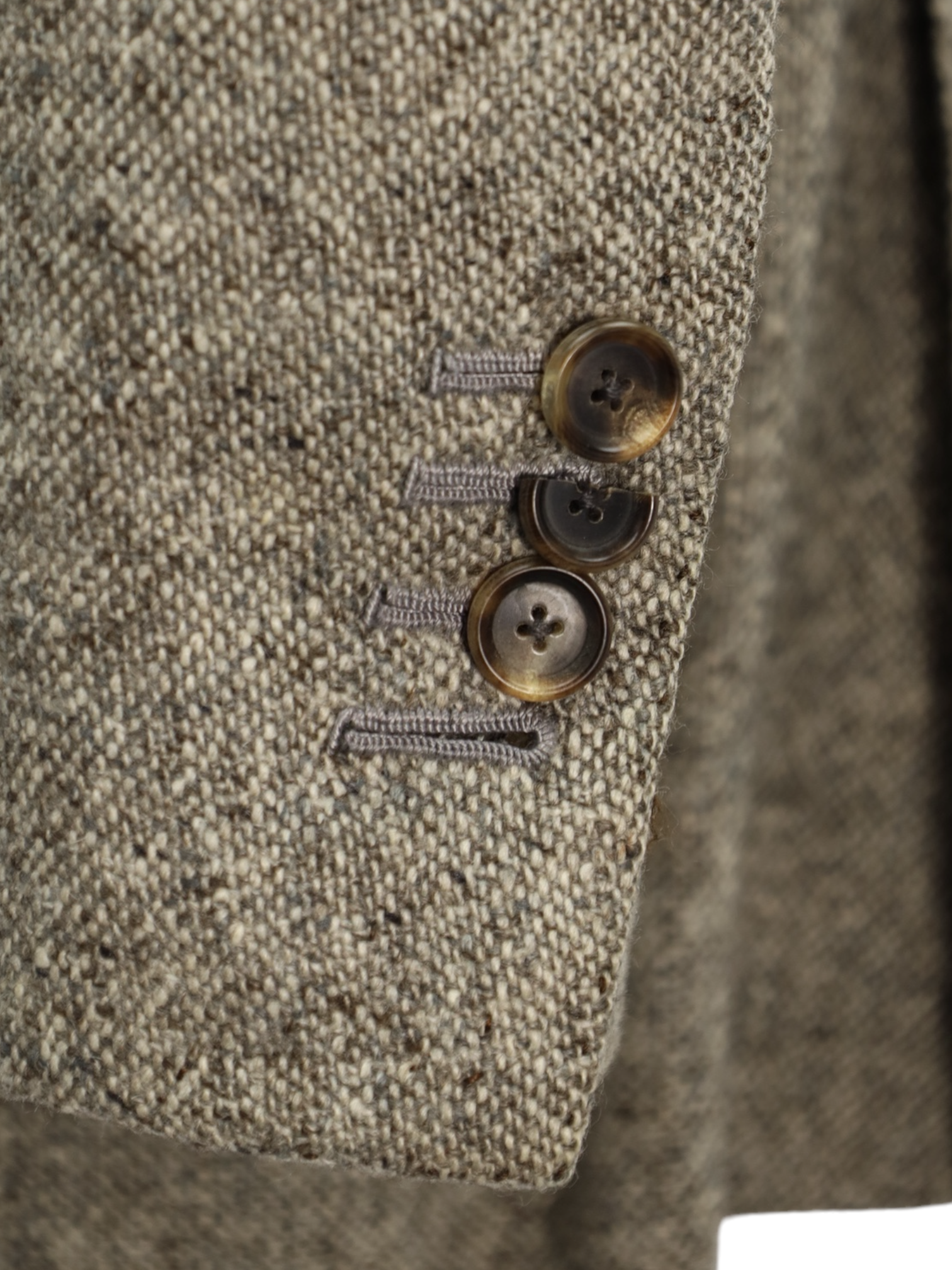 Also known as stacked buttons or waterfall buttons, kissing buttons are associated with Italian tailoring as Italian tailors make their jacket sleeve buttons in the kissing style. In this style, buttons touch each other and overlap one another. Handmade buttonholes; Even this step, apparently the simplest, is treated with an abundance of detail. Attaching the buttons is a job that requires patience and must be completed to perfection.