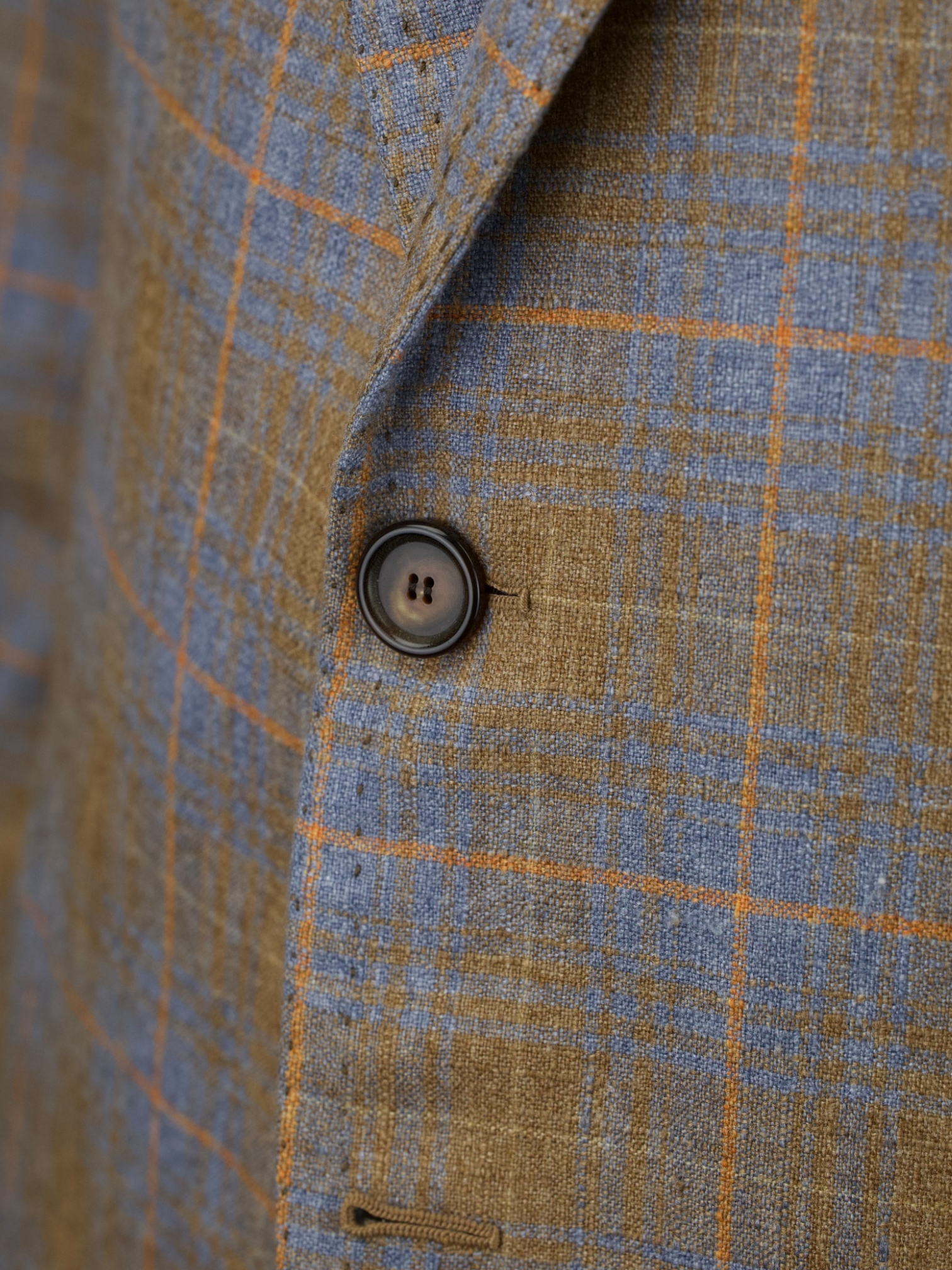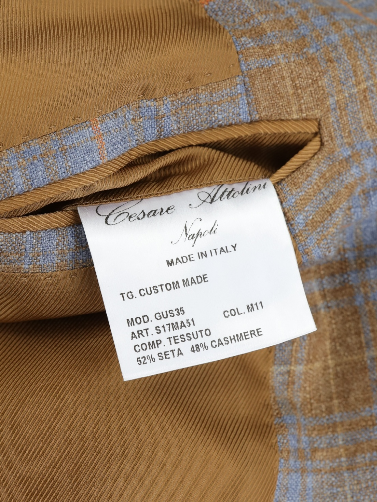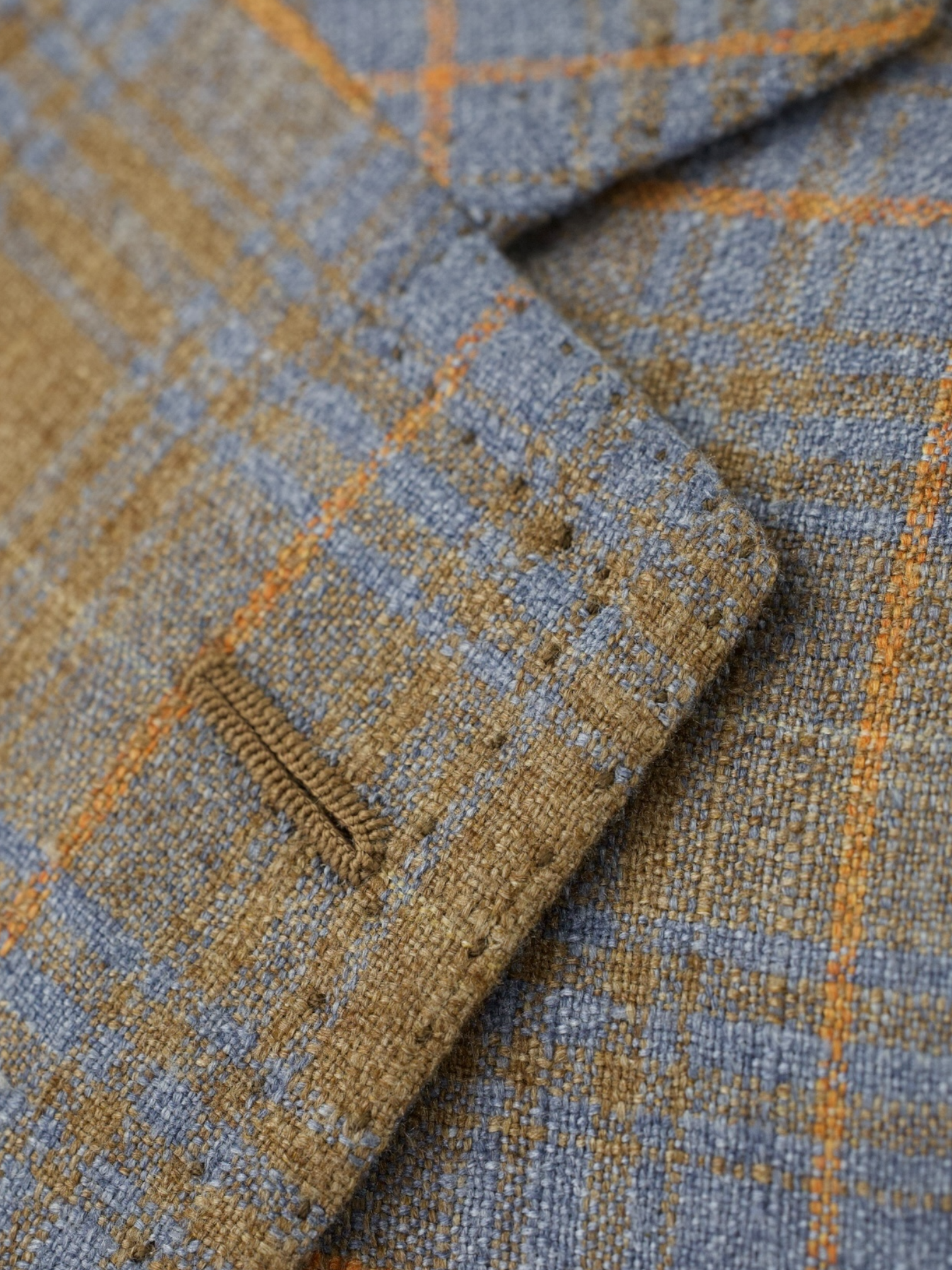 Cesare Attolini Taupe, Light Blue & Orange Silk & Cashmere Check Jacket
