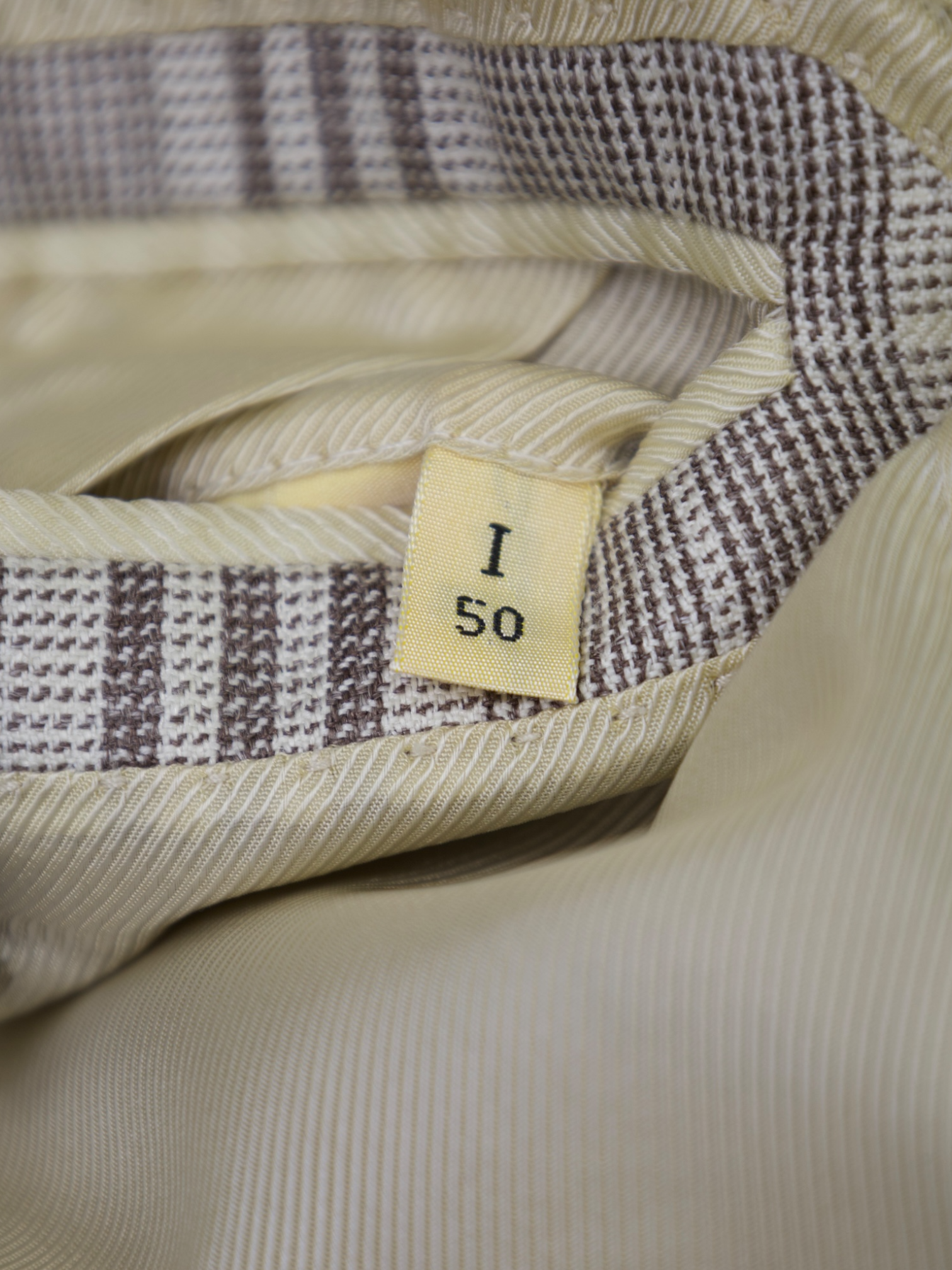 The ‘tre bottoni stirato a due’, also known as the three rolling on two lapel style, is perhaps the most infamous characteristic of the Neapolitan style jacket. The top button and buttonhole are ornamental, so are left unbuttoned. As the lapel rolls down it elegantly folds over the top button and stops just 4 cm above the second button creating the distinct roll of the lapel the style is known for. As it is intended to remain unbuttoned, the top buttonhole is actually made inside out so the beautiful side will still be visible.