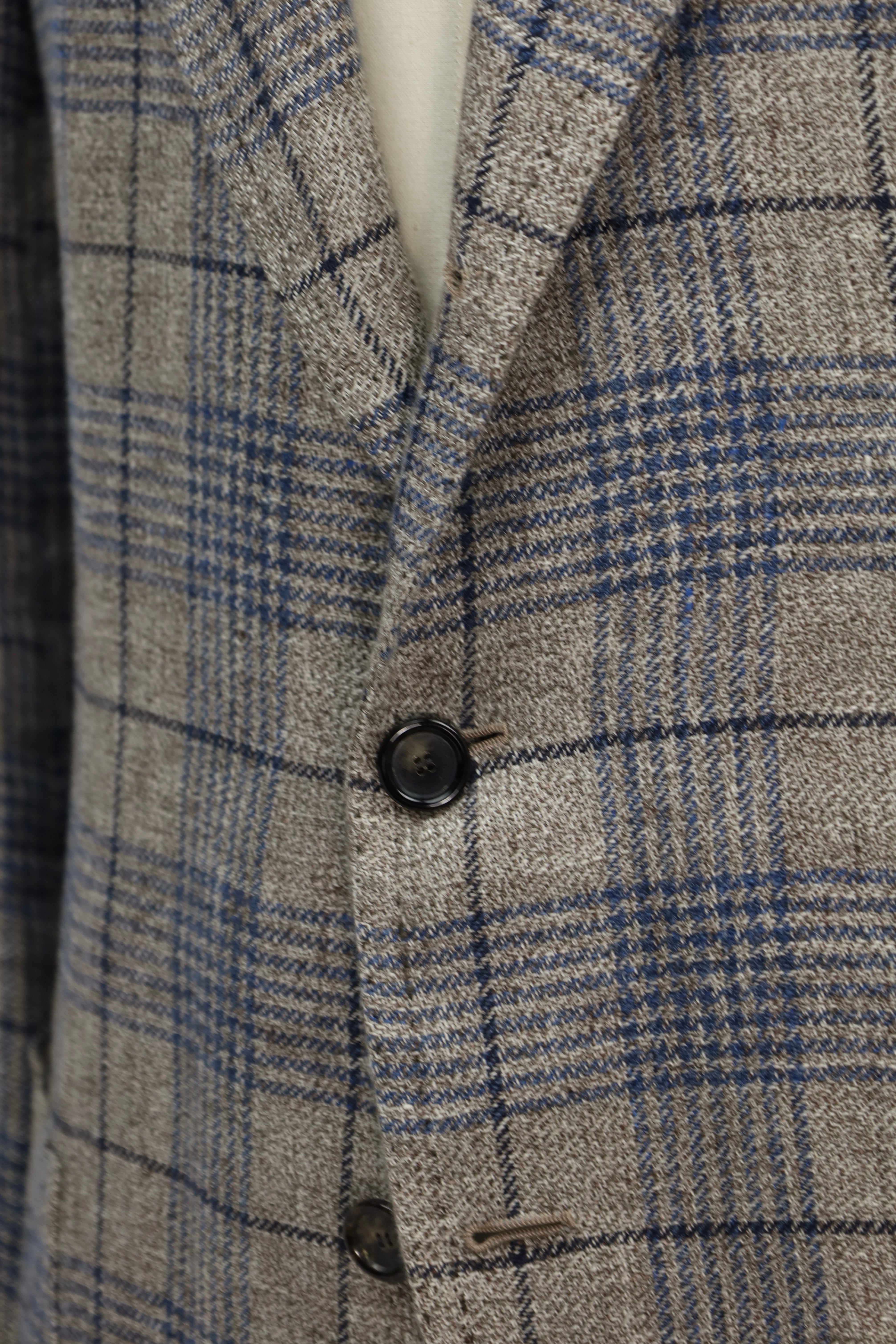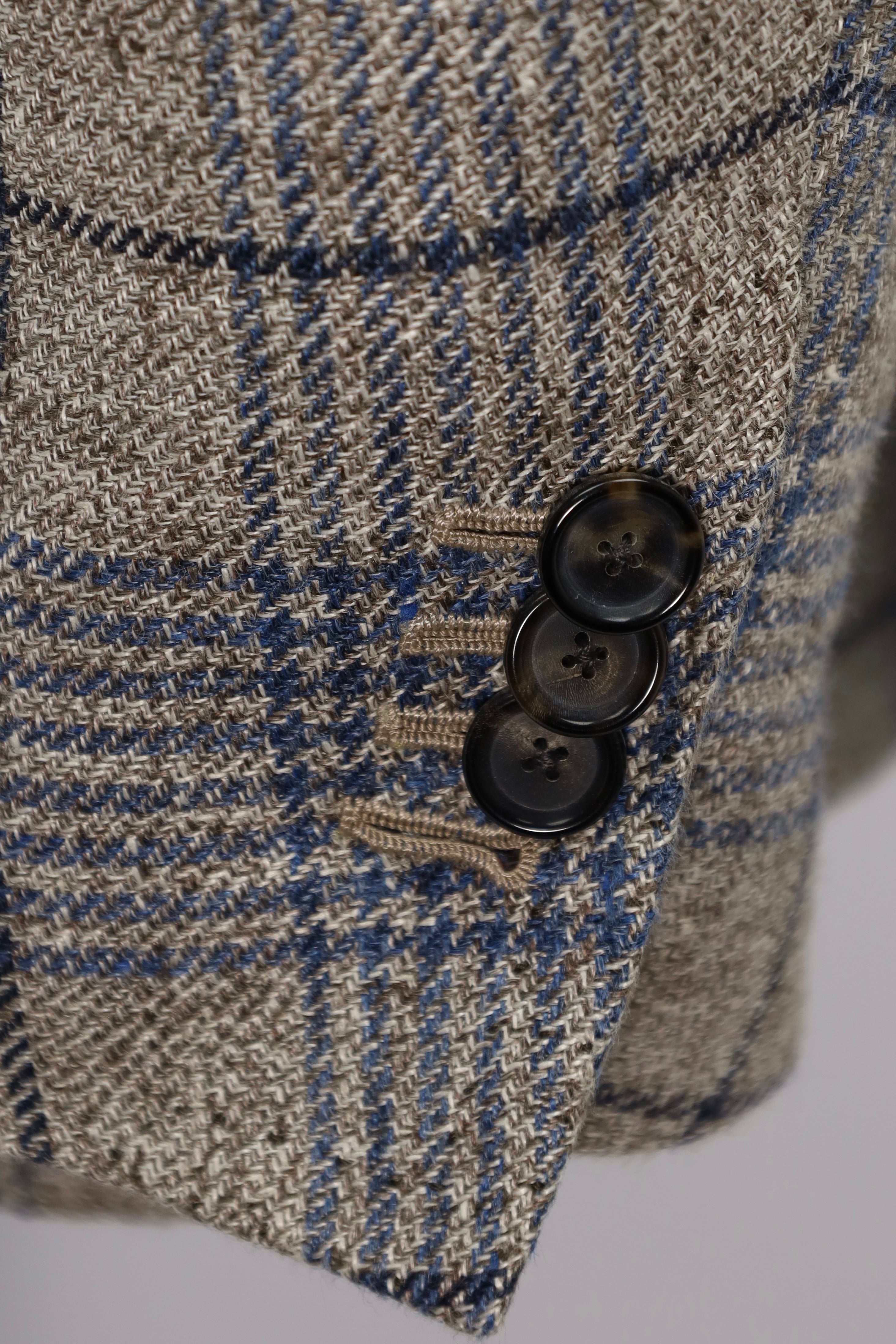Cesare Attolini Taupe Windowpane Linen Blazer