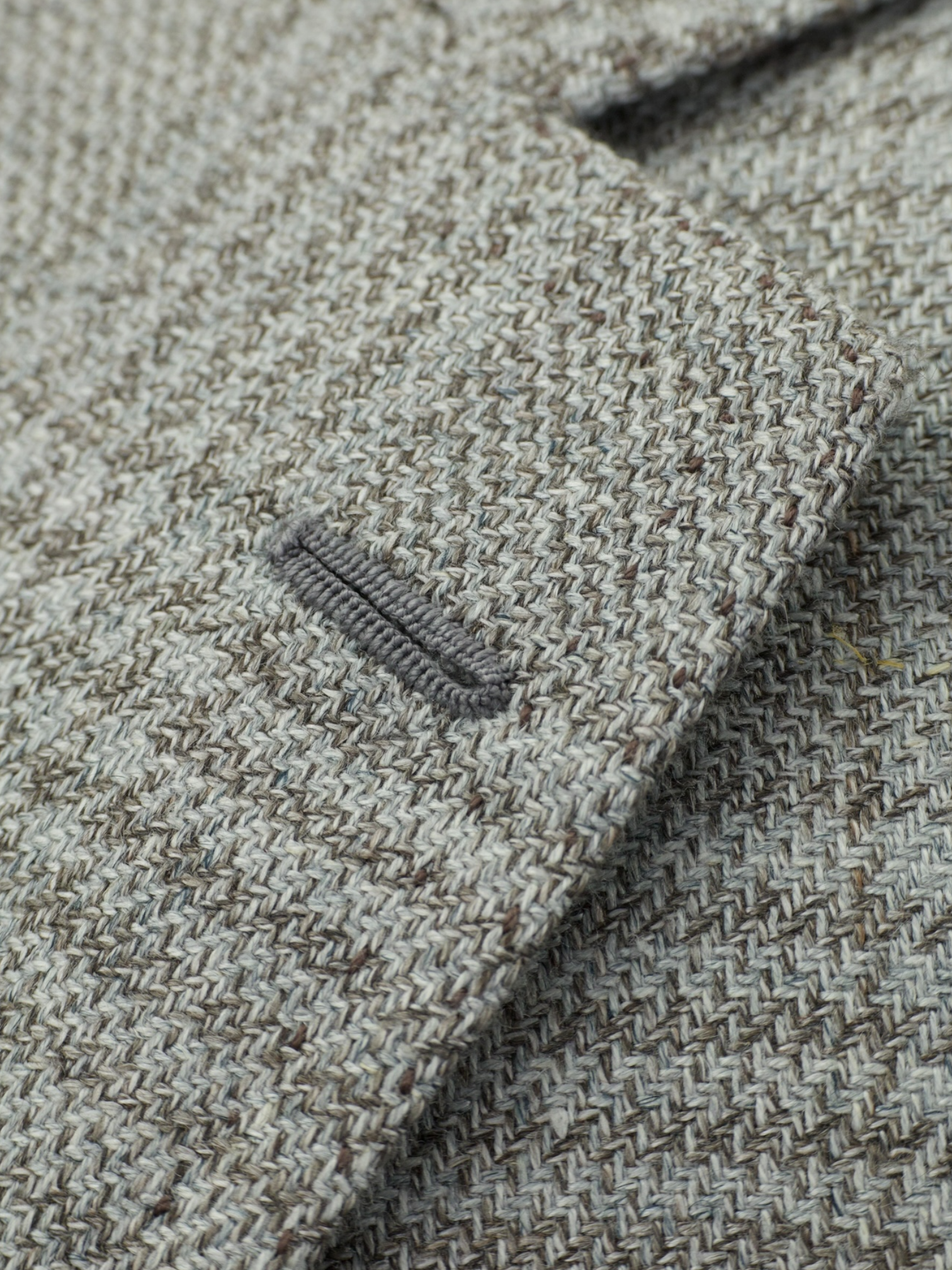 Handcrafted in Naples by Attolini’s seasoned artisans, the jacket reflects the brand’s ethos: absolute comfort, elevated through uncompromising technique. The unique weave—somewhere between sharkskin and hopsack—allows for excellent ventilation, ideal for warmer climates or long days that drift into evening. Every detail, from the gentle roll of the lapel to the naturally set sleevehead, is executed by hand with quiet precision. It's a rare blend of texture, lightness, and subtle luxury. Discover the elaborated sartorial details below.