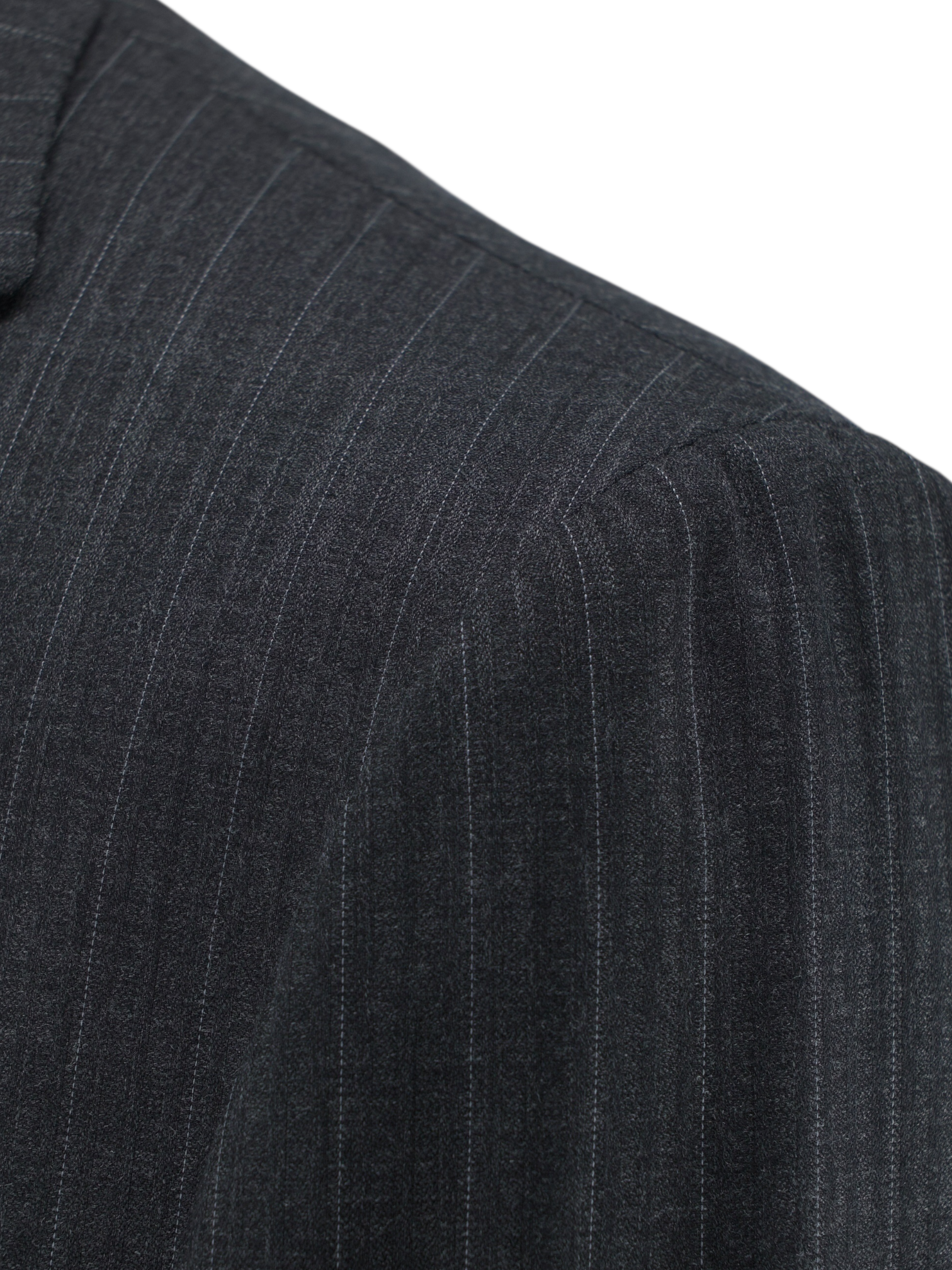 Spalla Camicia roughly translates to 'shirt sleeve' in Italian and is a shoulder style created and popularized by Neapolitan tailors. The name 'shirt sleeve' was so coined due to the characteristic shirring found at the sleeve's head where the fullness of the larger sleeve collapses. Rather than having the head of the sleeve turned back and stitched inside, the head is lapped under and stitched along the top.