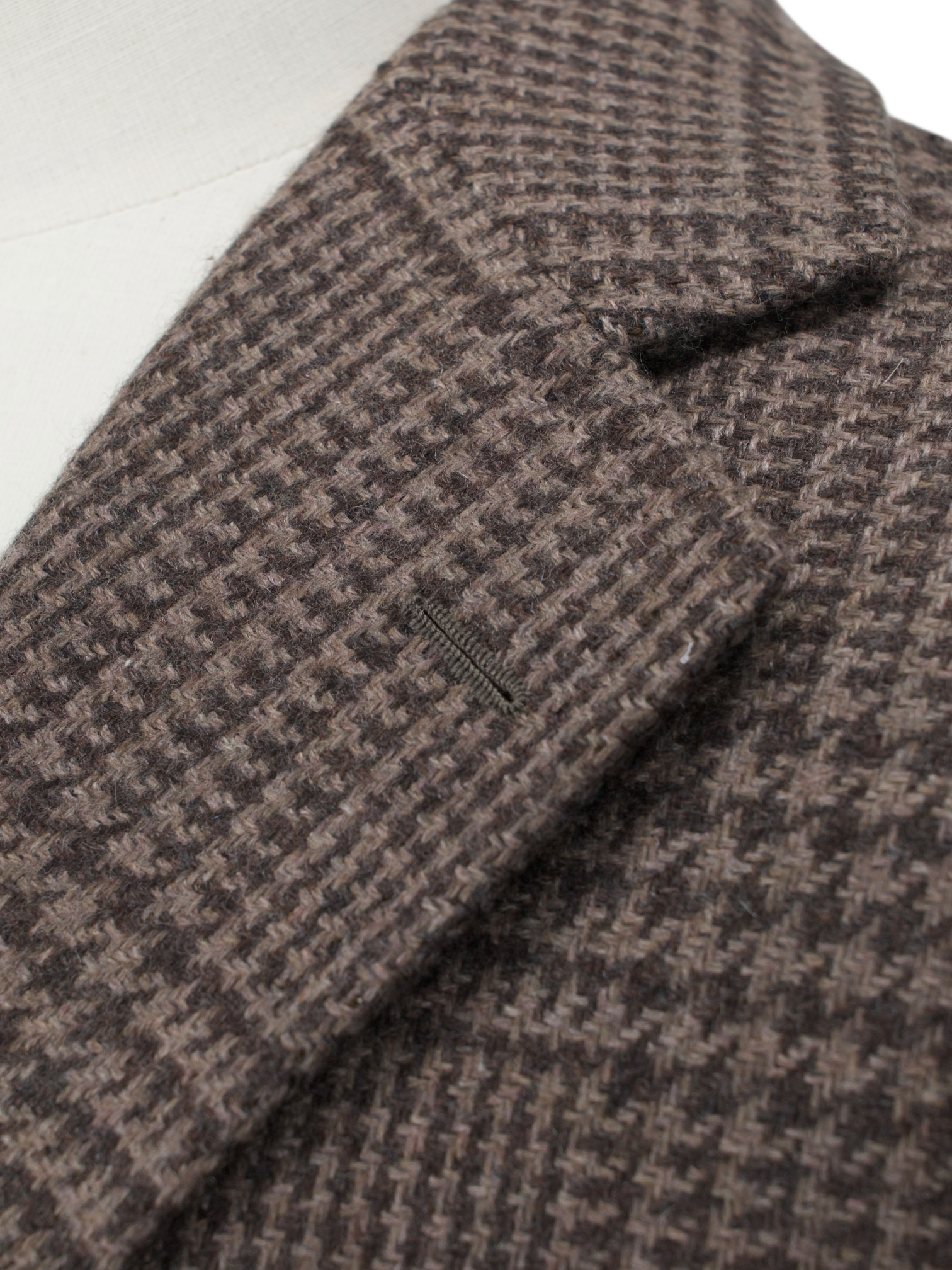 Fully lined for comfort and shape, the jacket is handmade in Naples using Cesare Attolini’s signature artisanal methods. From the softly constructed shoulders to the precise hand stitching along the lapels and buttonholes, every detail reflects the house’s dedication to understated luxury. The combination of luxurious cashmere and traditional pattern reinterpreted through a southern Italian lens gives this piece a refined yet quietly expressive character. Discover the elaborated sartorial details below.