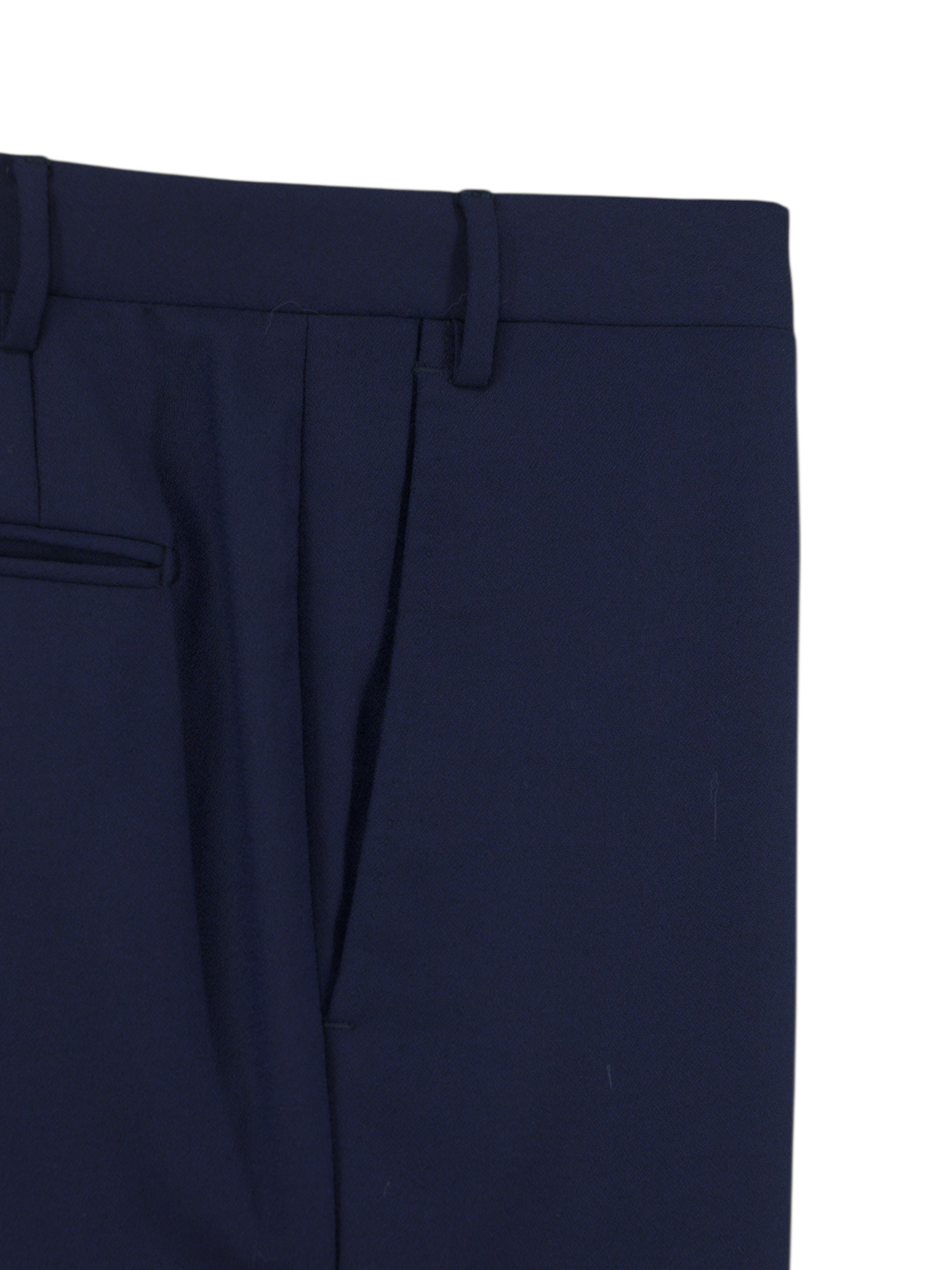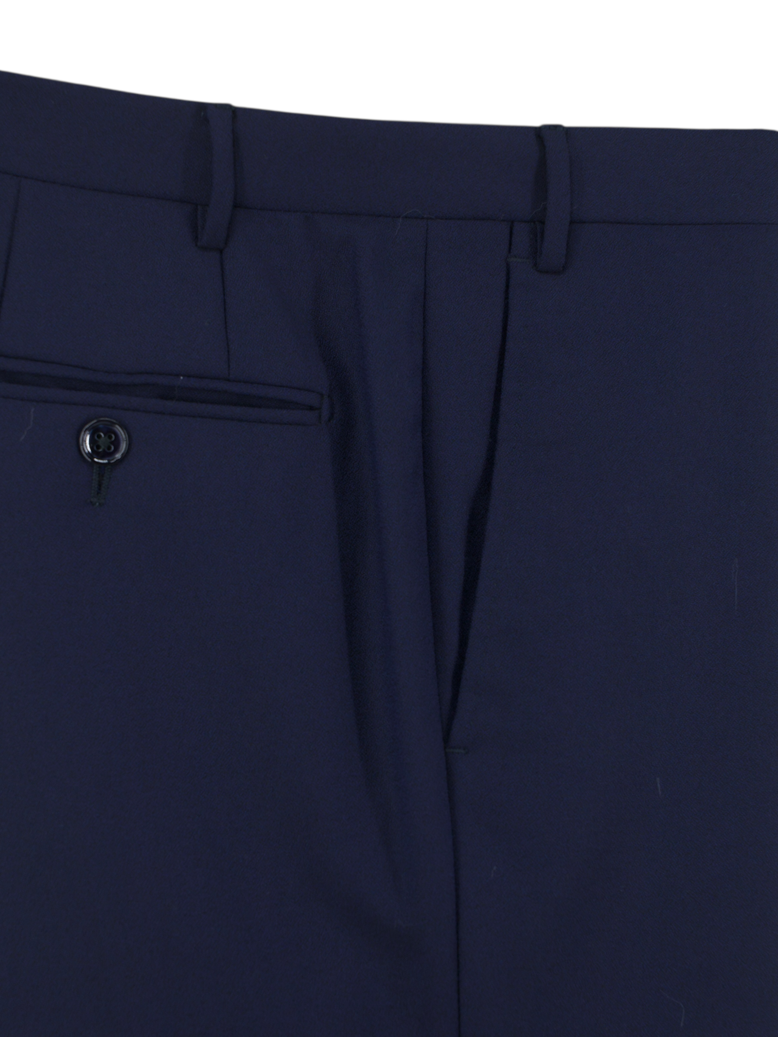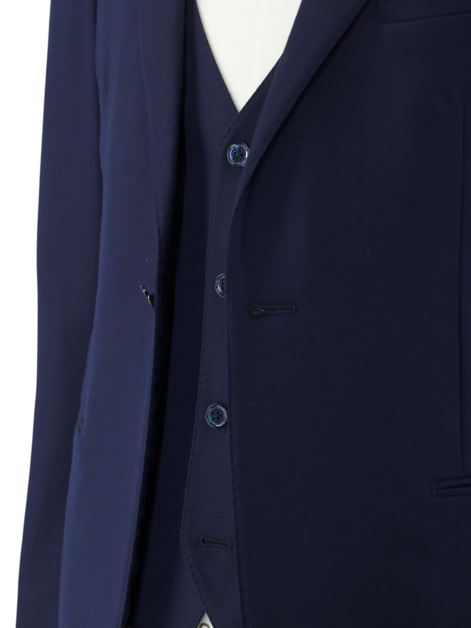 Discover the Corneliani Dark Blue Three-Piece Super 120’s Wool Wedding Suit, a sharply tailored ensemble designed for moments that matter. The cloth is woven from fine 17,75 Microns (Super 120’s) wool with a subtle sheen that shifts with the light, giving the dark blue tone an almost iridescent quality. The jacket features peak lapels, a single-button closure and a clean single vent at the back, all cut in a drop 8 silhouette for a sharp, tapered fit. Blue mother-of-pearl buttons add an elegant finishing touch, quietly setting it apart from more conventional tailoring.