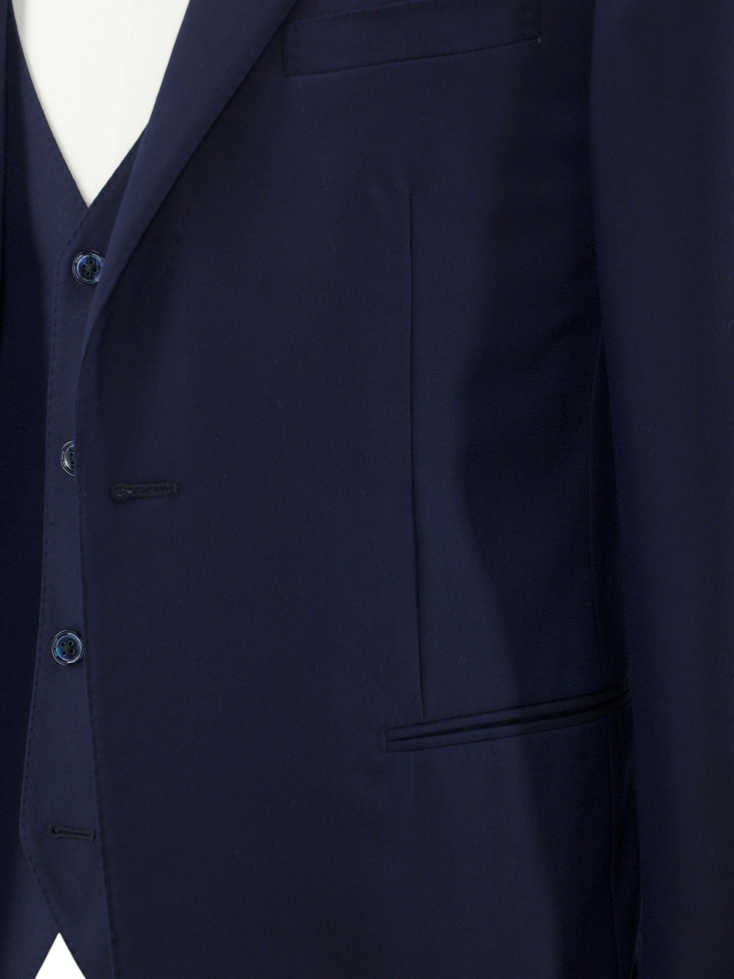 This isn’t your everyday business suit. With its distinctive configuration and refined detailing, it’s designed for special occasions - weddings in particular, where the moment calls for something more considered. The three-piece cut adds a layer of formality, while the lightweight wool keeps it comfortable through long celebrations. Impeccably tailored in Italy, it’s a suit that captures attention not with flash, but with balance, proportion and quiet confidence. Discover the elaborated sartorial details below.