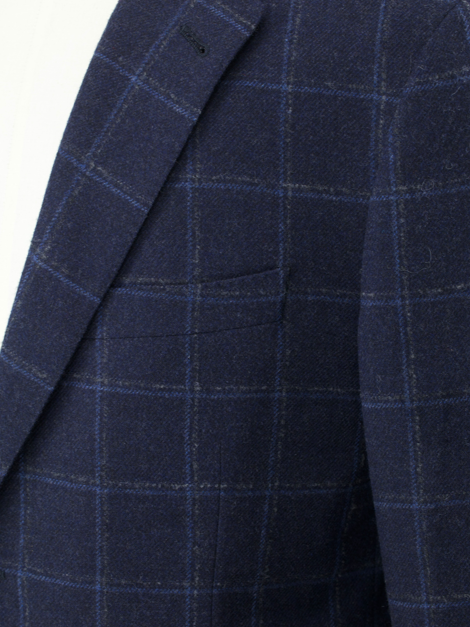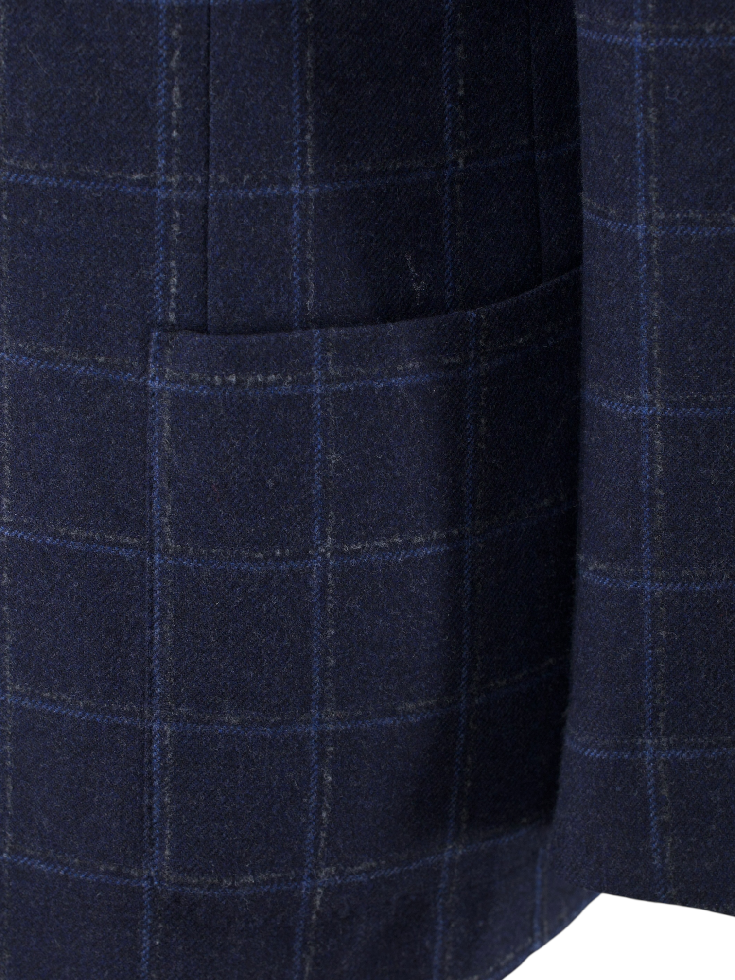 Also known as ‘barchetta’ Italian for ‘little boat’, it is so named because this pocket floats on the chest gently angled upward, just like the bow of a sailboat. These pockets echo the lively roll of a lapel that carries the spring of canvas and natural wool, unlike machine-made chest pockets that have a more stamped-out, rectangular shape and less life.