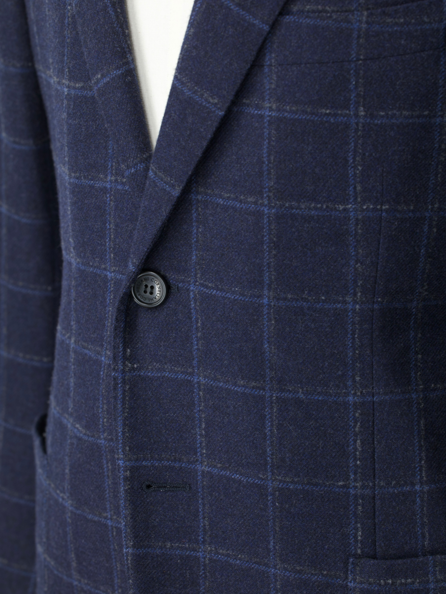 Corneliani Dark Blue Brushed Wool & Cashmere Windowpane Jacket