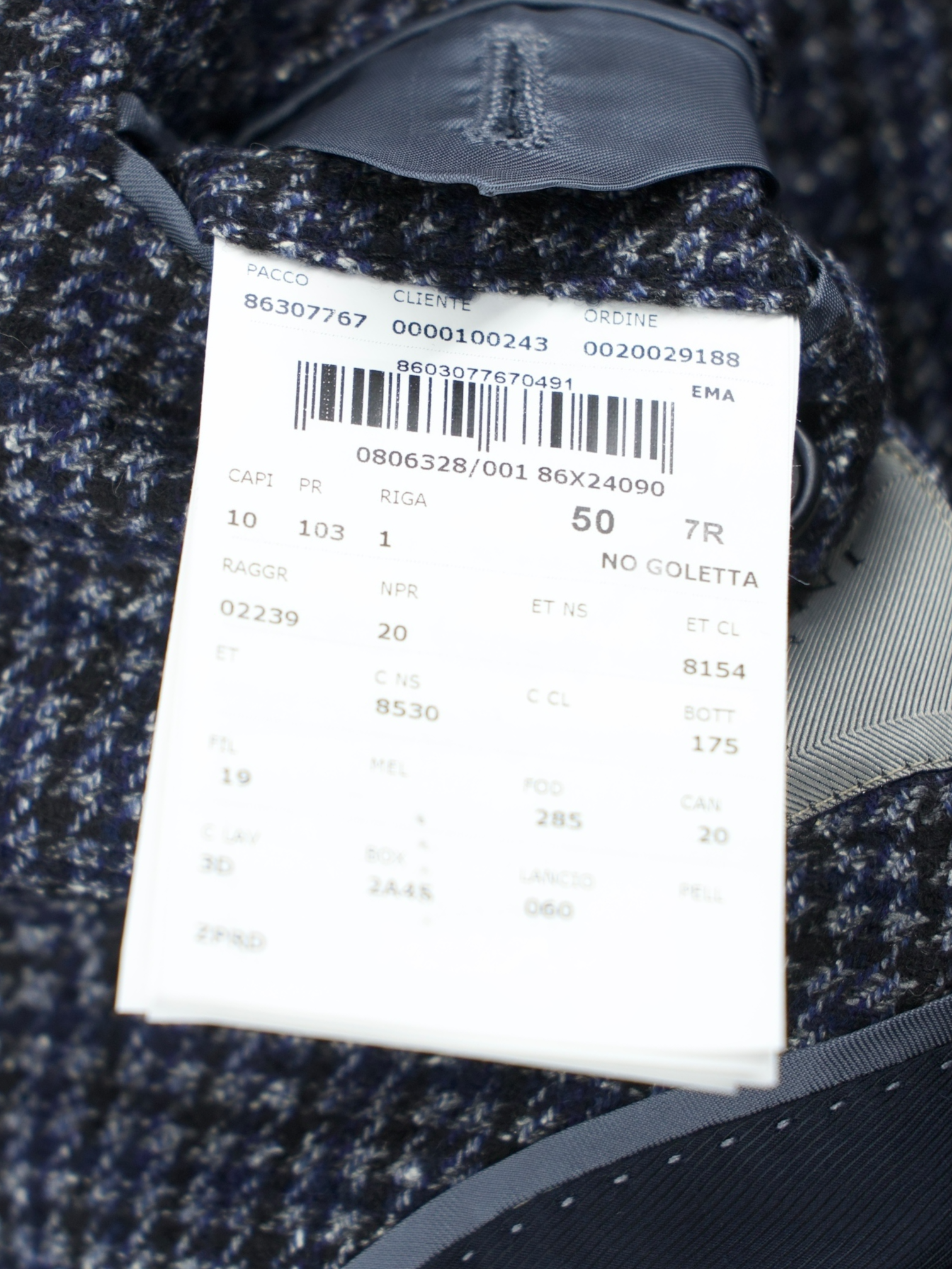 Also known as ‘barchetta’ Italian for ‘little boat’, it is so named because this pocket floats on the chest gently angled upward, just like the bow of a sailboat. These pockets echo the lively roll of a lapel that carries the spring of canvas and natural wool, unlike machine-made chest pockets that have a more stamped-out, rectangular shape and less life.