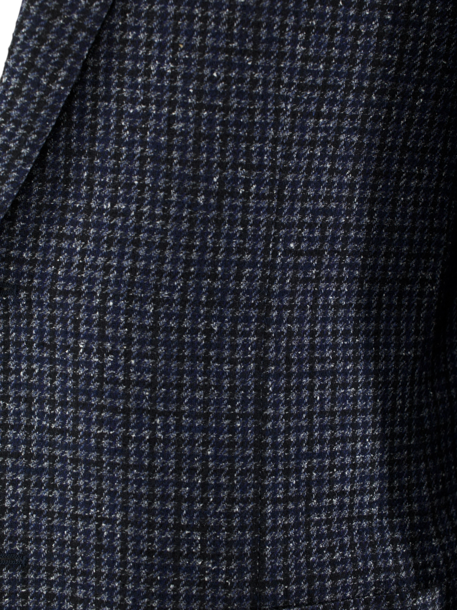 Discover the Corneliani dark blue pied de poule jacket, woven from a thoughtful blend of wool, silk, stretch fibre and cashmere for a soft, plush feel with a subtle bouclé texture. The colour palette is anchored in deep navy, with flecks of blue and grey that bring depth and dimension to the classic houndstooth pattern. Designed with notch lapels, a two-button closure and grey mother-of-pearl buttons, it offers a refined look with a tactile edge. The jacket is half lined to provide structure while maintaining a relaxed, breathable feel.