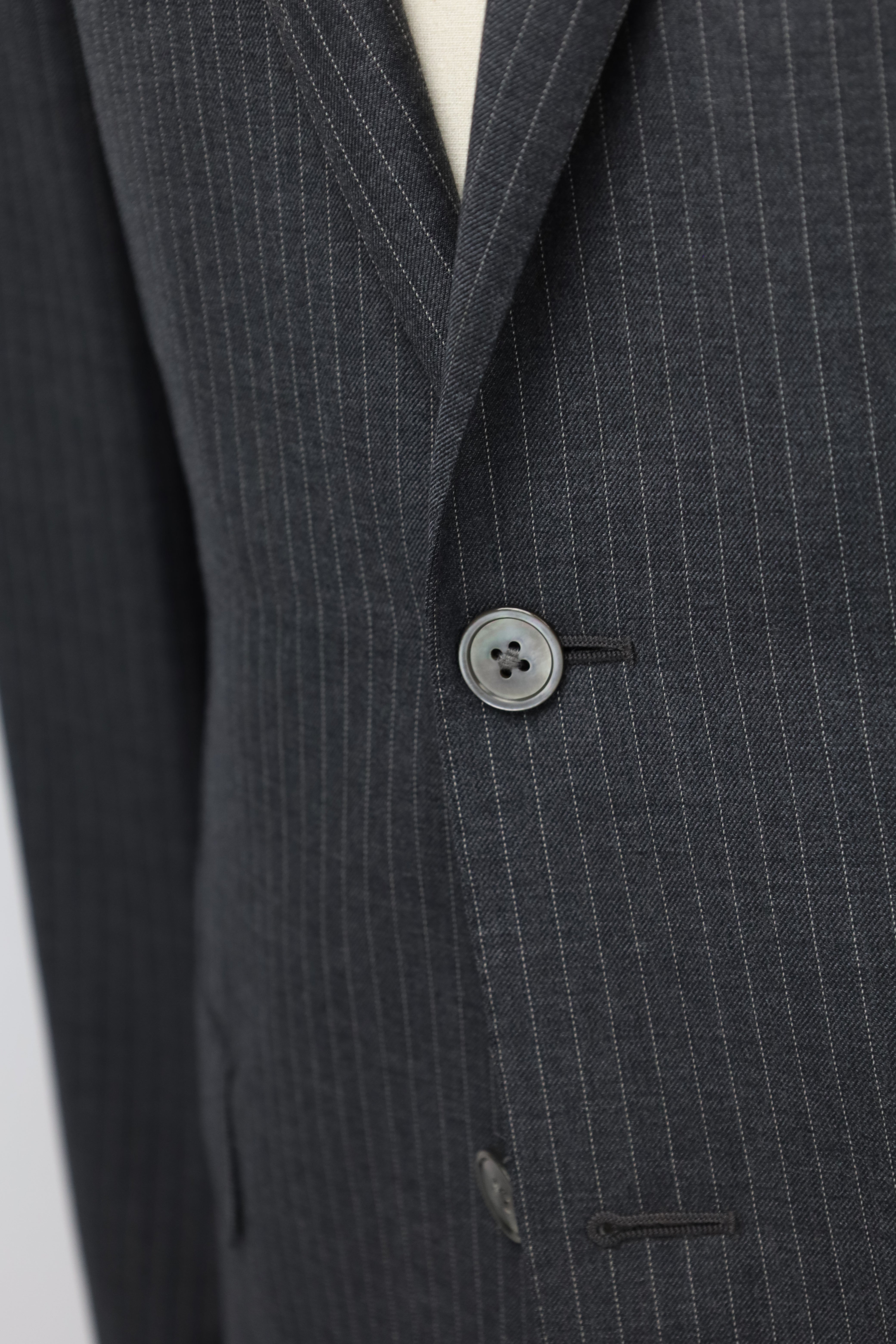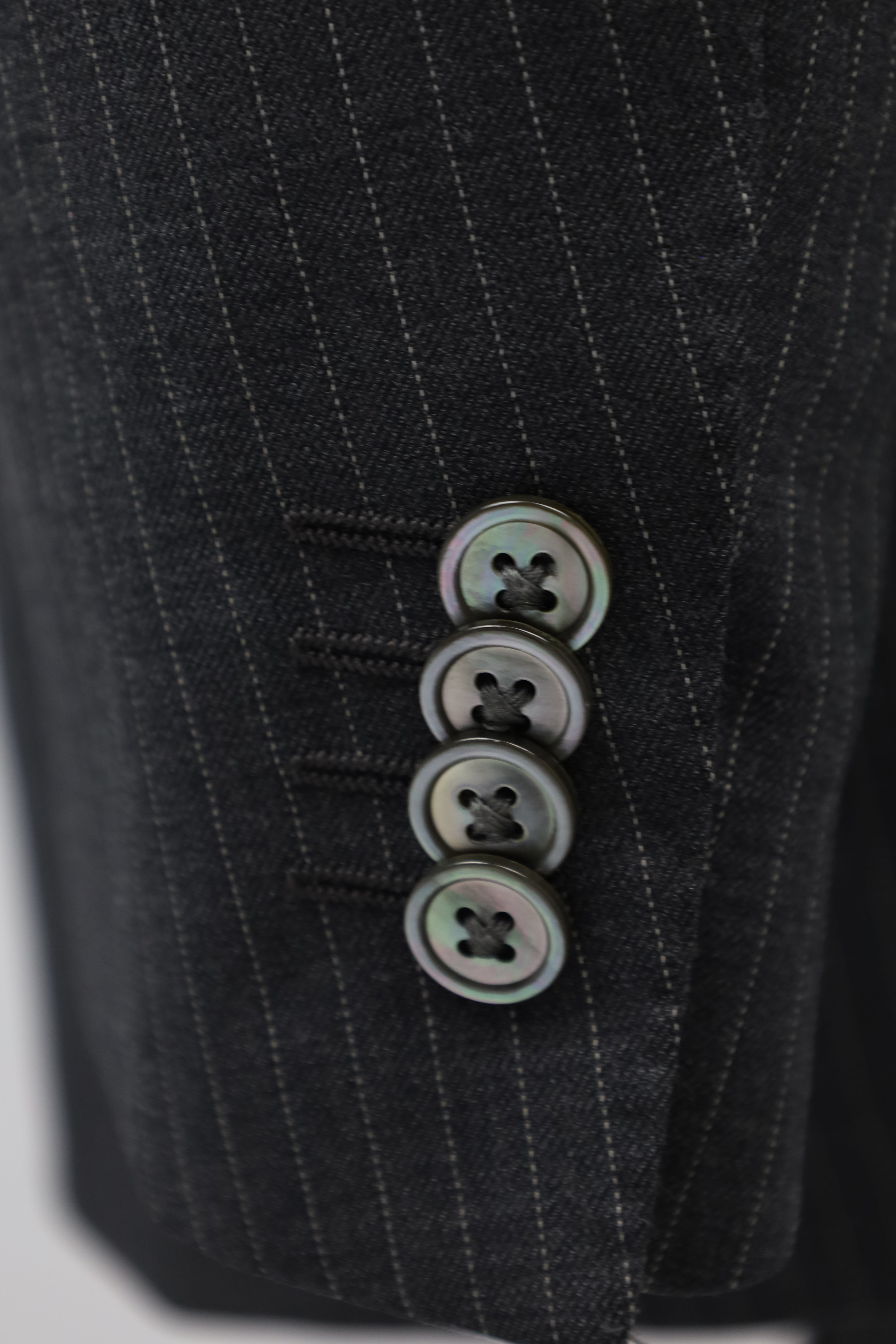 The tailors adds two darts - think of them as pinched seams - to ensure the jacket’s body achieves a slim silhouette. The process, called mezzo punto riprese, is done entirely by hand.