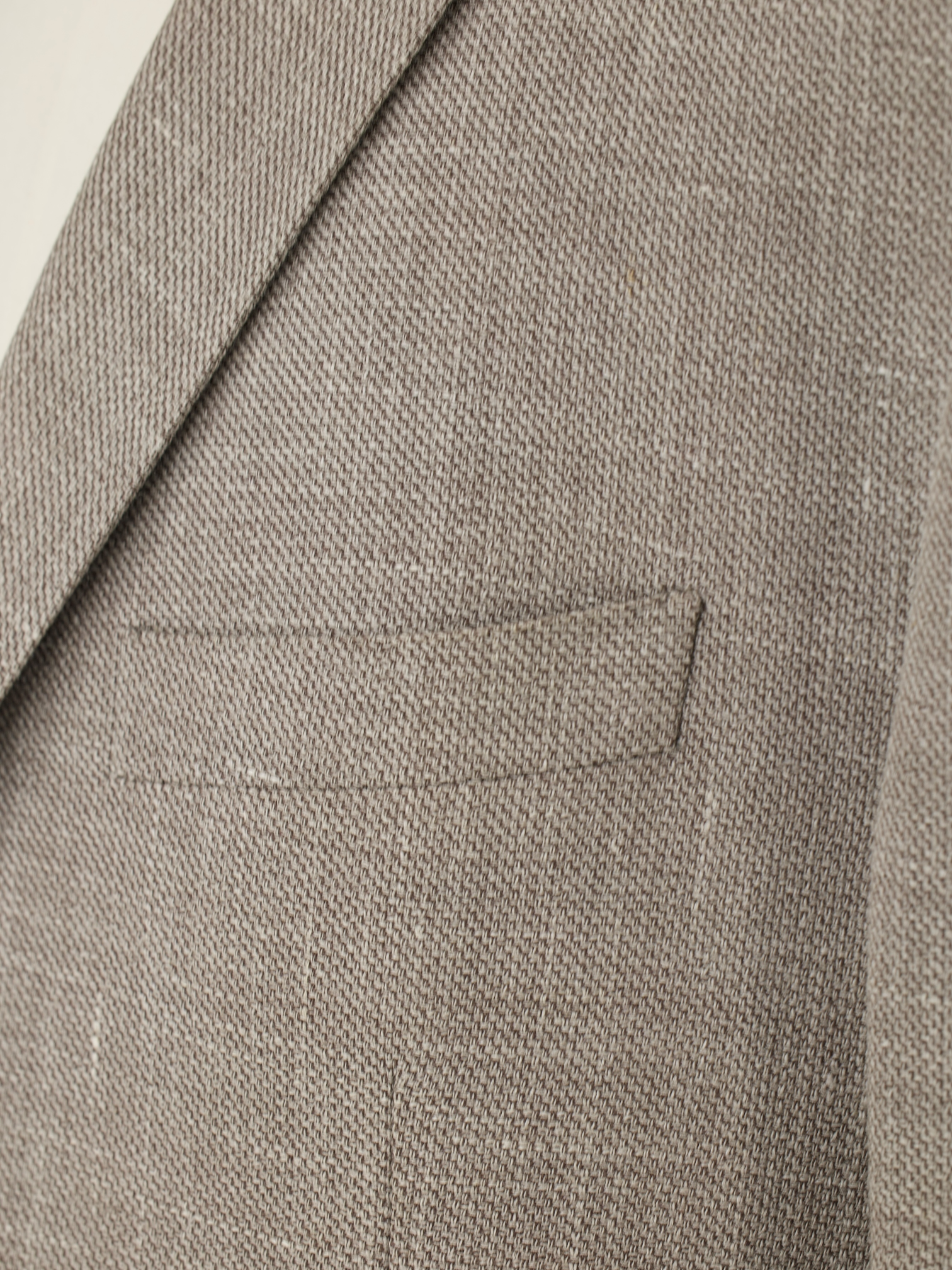 Also known as ‘barchetta’ Italian for ‘little boat’, it is so named because this pocket floats on the chest gently angled upward, just like the bow of a sailboat. These pockets echo the lively roll of a lapel that carries the spring of canvas and natural wool, unlike machine-made chest pockets that have a more stamped-out, rectangular shape and less life.