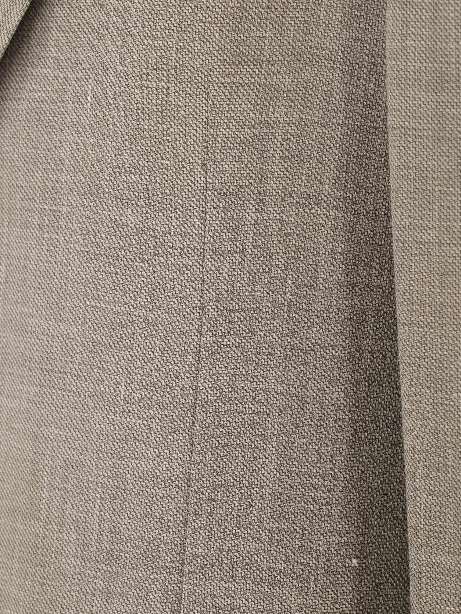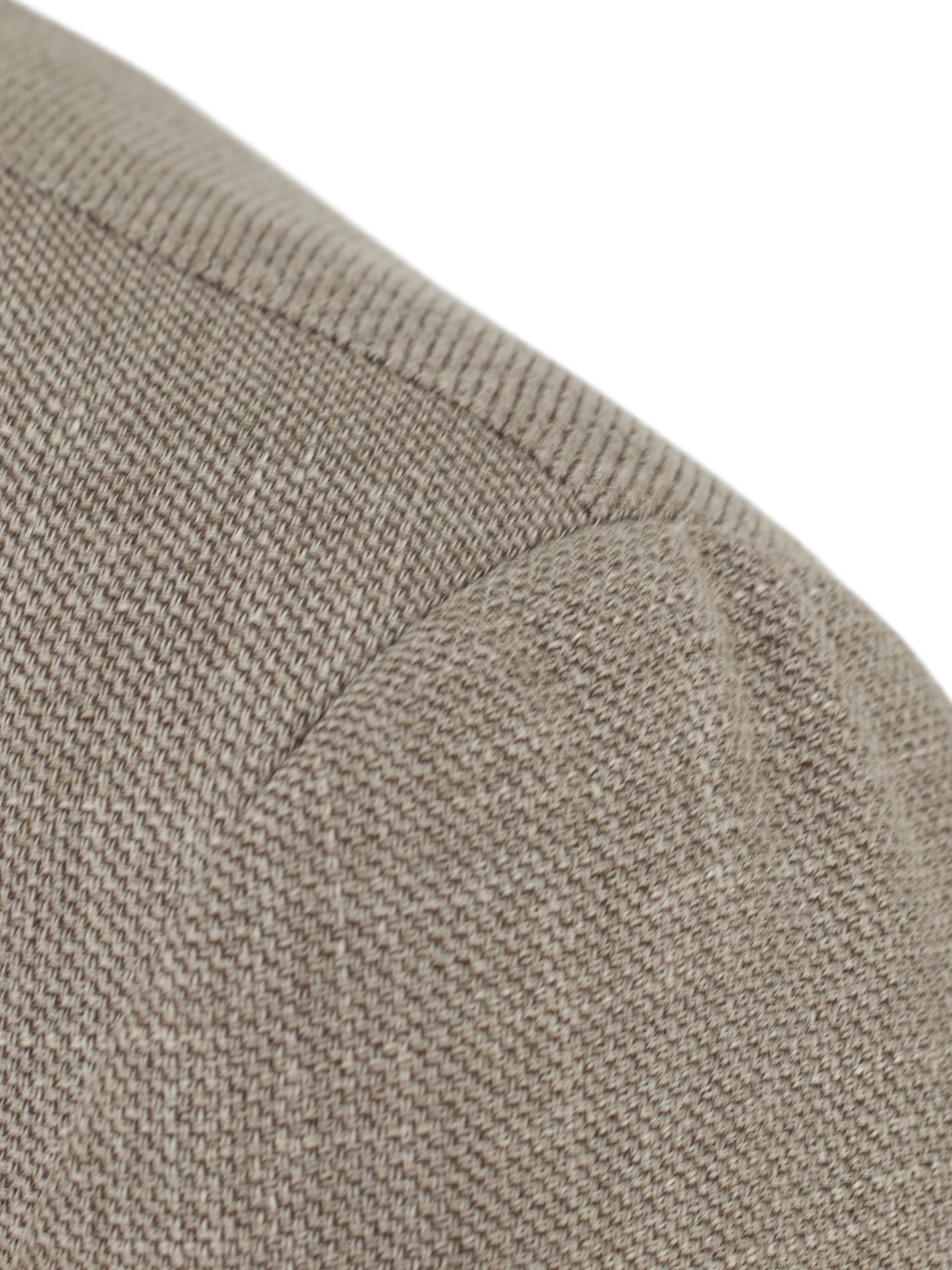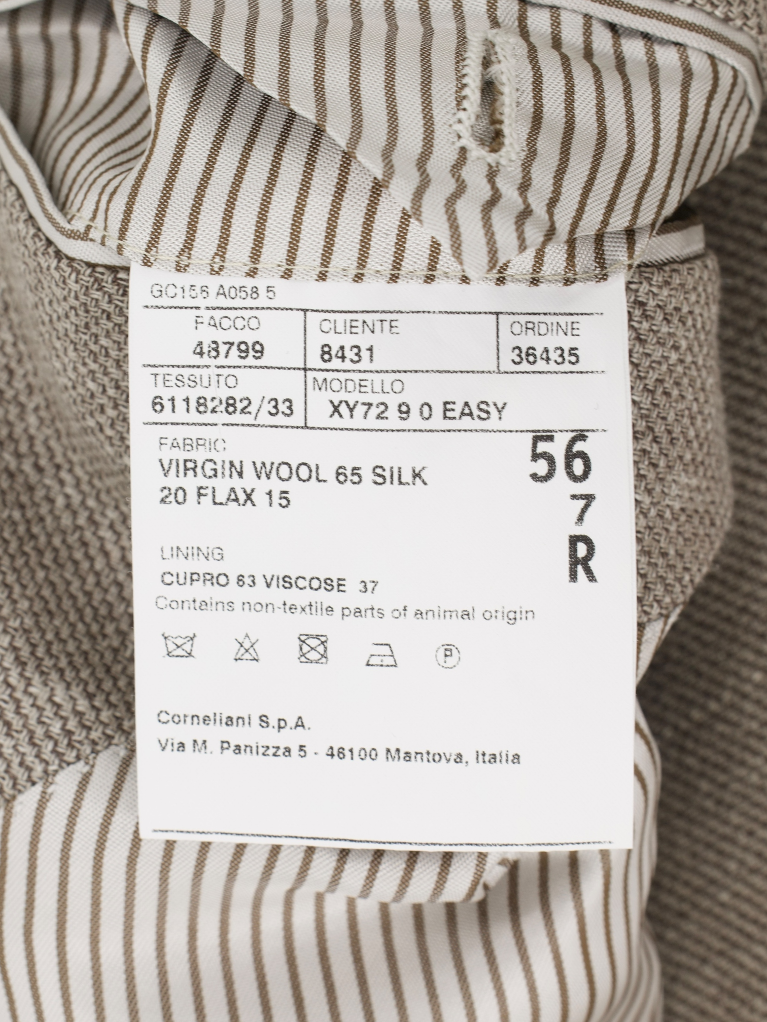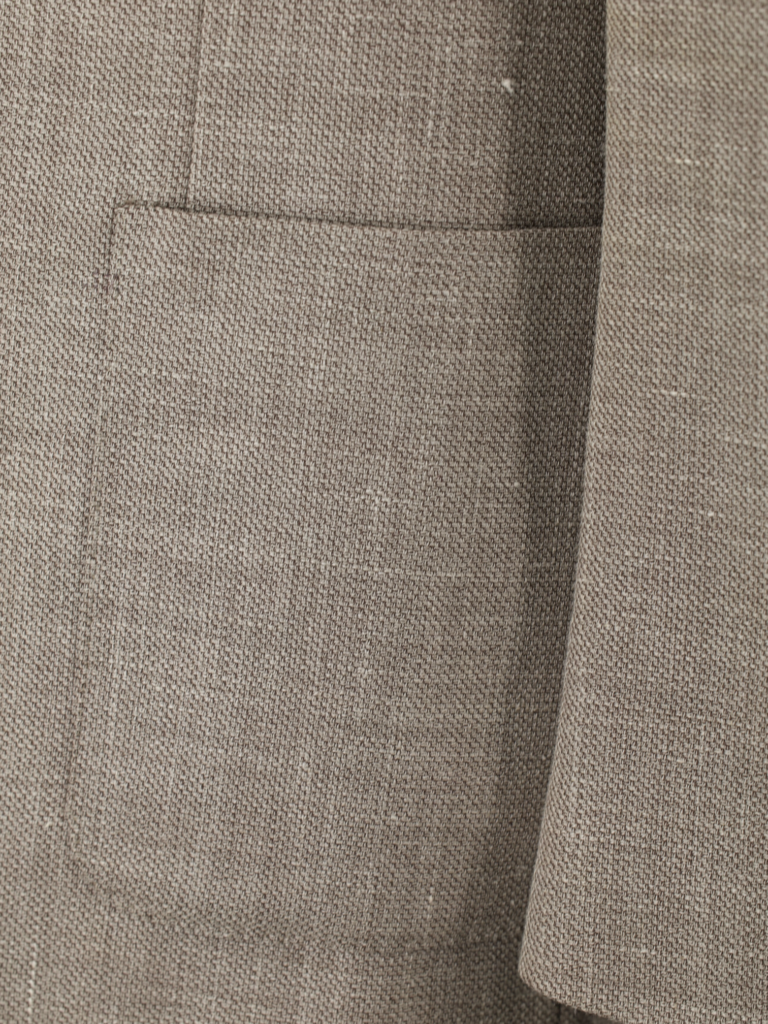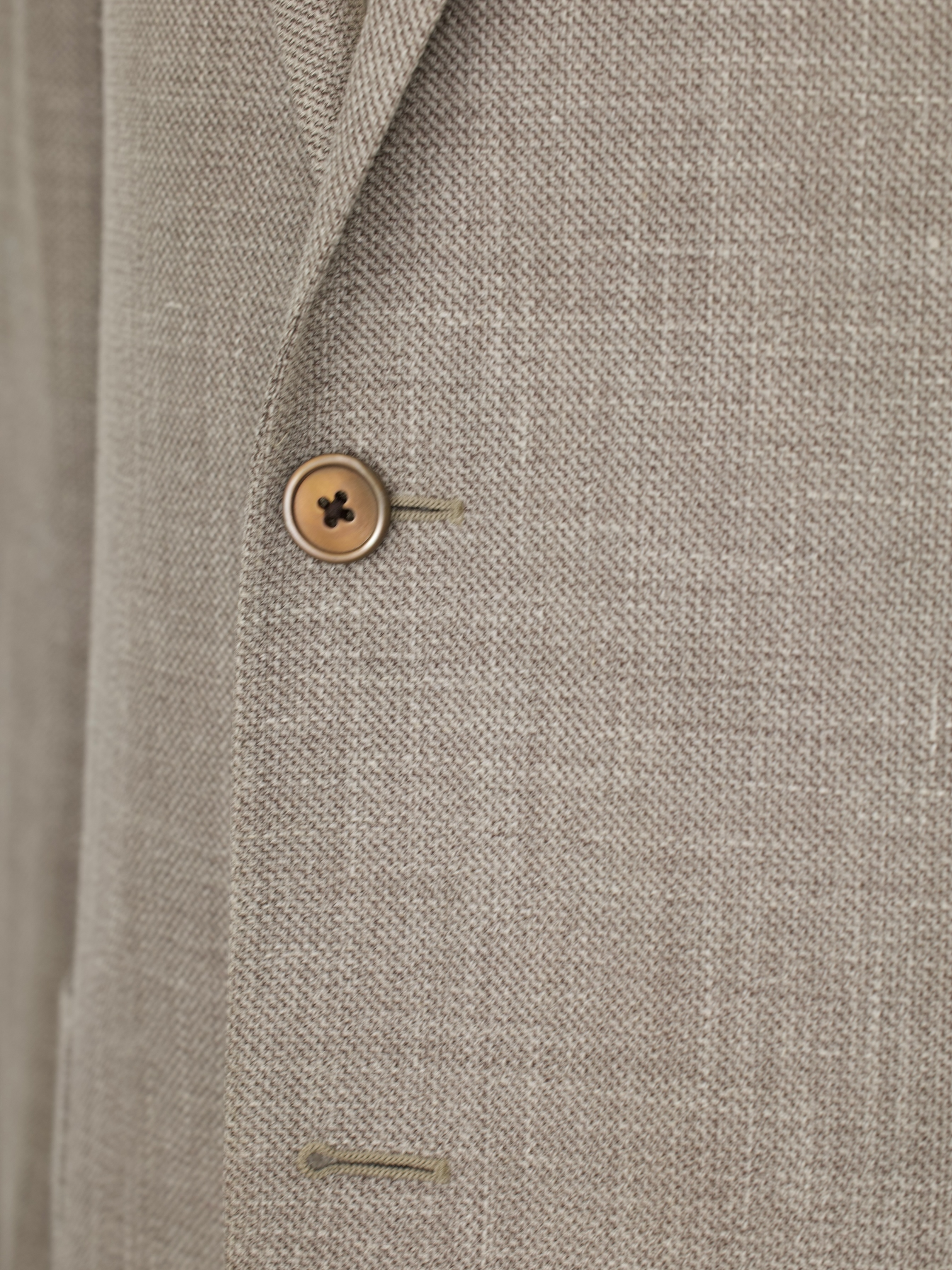 Corneliani is known for creating tailoring that feels polished yet approachable, and this jacket captures that spirit perfectly. The hopsack weave ensures breathability and lightness, while the silk adds refinement and the linen introduces a dry, relaxed touch. Mother-of-pearl buttons provide a discreet detail that lifts the natural tone of the fabric. Every seam and finish reflects Corneliani’s commitment to Italian craftsmanship, resulting in a jacket that looks refined but wears with effortless ease. Discover the elaborated sartorial details below.