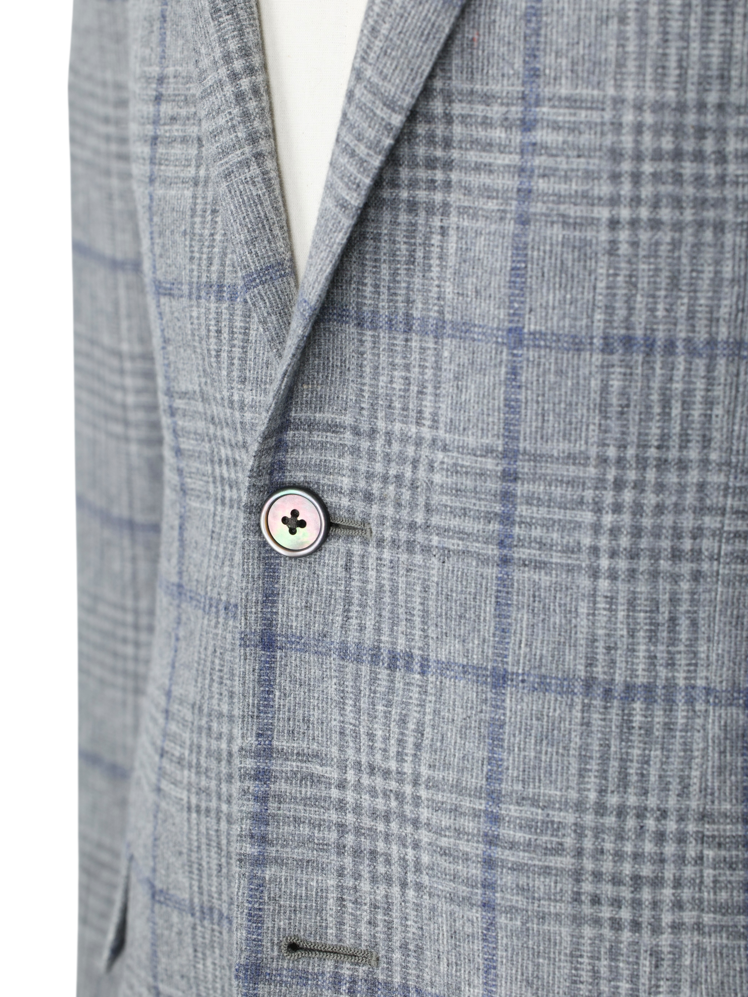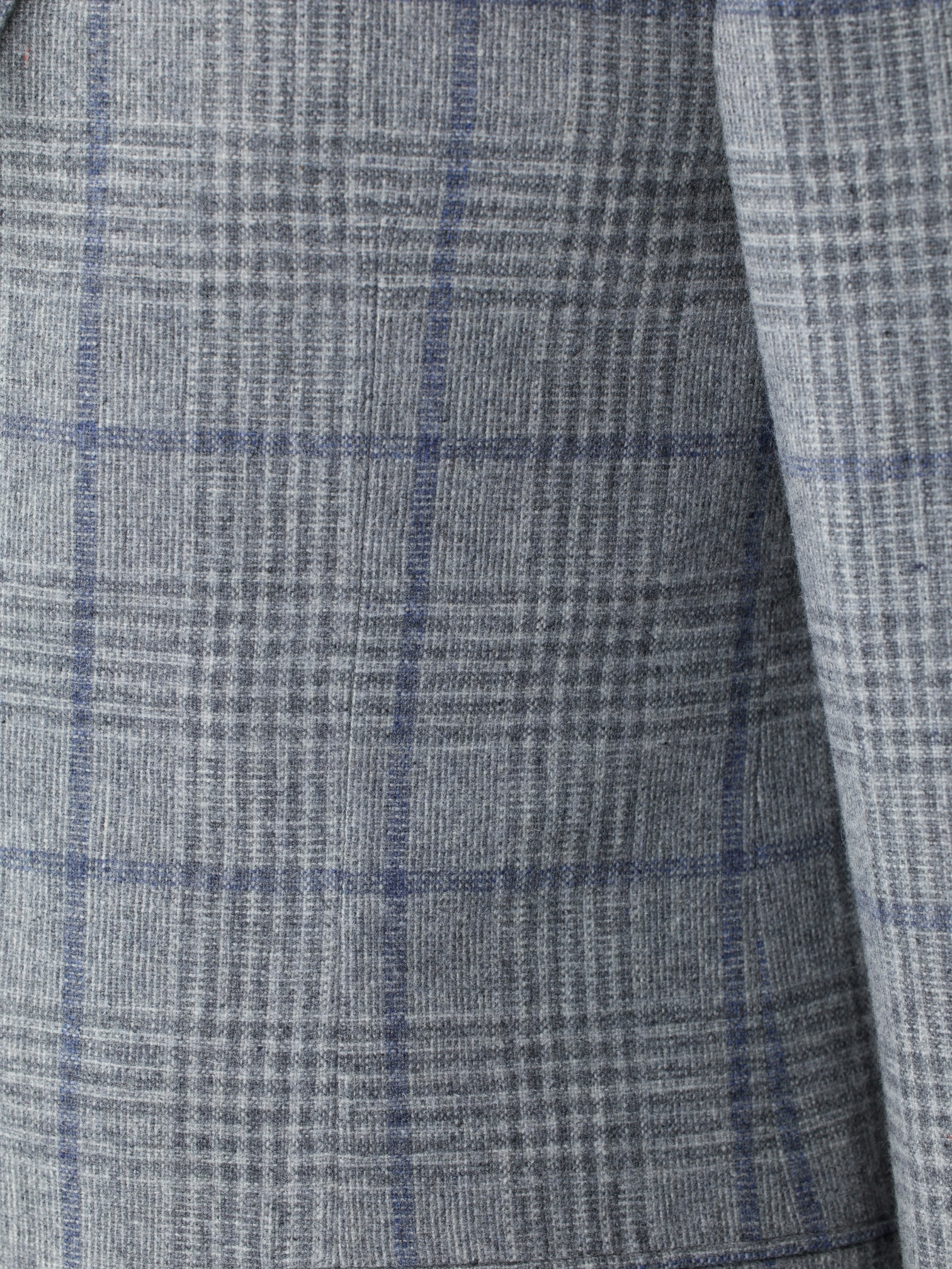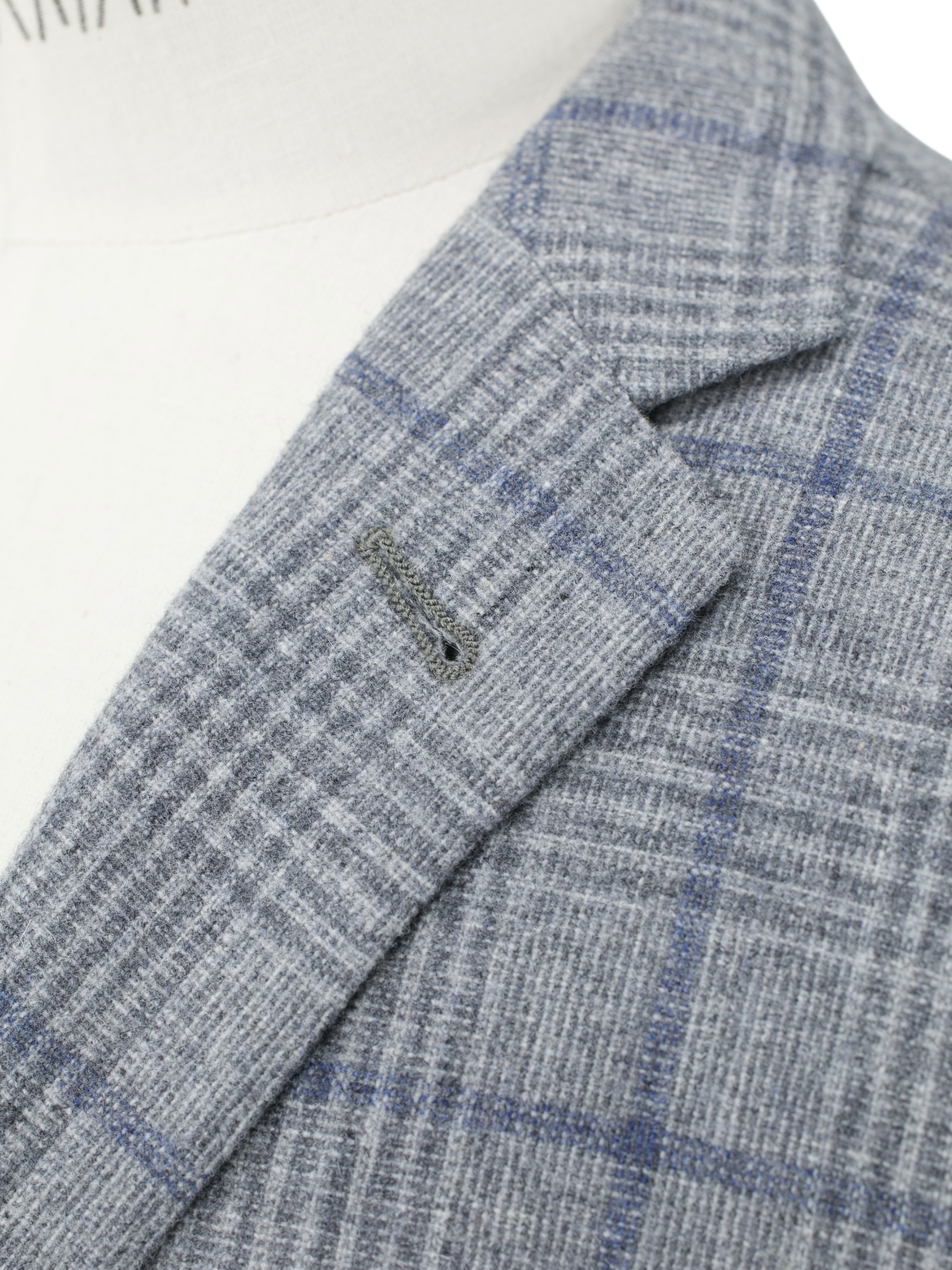 Crafted in the spirit of Corneliani’s heritage, the jacket reflects a balance of precision and ease. The cut is structured yet comfortable, designed to sit neatly through the shoulders while allowing natural movement. Careful pattern alignment ensures the glen plaid and overcheck flow seamlessly across seams and pockets, a subtle but important detail in jackets of this kind. It is a piece that pairs effortlessly with flannel trousers or dark denim, embodying a classic city aesthetic elevated through thoughtful fabric and considered construction. Discover the elaborated sartorial details below.