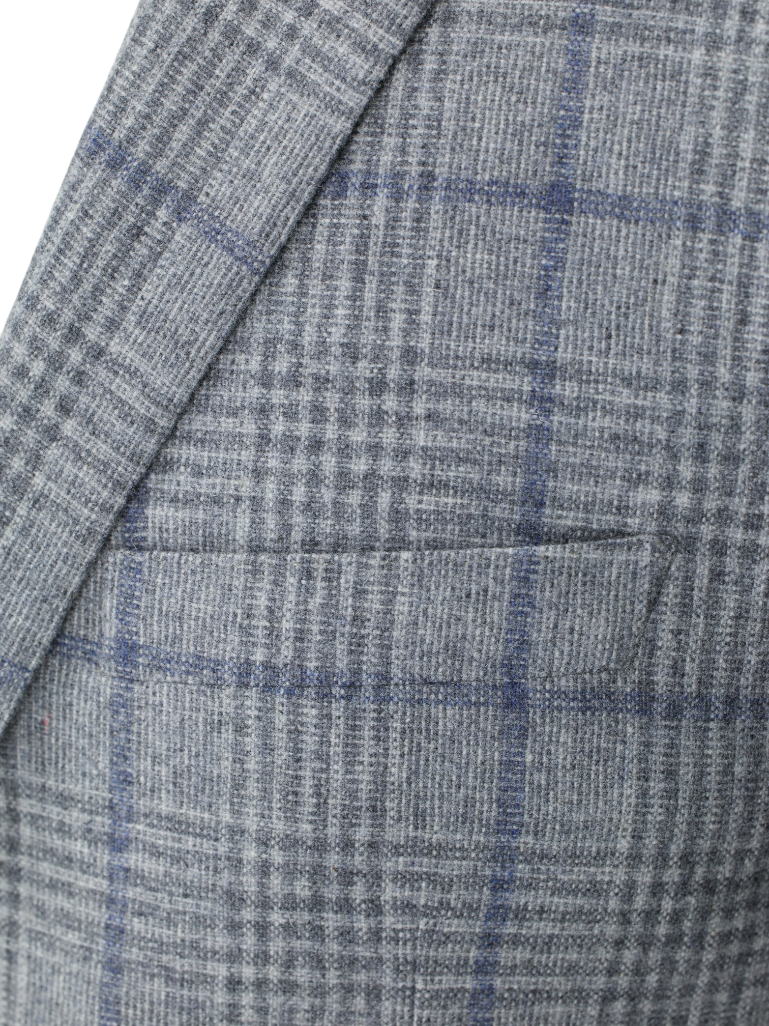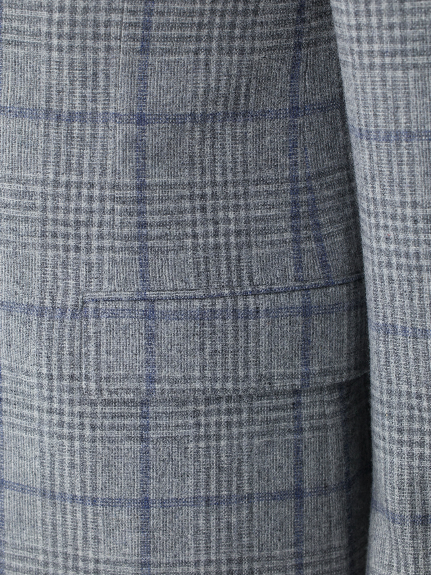 Also known as ‘barchetta’ Italian for ‘little boat’, it is so named because this pocket floats on the chest gently angled upward, just like the bow of a sailboat. These pockets echo the lively roll of a lapel that carries the spring of canvas and natural wool, unlike machine-made chest pockets that have a more stamped-out, rectangular shape and less life.
