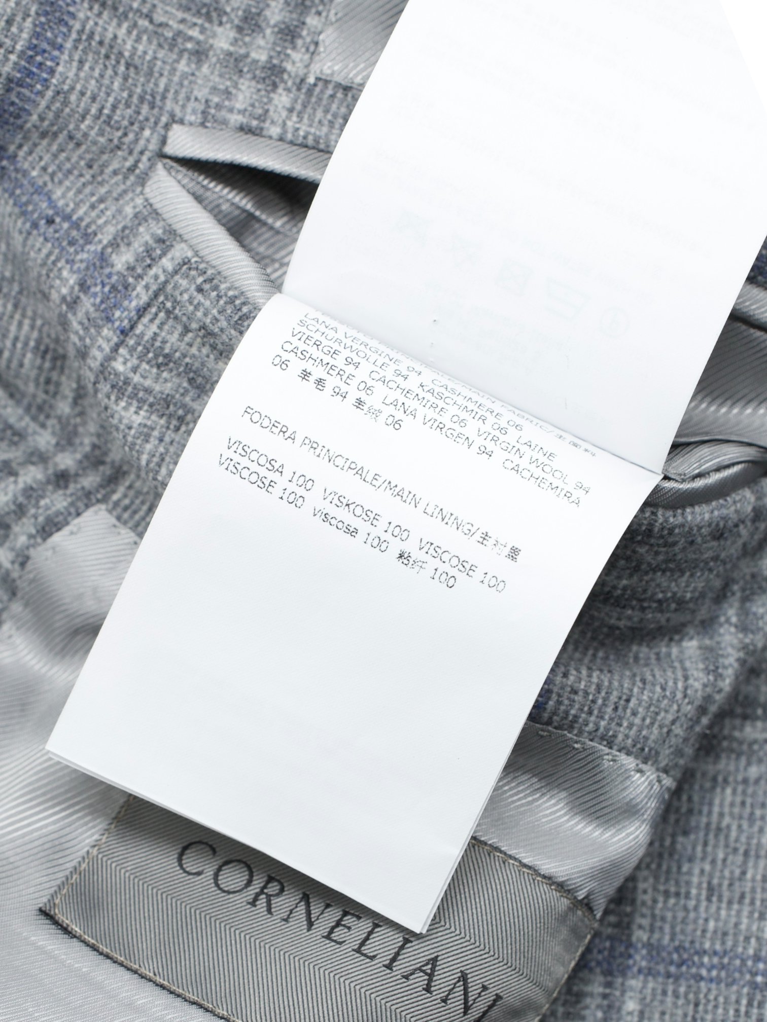 Corneliani Light Grey & Blue Wool-Cashmere Checkered Jacket