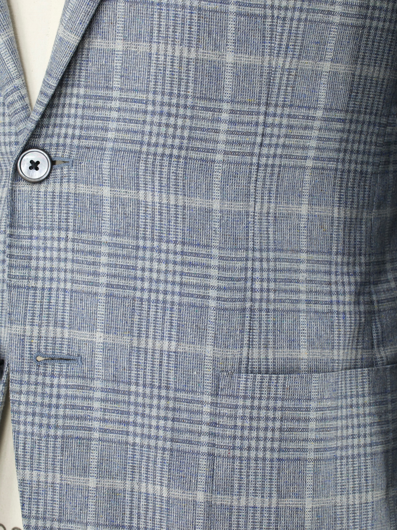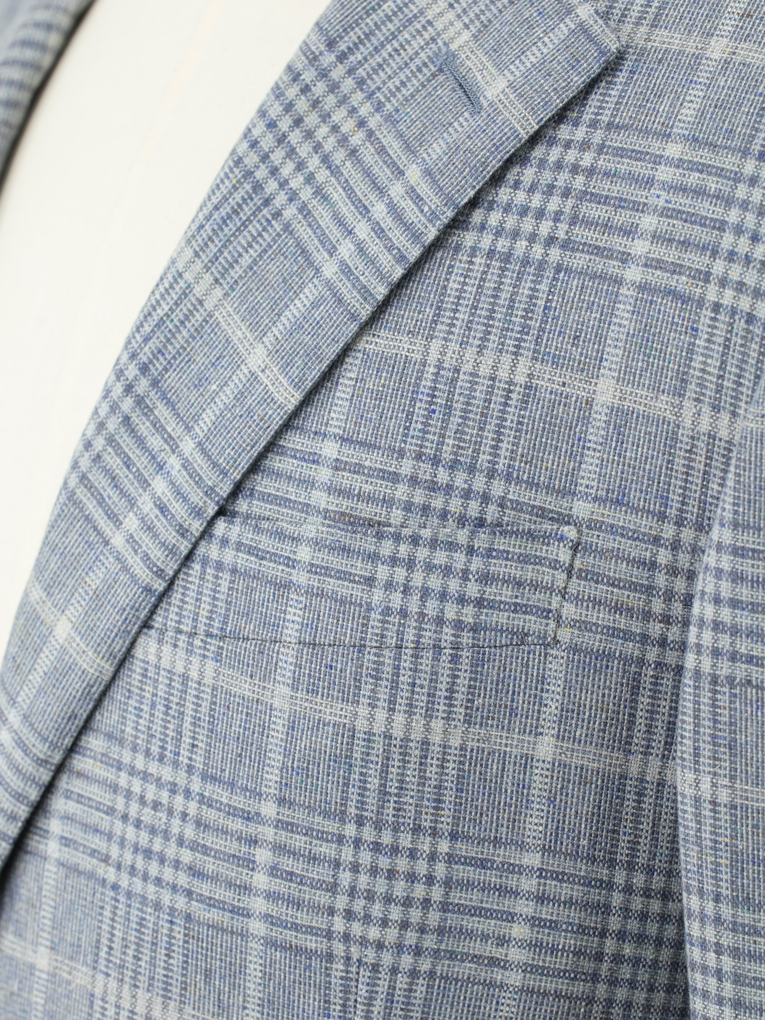 Also known as ‘barchetta’ Italian for ‘little boat’, it is so named because this pocket floats on the chest gently angled upward, just like the bow of a sailboat. These pockets echo the lively roll of a lapel that carries the spring of canvas and natural wool, unlike machine-made chest pockets that have a more stamped-out, rectangular shape and less life.