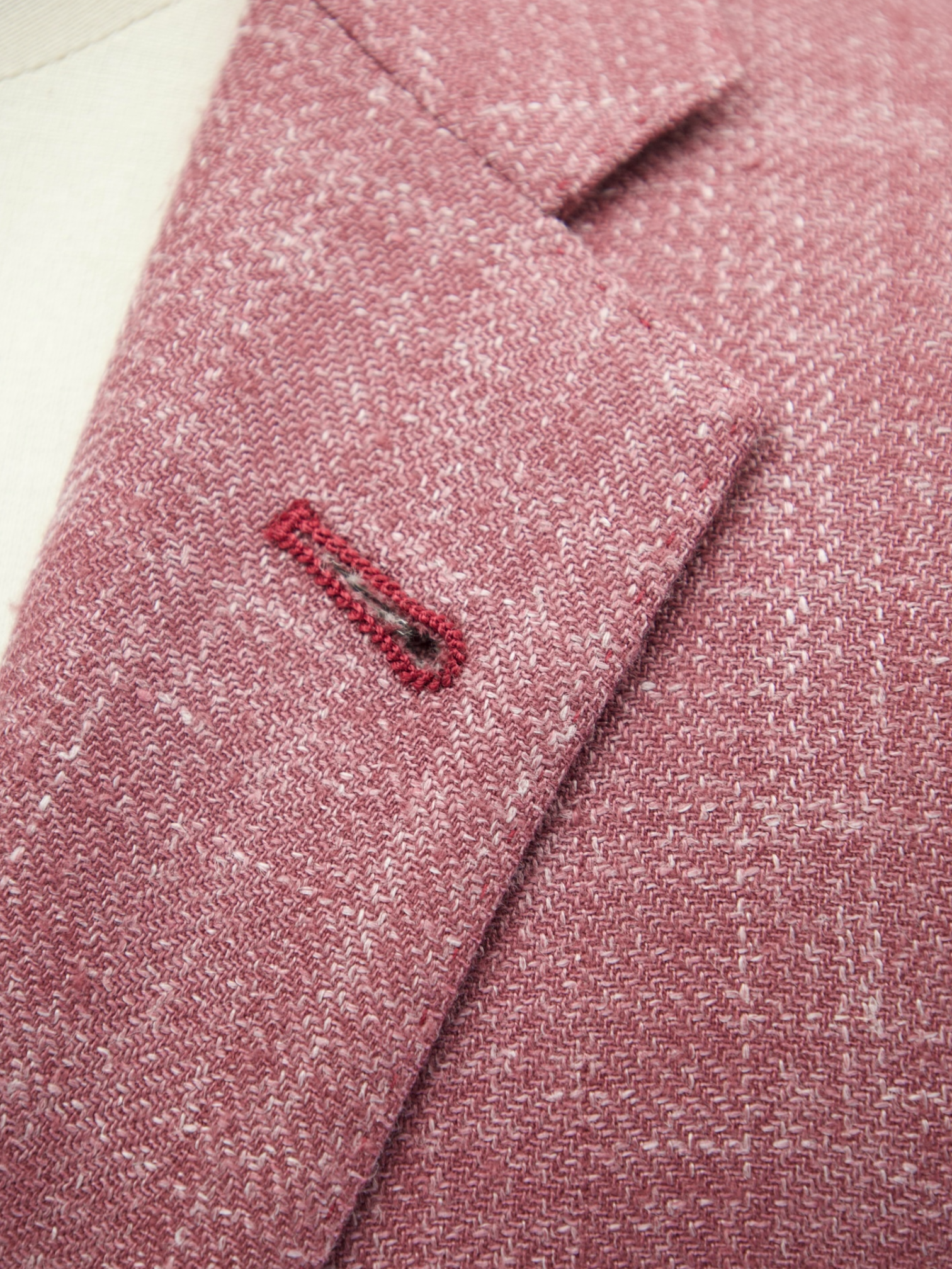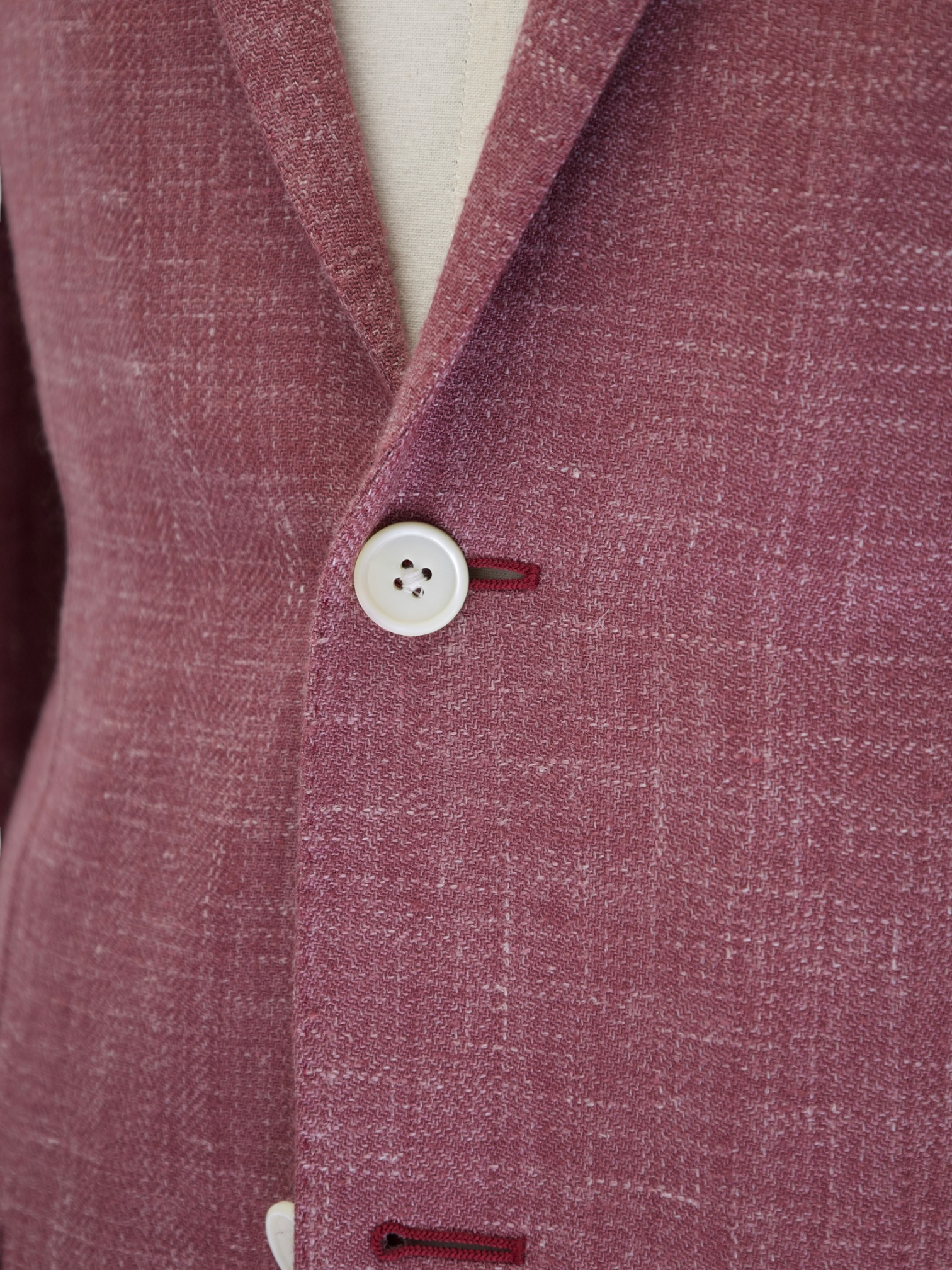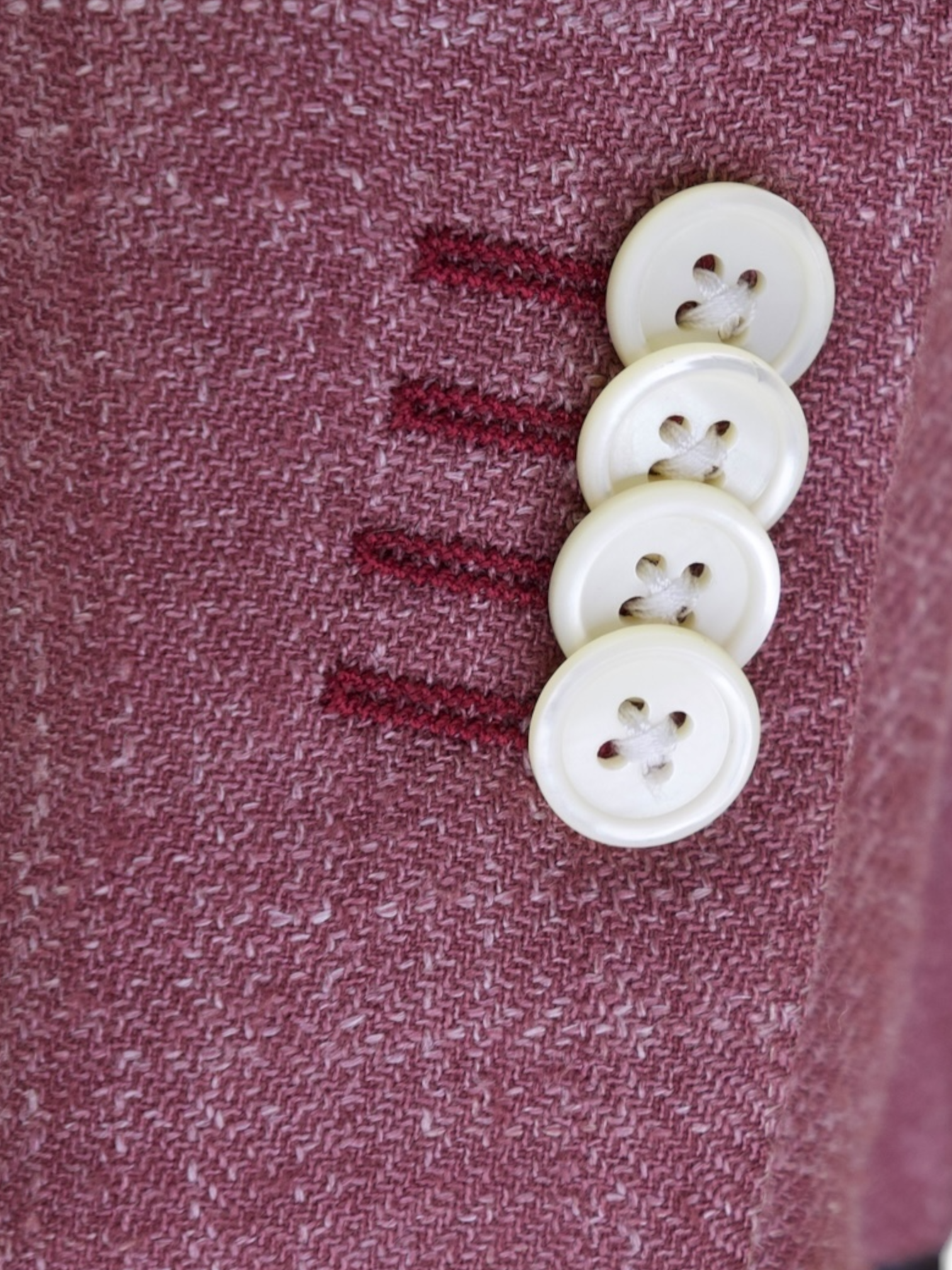 Handmade buttonholes are made using a chain of knotted loops called purl stitches that make them strong and visually distinctive. It takes about five seconds to sew a regular buttonhole with a machine – a single handmade buttonhole takes about 10 minutes to sew.