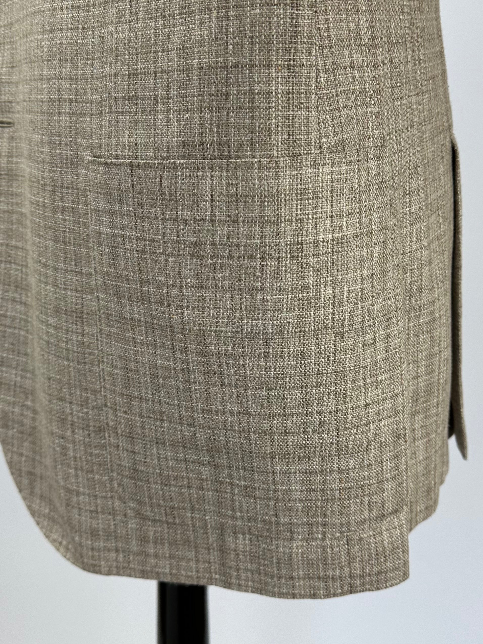 Also known as ‘barchetta’ Italian for ‘little boat’, it is so named because this pocket floats on the chest gently angled upward, just like the bow of a sailboat. These pockets echo the lively roll of a lapel that carries the spring of canvas and natural wool, unlike machine-made chest pockets that have a more stamped-out, rectangular shape and less life.