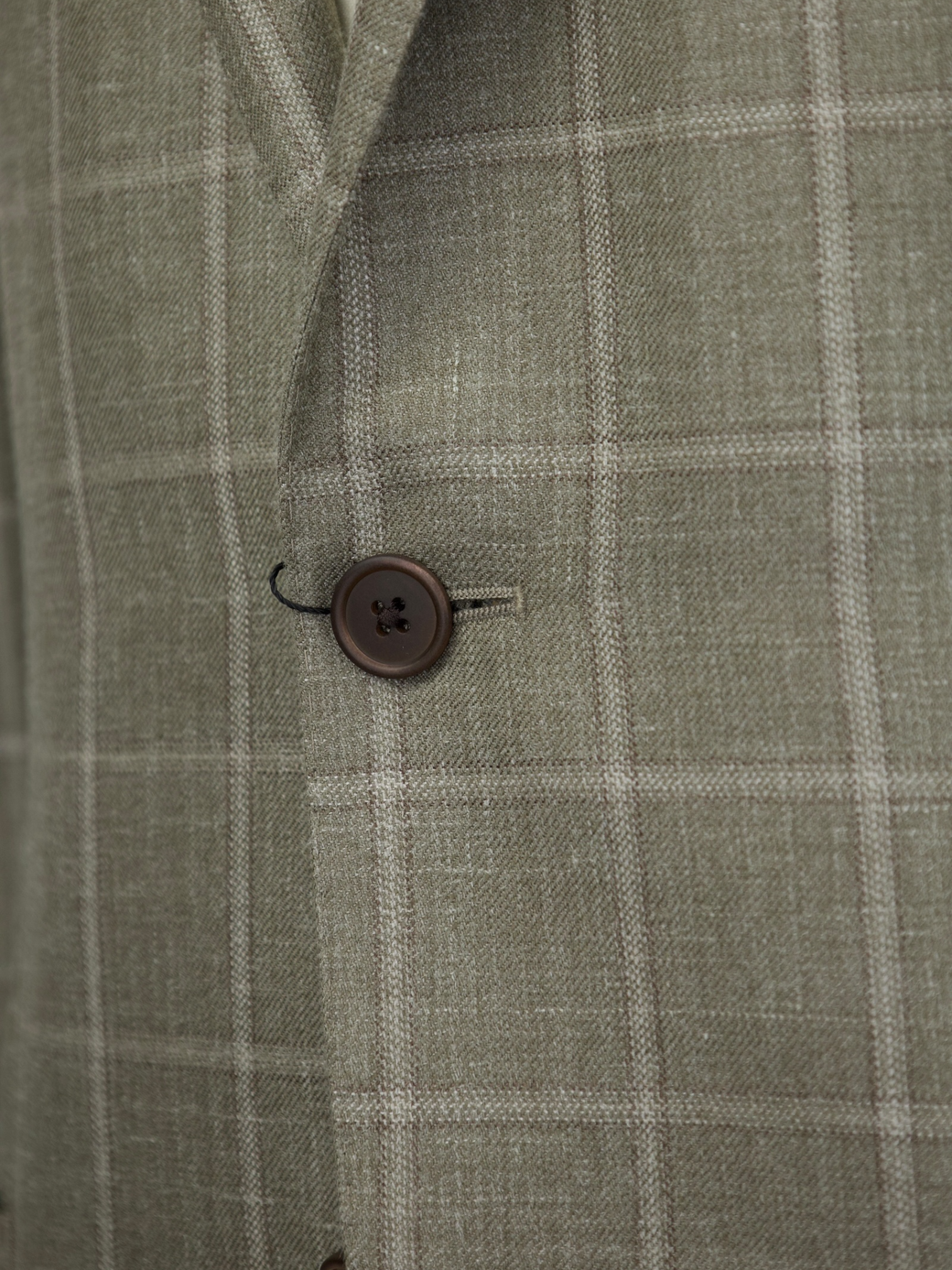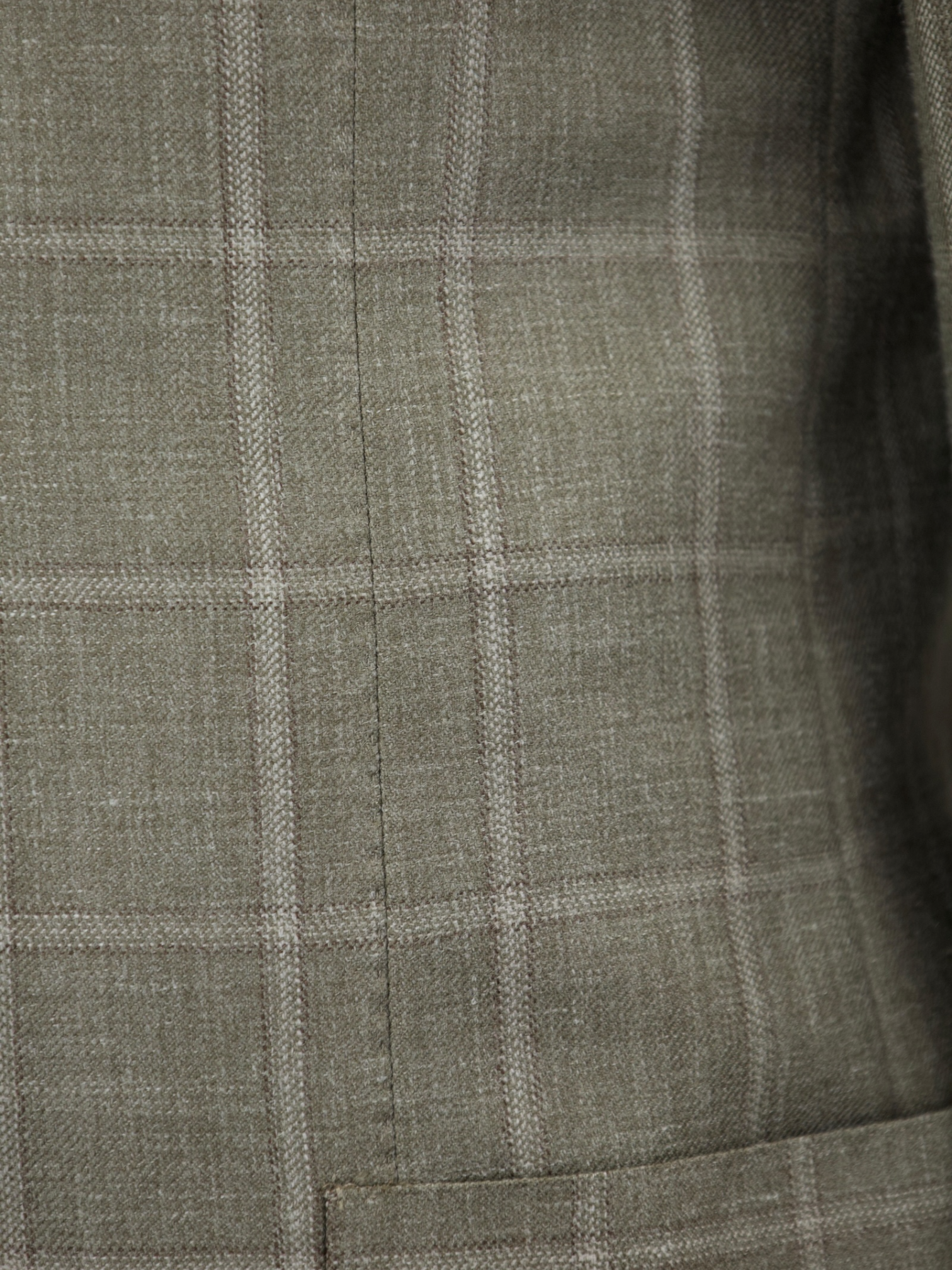 Taupe half-lined jacket, cut from a luxury wool, silk and linen blend with notch lapels, patch pockets, double side vent and mother of pearl buttons. Discover the elaborated sartorial details below.