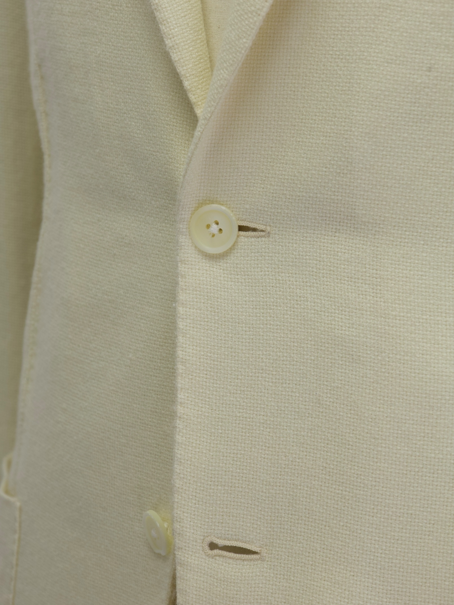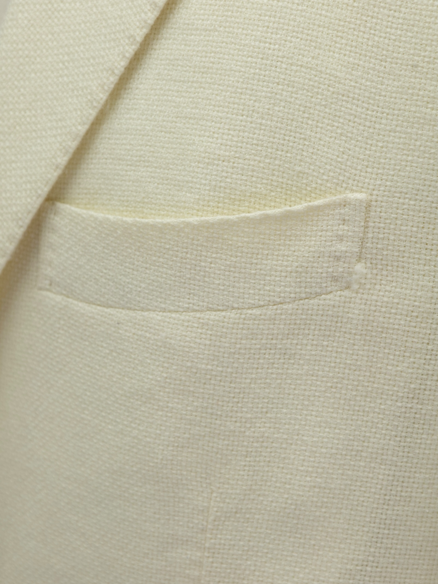 Corneliani’s legacy of Italian craftsmanship is woven into every detail of this jacket. The carefully selected blend combines the structure of wool, the smoothness of silk, and the breathability of linen, resulting in a fabric that is lightweight yet retains a sophisticated drape. Corneliani artisans ensure each jacket meets the highest standards of construction, with hand-finished details and exacting tailoring techniques that provide durability and polish. This off-white hopsack jacket is a testament to Corneliani’s commitment to creating timeless, versatile pieces for the modern gentleman. Discover the elaborated sartorial details below.