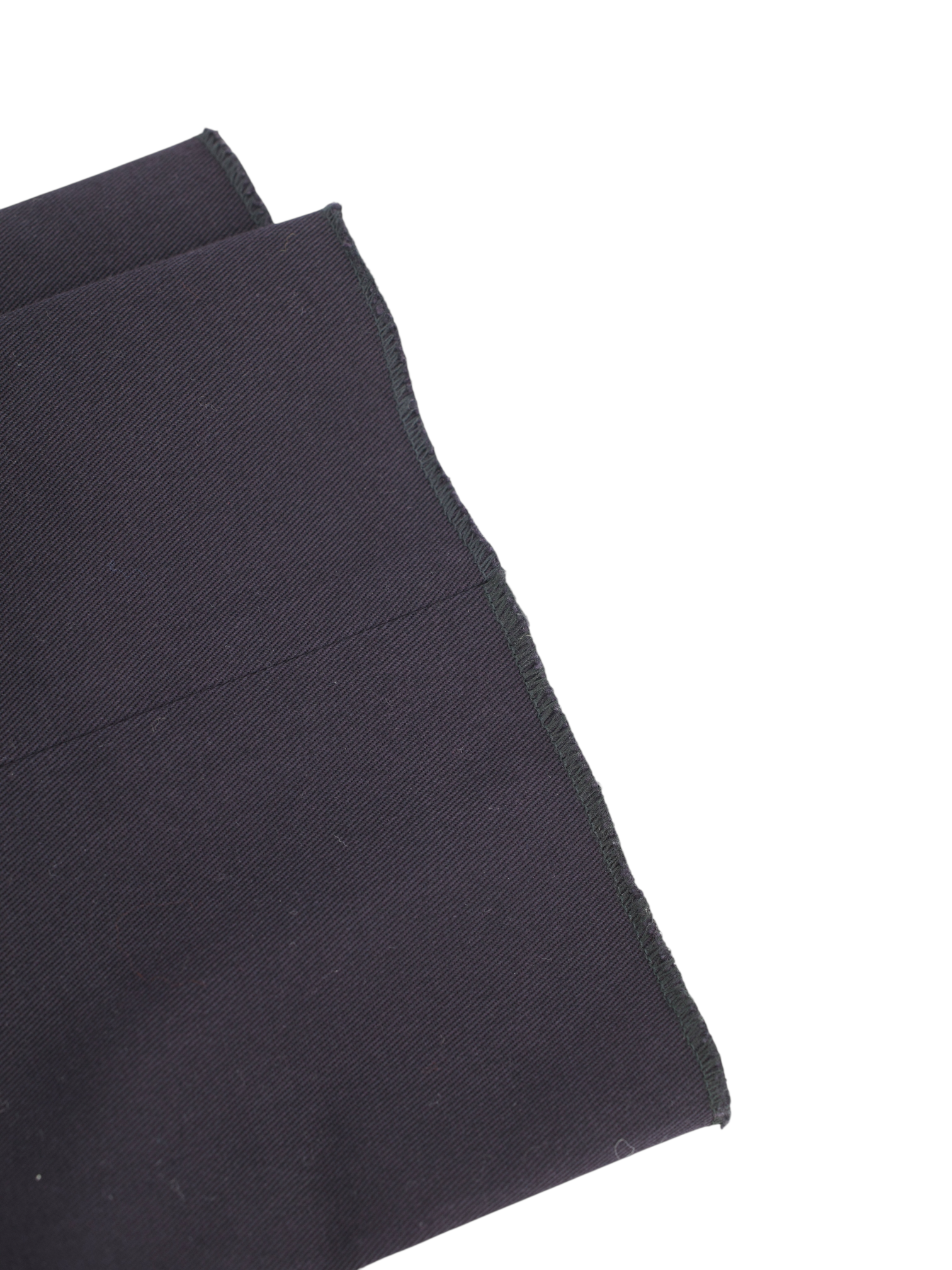 An unhemmed, or raw hem, on dress trousers refers to the unfinished bottom edge, allowing the wearer to have them tailored to their preferred length.