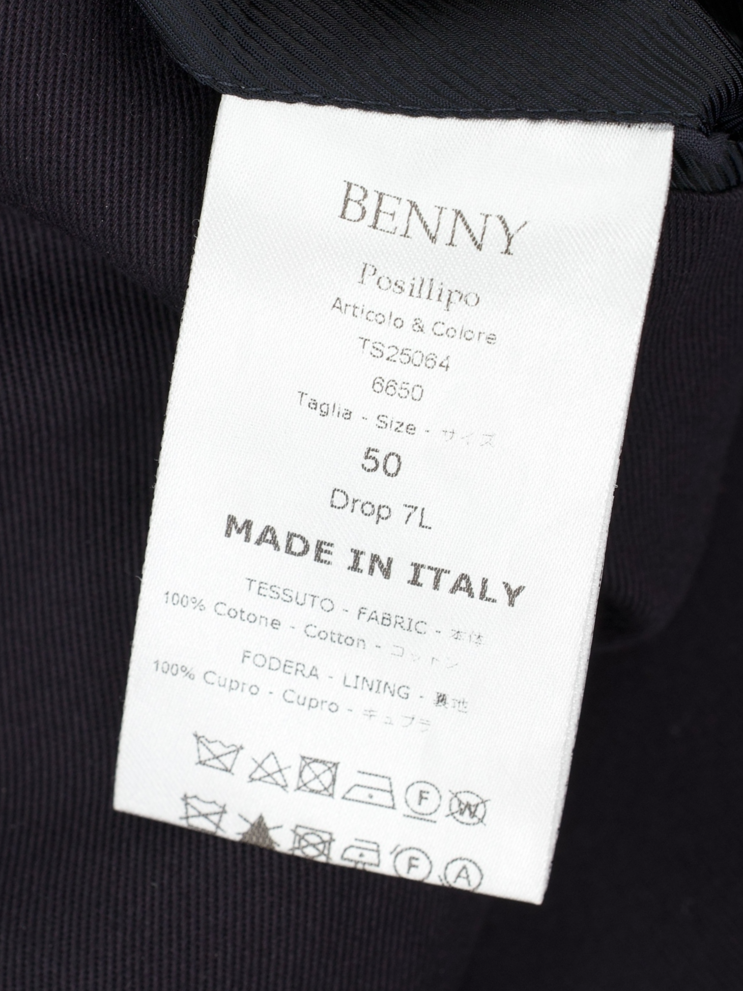 Discover the effortless refinement of this De Petrillo suit, tailored from pure cotton twill gabardine in a deep navy tone. The fabric’s soft structure and matte finish lend it a relaxed elegance, ideal for spring and autumn occasions where comfort and polish go hand in hand. Designed with notch lapels and a half-lined interior, it offers breathability and ease, while maintaining a clean, tailored silhouette. The natural drape of the cotton ensures a flattering fit that feels both smart and unfussy.