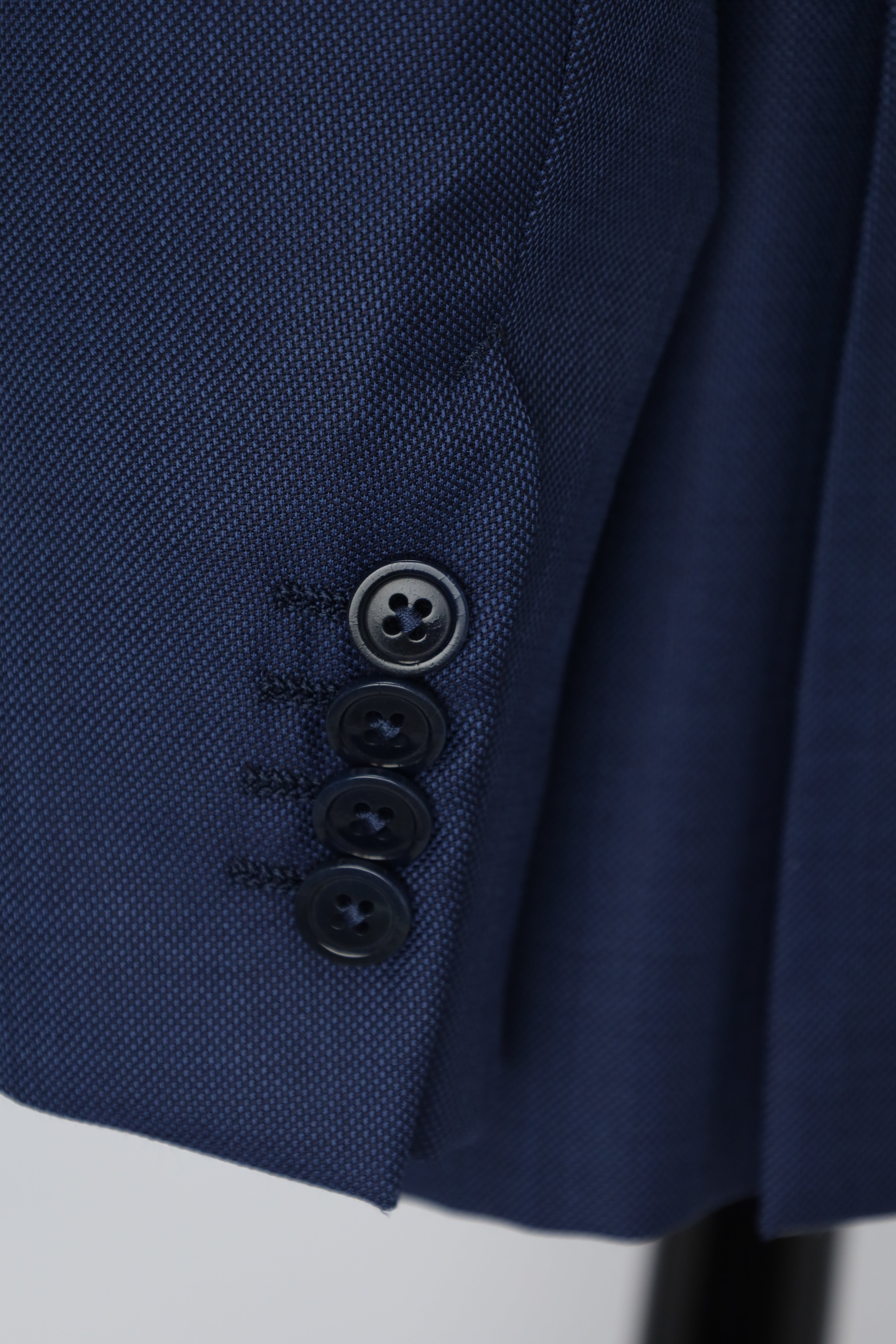 The tailors adds two darts - think of them as pinched seams - to ensure the jacket’s body achieves a slim silhouette. The process, called mezzo punto riprese, is done entirely by hand.