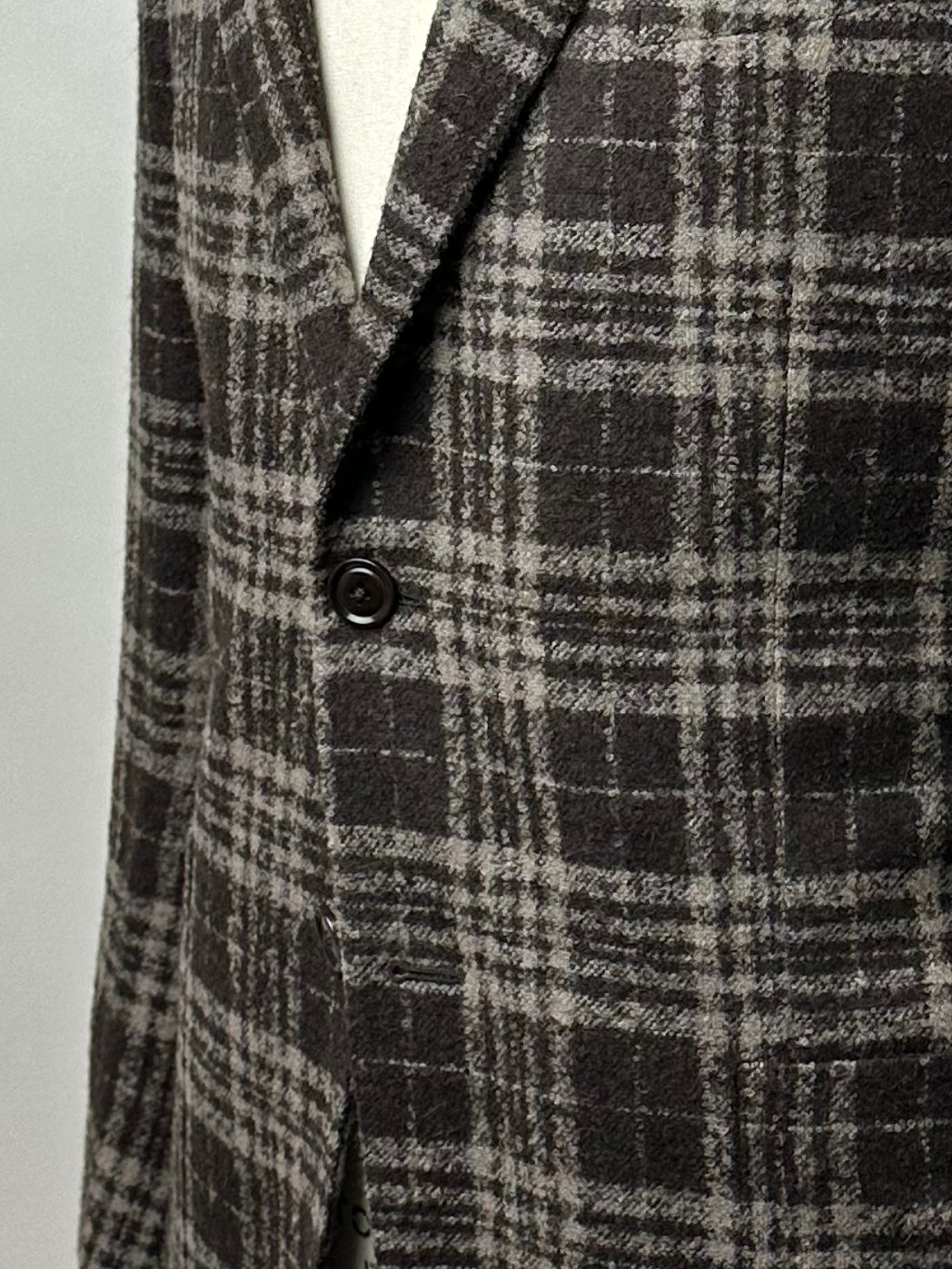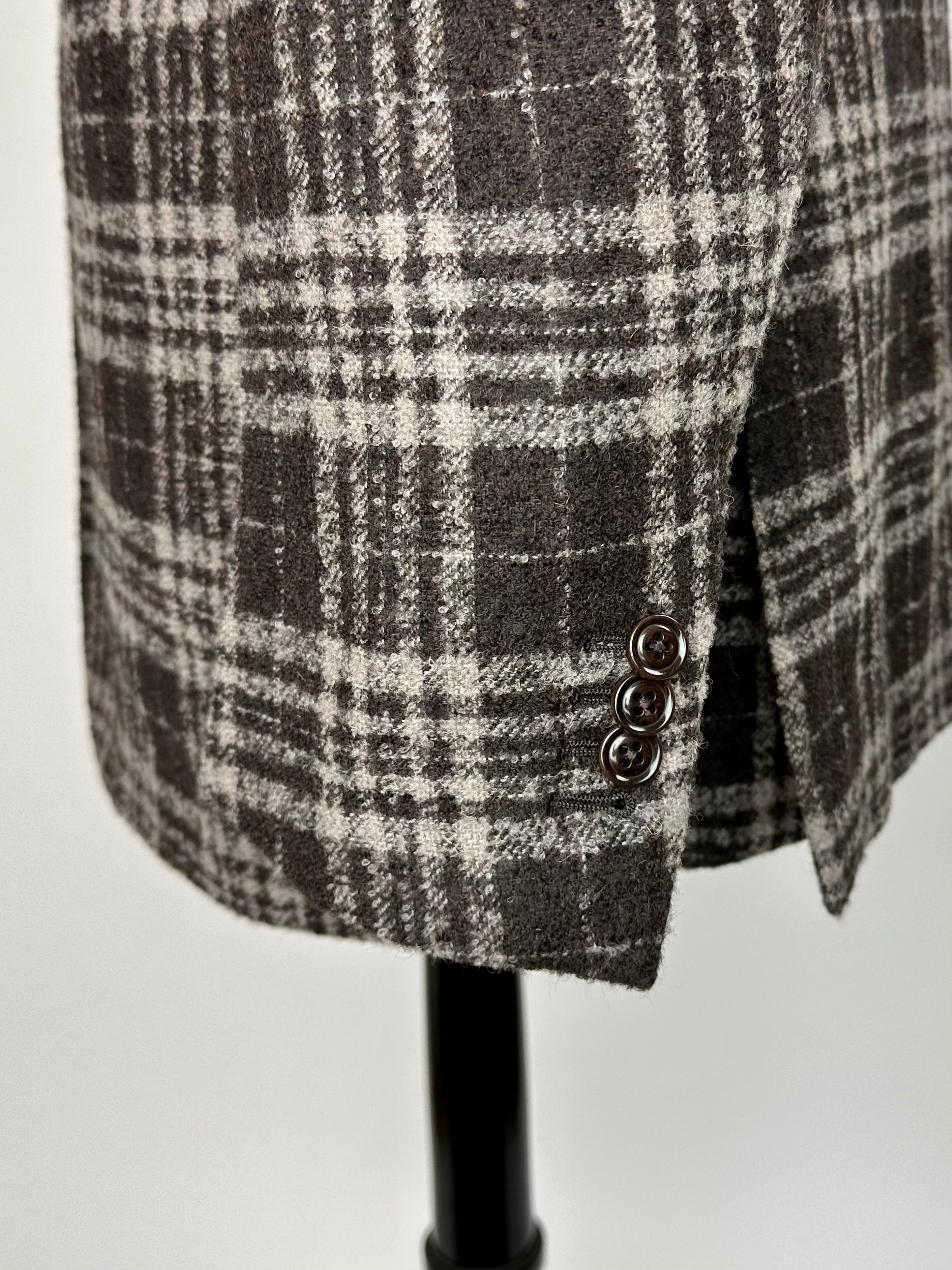 Softer than soft ; Alpaca blend jacket left unconstructed for even more lightness. This style is instantly recognizable by connoisseurs; notch lapels, milanese buttonhole, soft shoulders and rounded pattern below the profile of the jacket which accentuates a slim waist. Discover the elaborated sartorial details below.