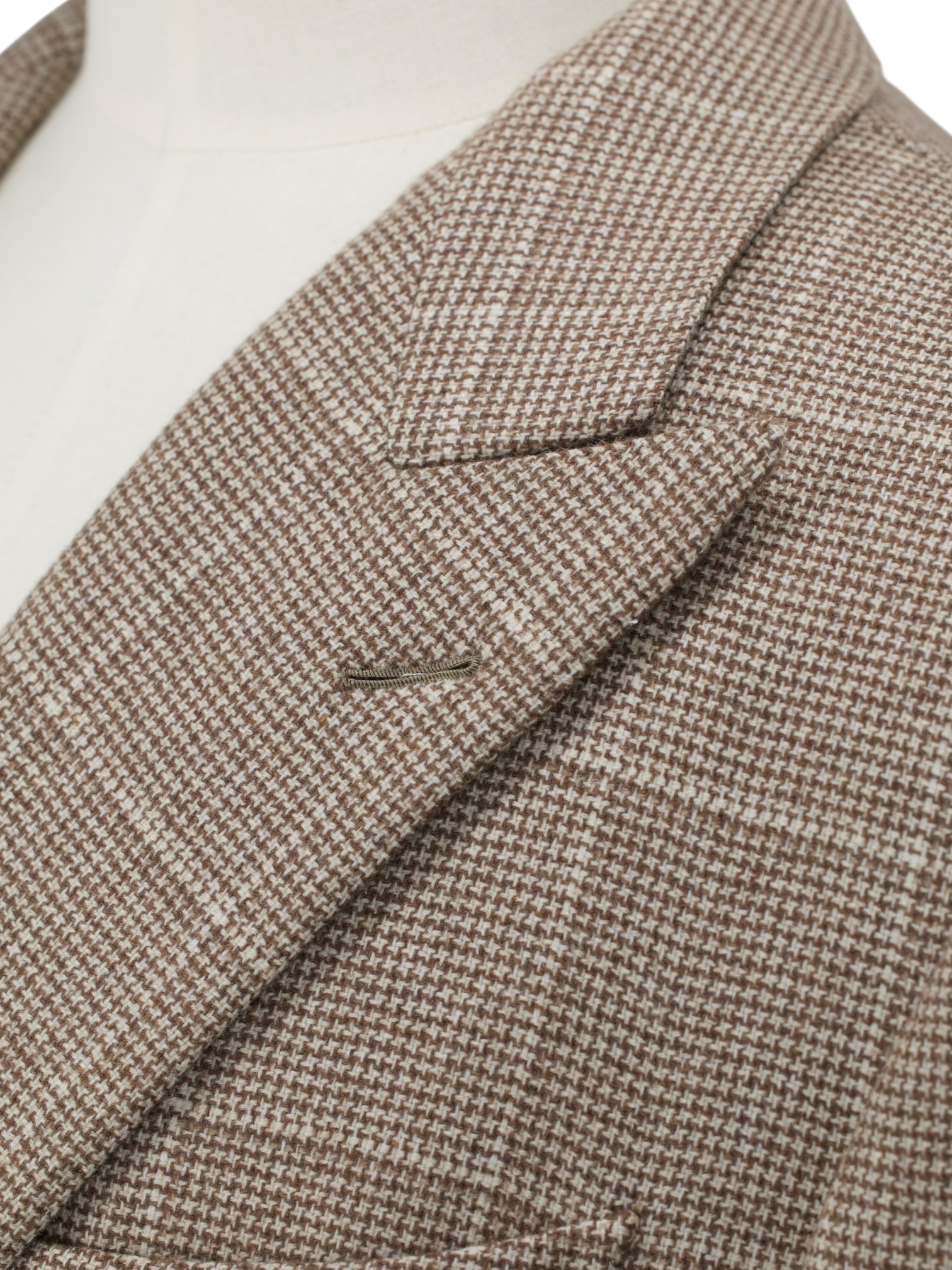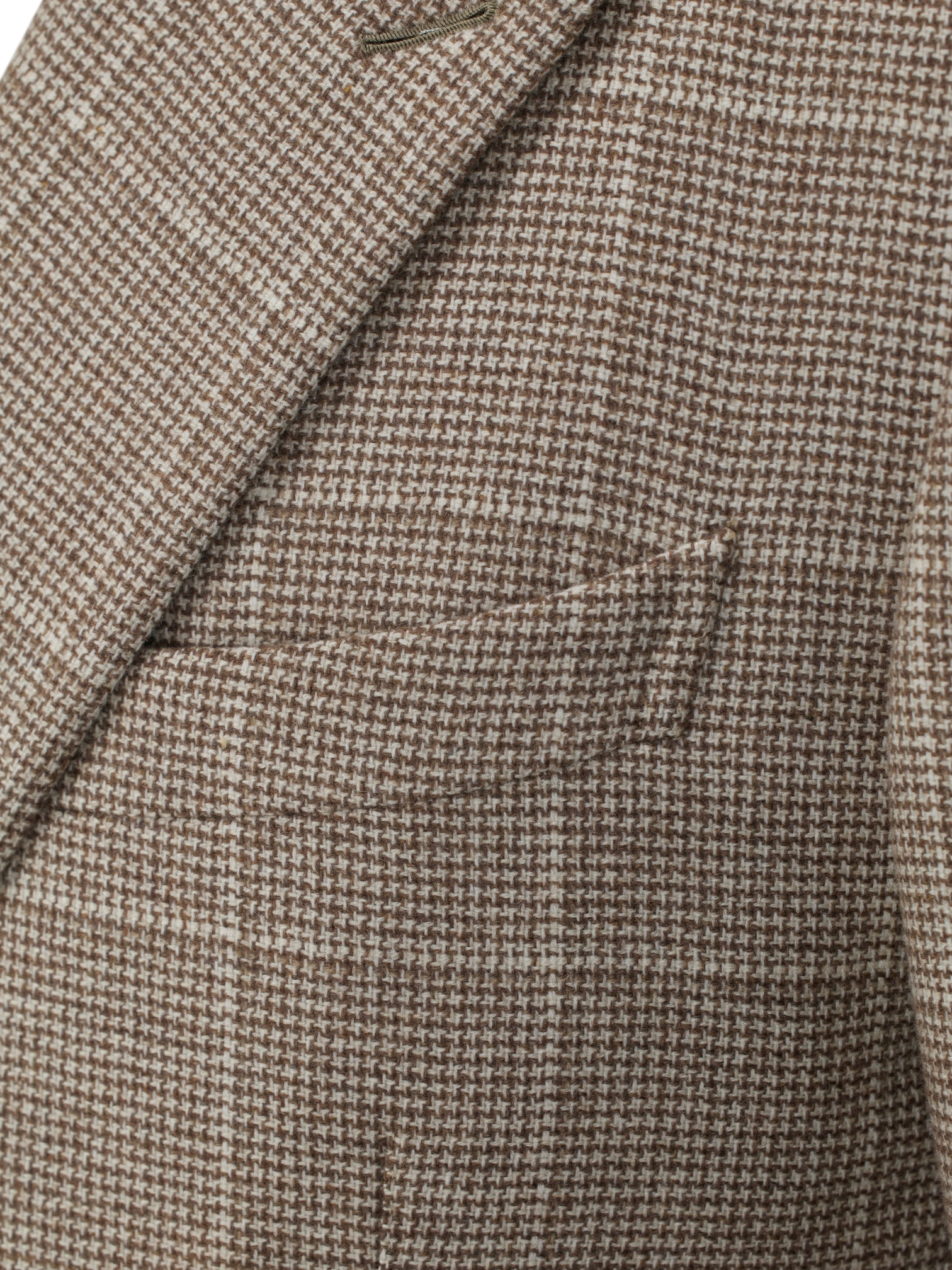Also known as ‘barchetta’ Italian for ‘little boat’, it is so named because this pocket floats on the chest gently angled upward, just like the bow of a sailboat. These pockets echo the lively roll of a lapel that carries the spring of canvas and natural wool, unlike machine-made chest pockets that have a more stamped-out, rectangular shape and less life.