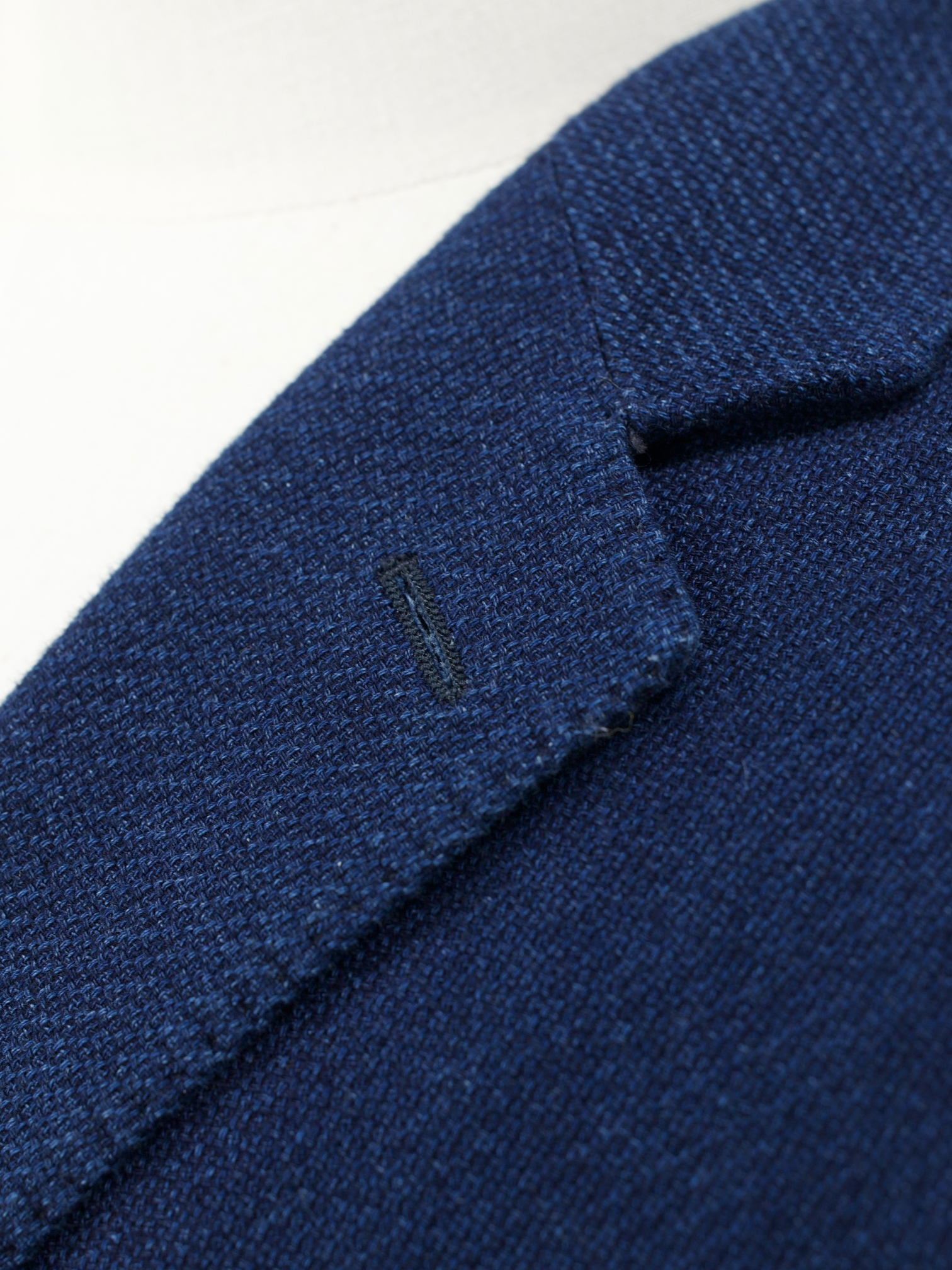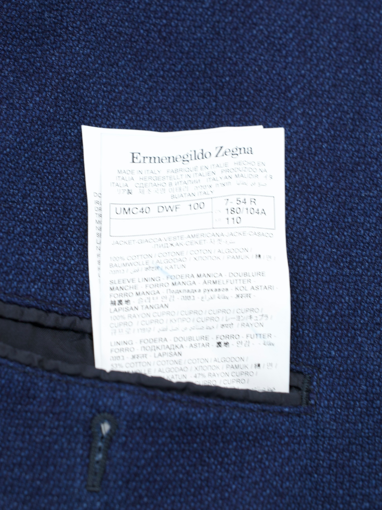 Ermenegildo Zegna Dark Blue Pure Cotton Unconstructed Micro-Pattern Jacket