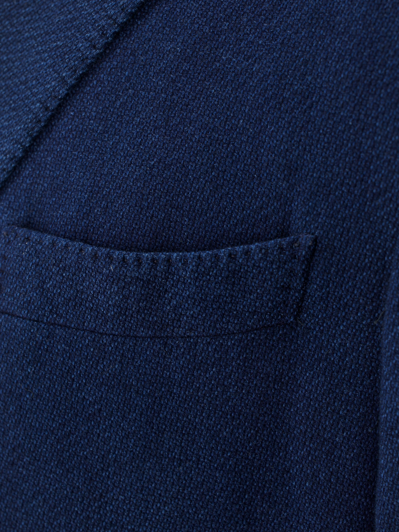 Also known as ‘barchetta’ Italian for ‘little boat’, it is so named because this pocket floats on the chest gently angled upward, just like the bow of a sailboat. These pockets echo the lively roll of a lapel that carries the spring of canvas and natural wool, unlike machine-made chest pockets that have a more stamped-out, rectangular shape and less life.