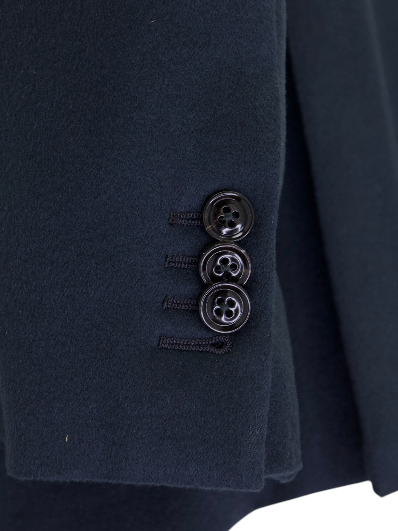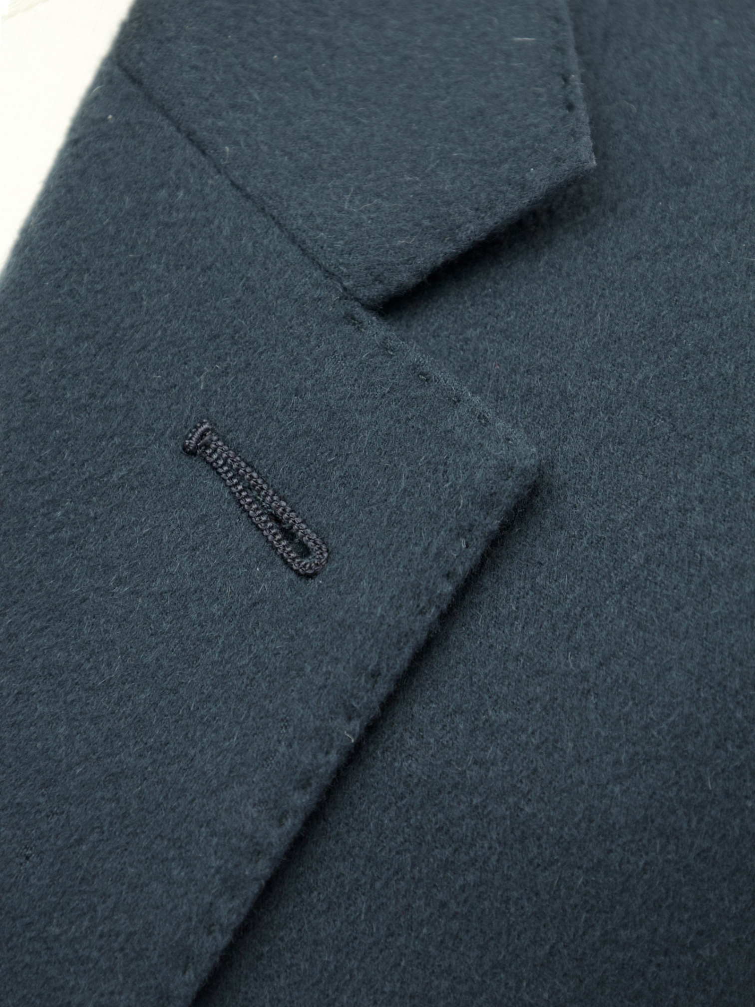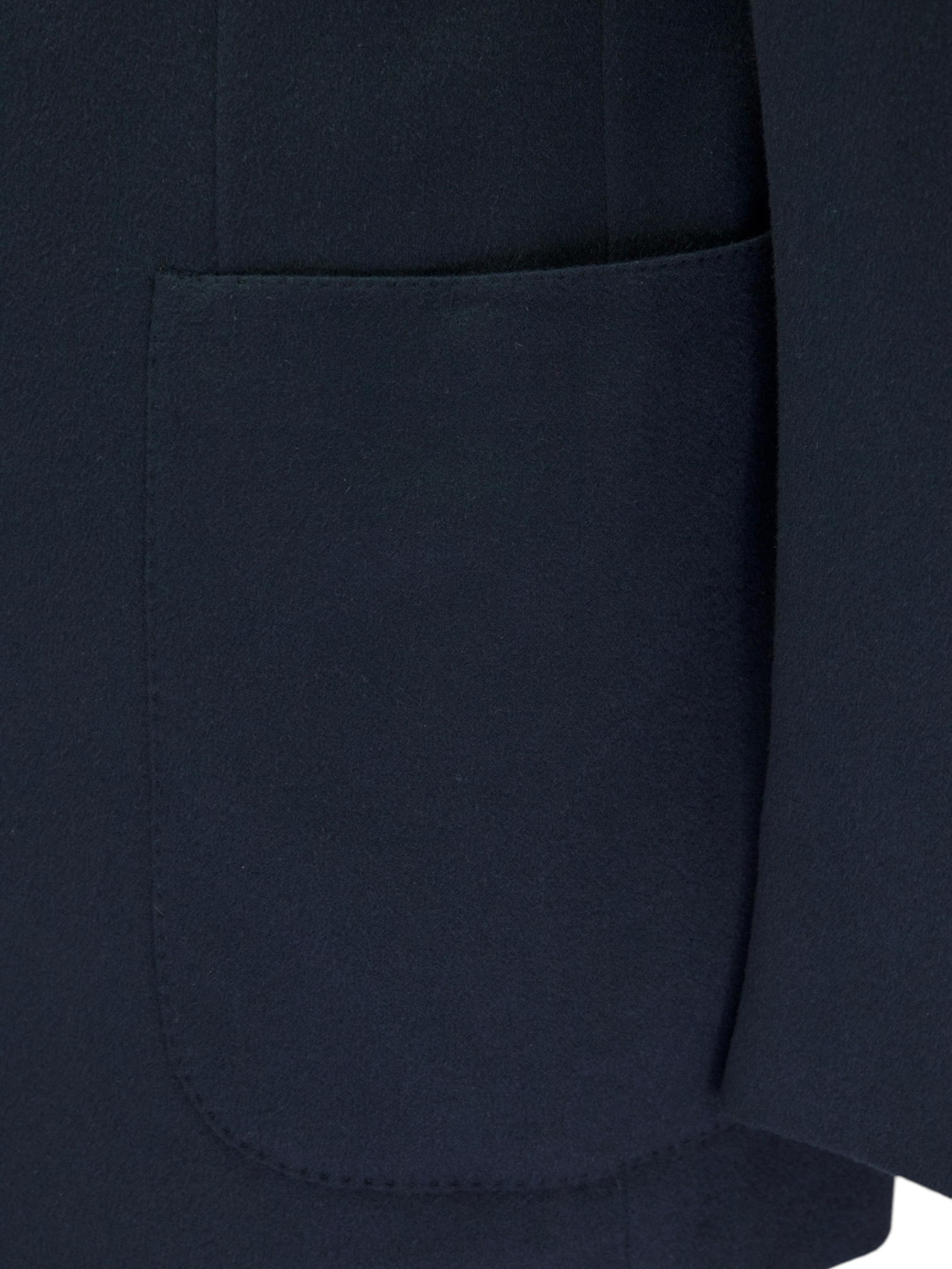Also known as ‘barchetta’ Italian for ‘little boat’, it is so named because this pocket floats on the chest gently angled upward, just like the bow of a sailboat. These pockets echo the lively roll of a lapel that carries the spring of canvas and natural wool, unlike machine-made chest pockets that have a more stamped-out, rectangular shape and less life.